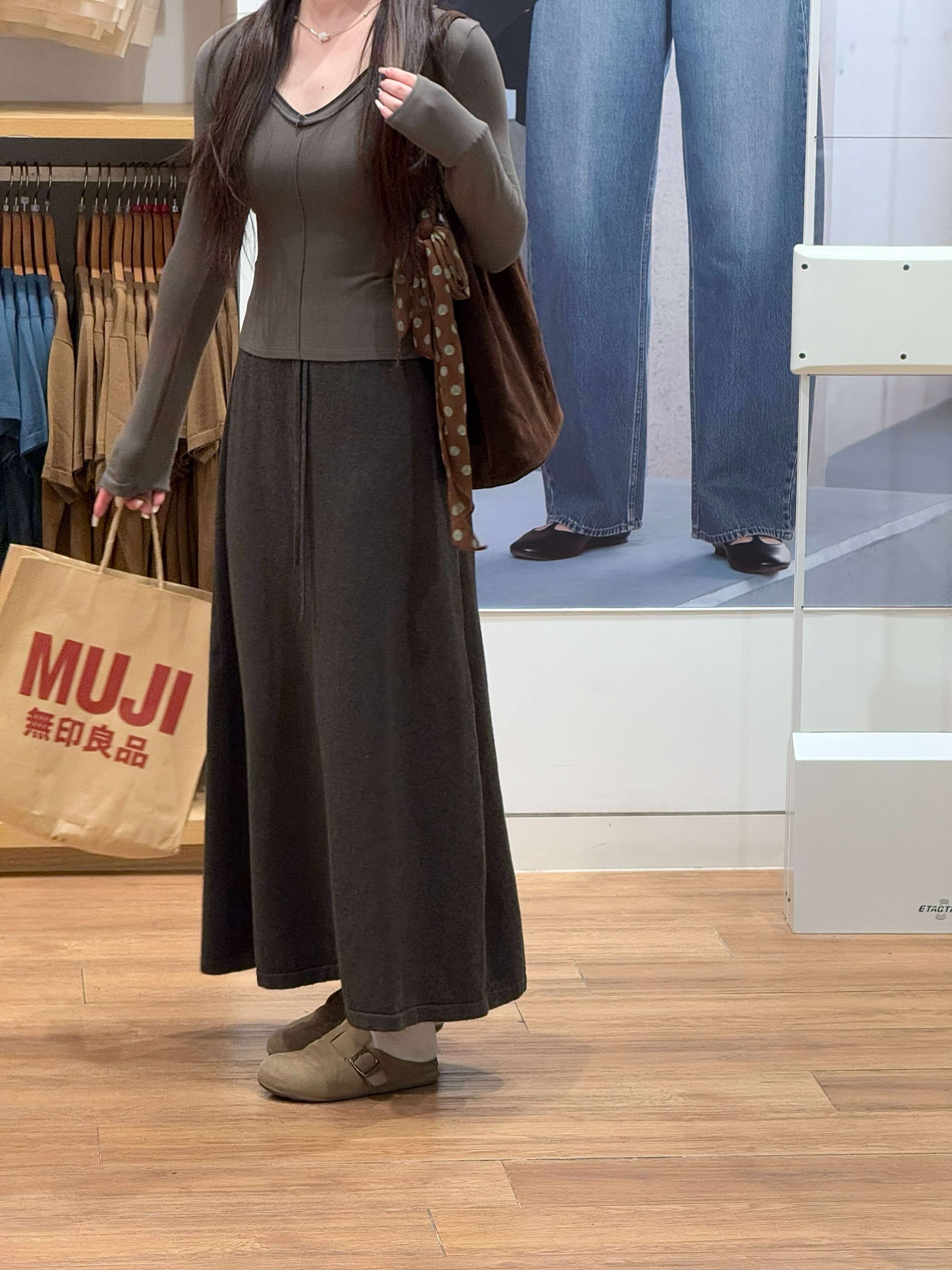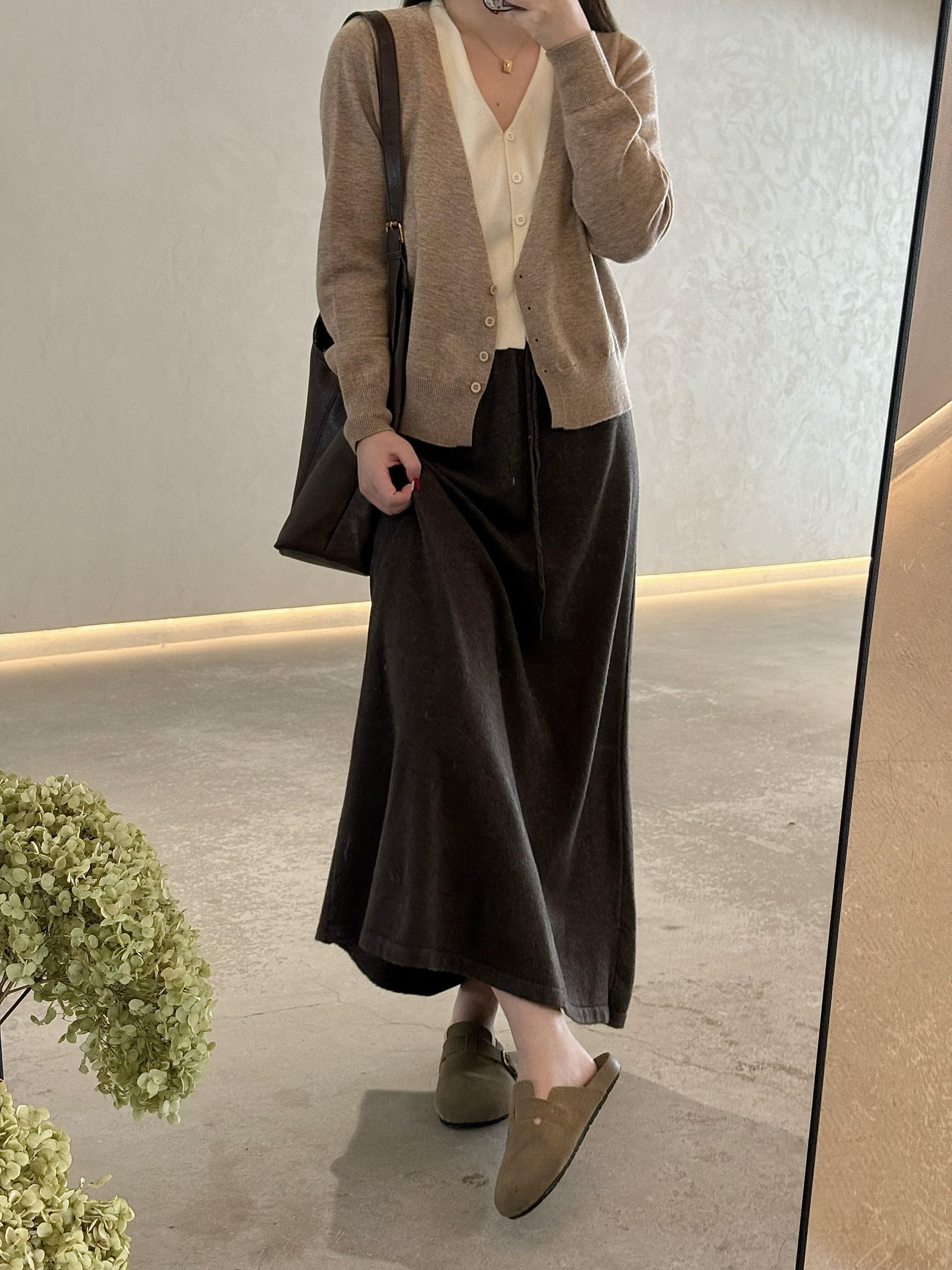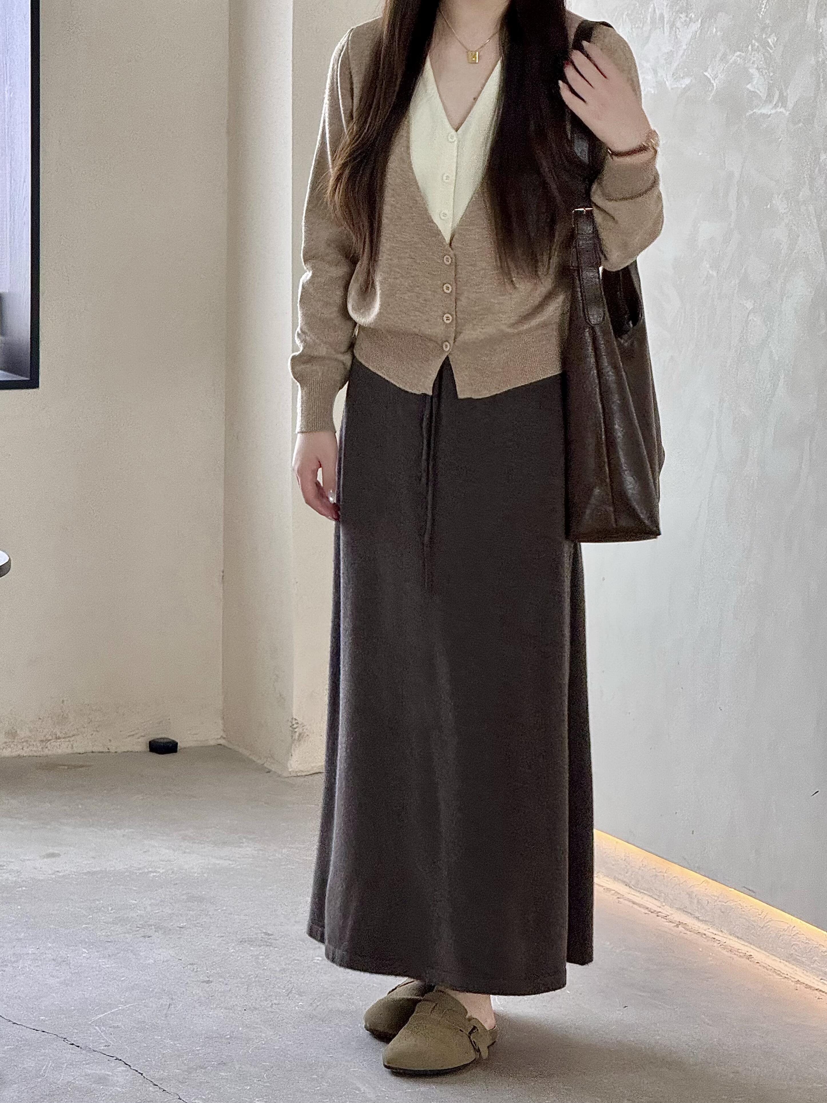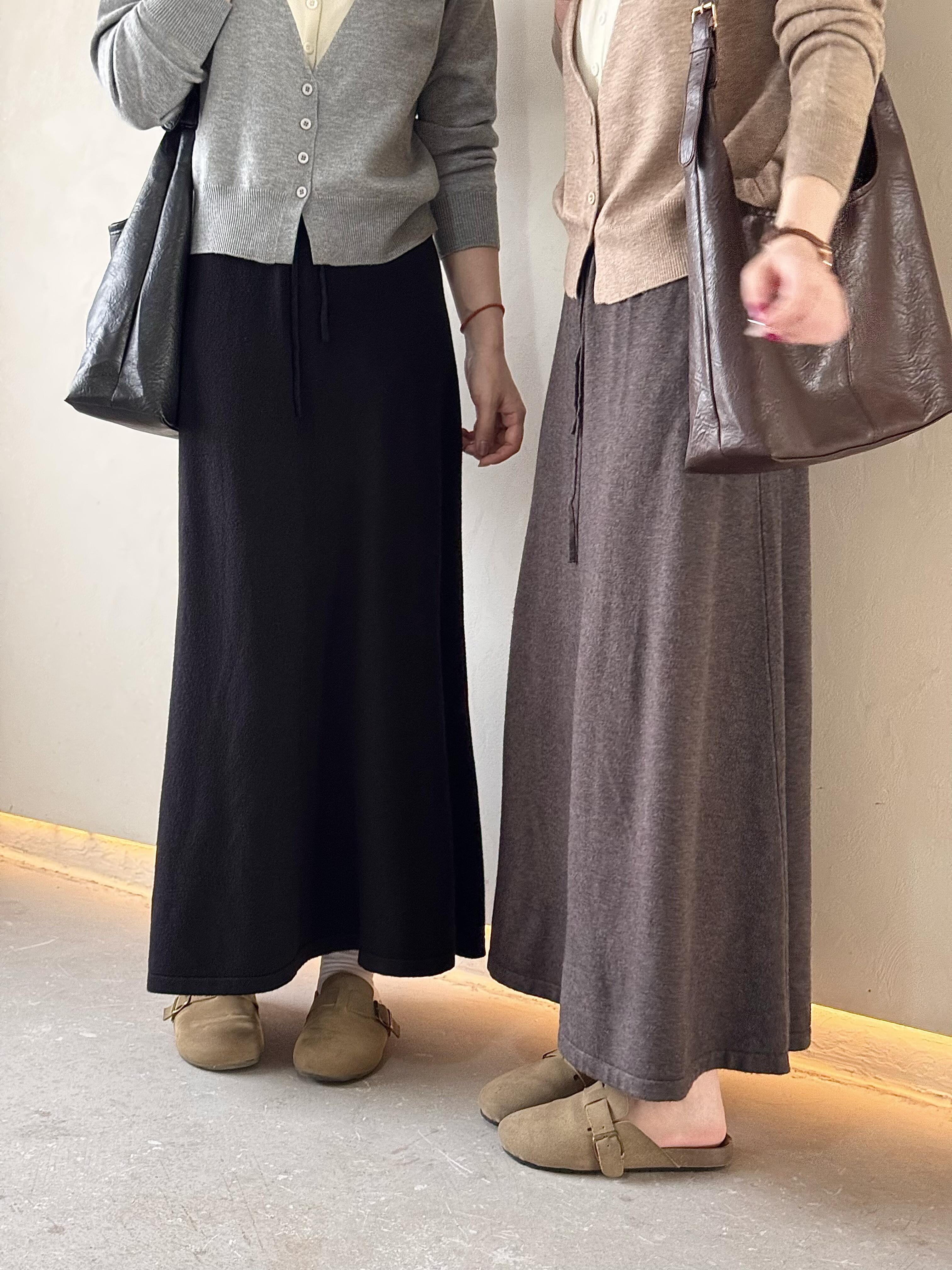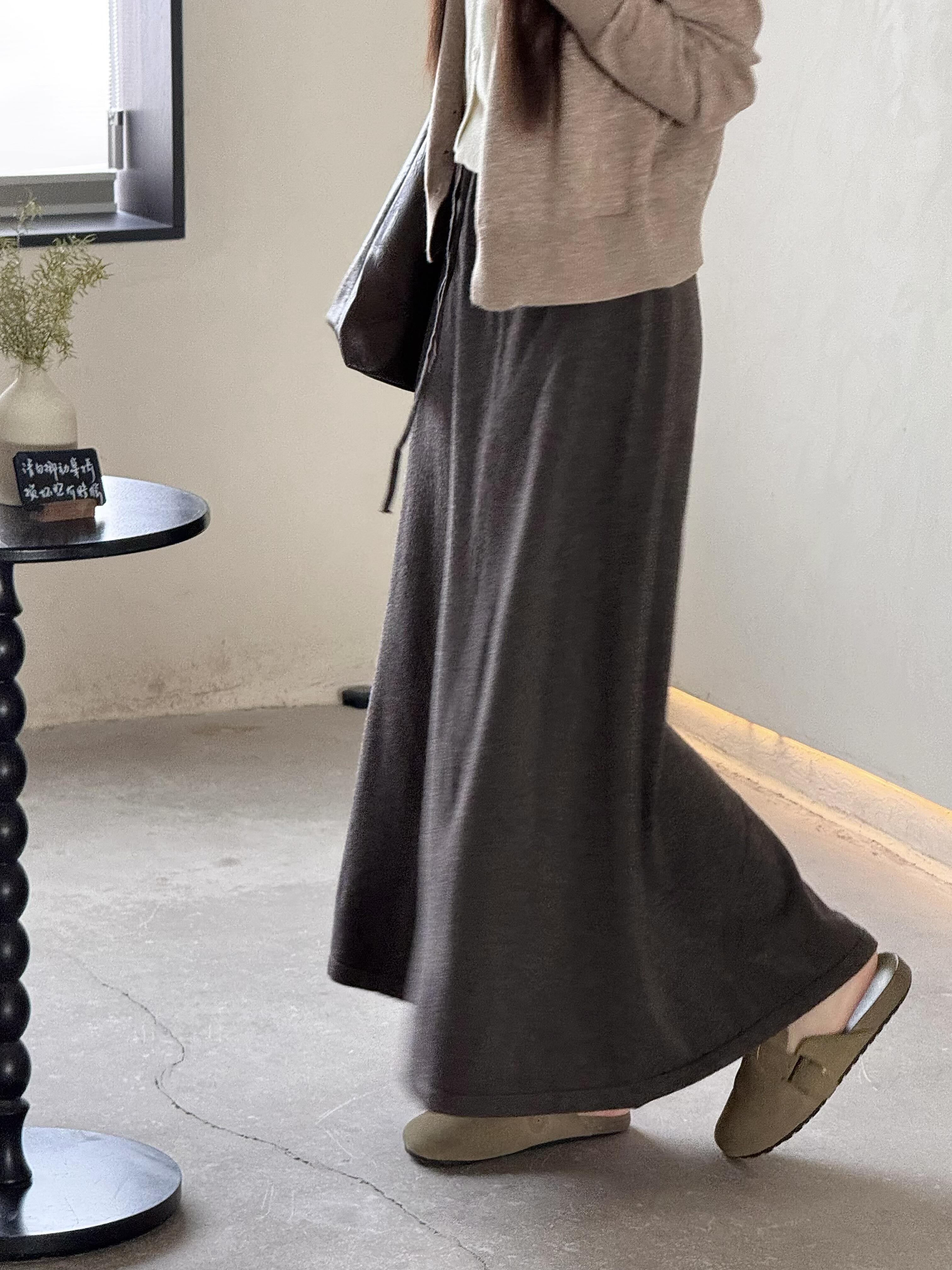灰色羊毛羊绒针织半身裙女春秋季新款高腰垂感A字直筒长裙