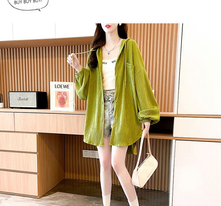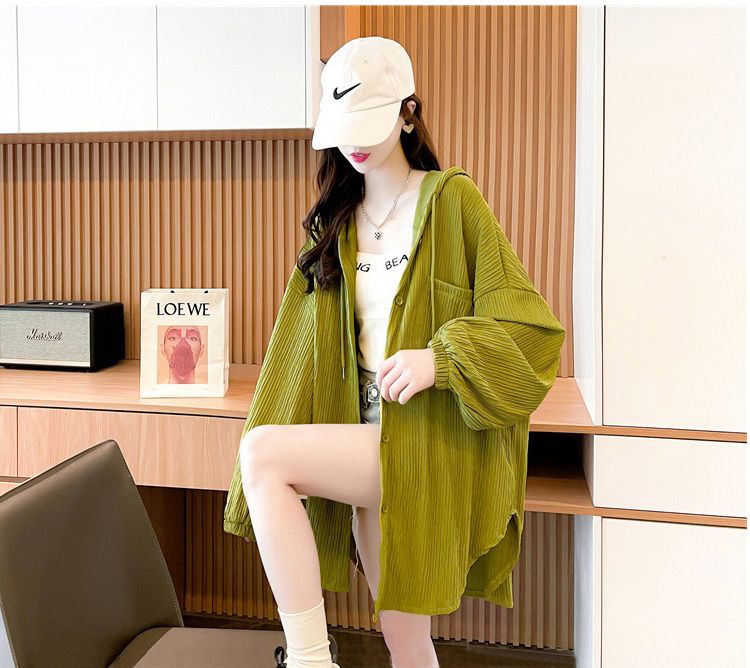 2025春秋薄款大码女装设计感衬衫连帽外套