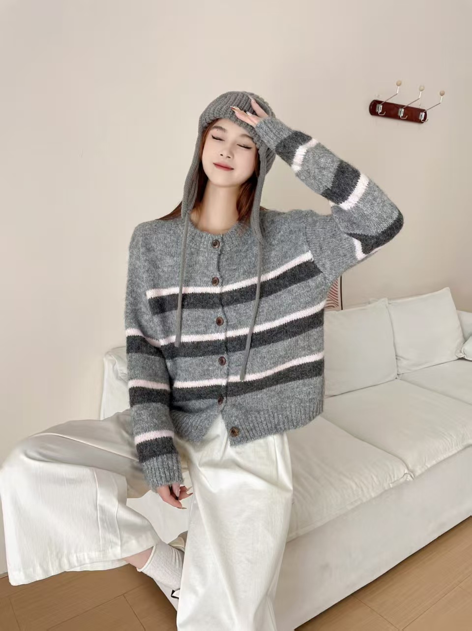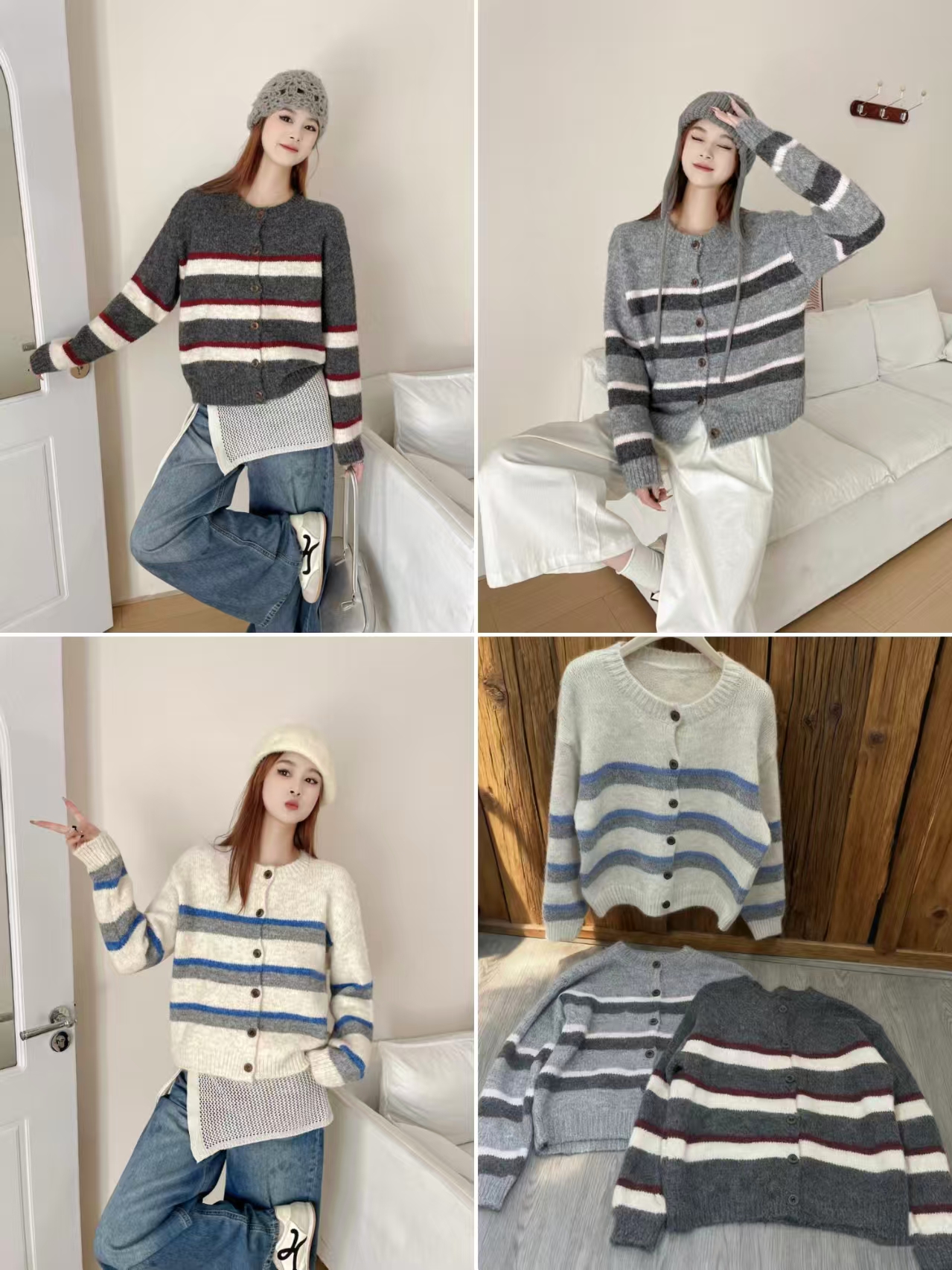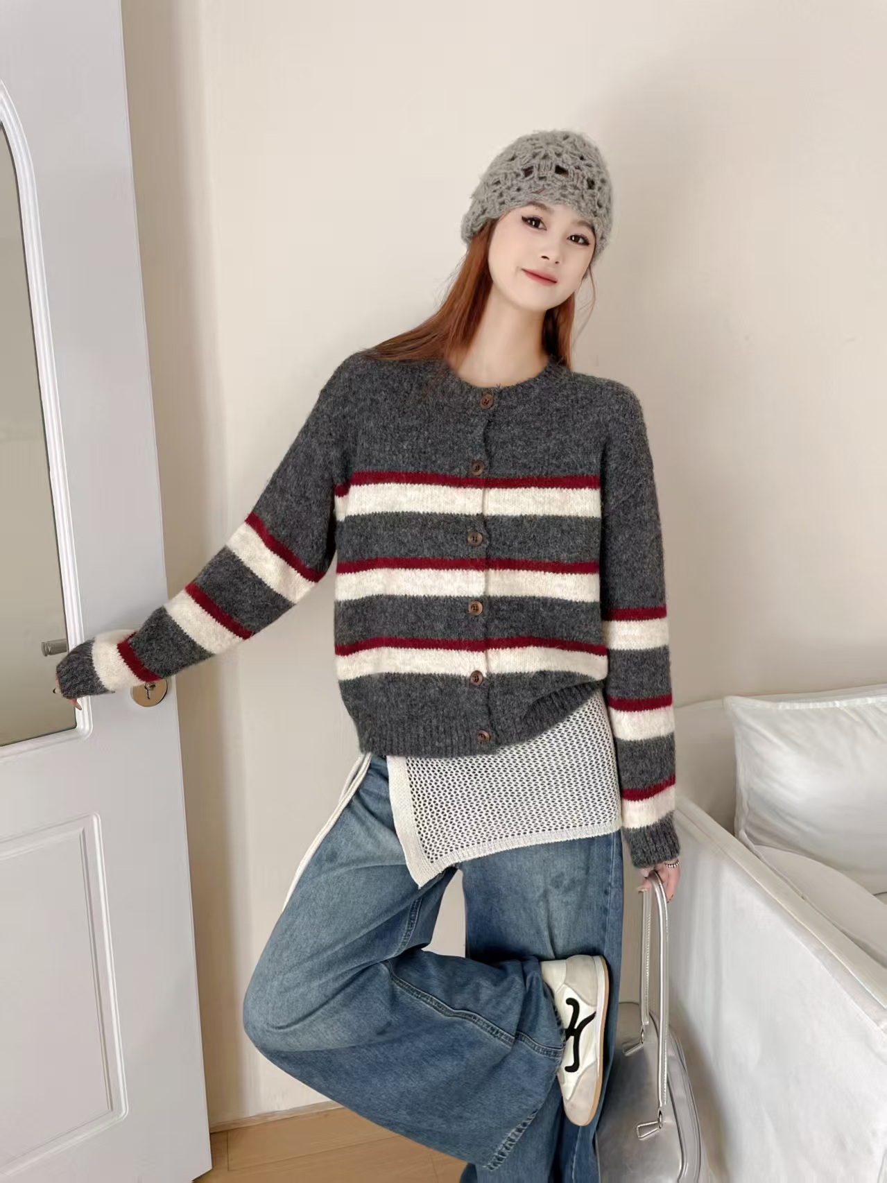 韩系复古条纹设计感加厚毛衣2025简约女冬季慵懒宽松好看上衣