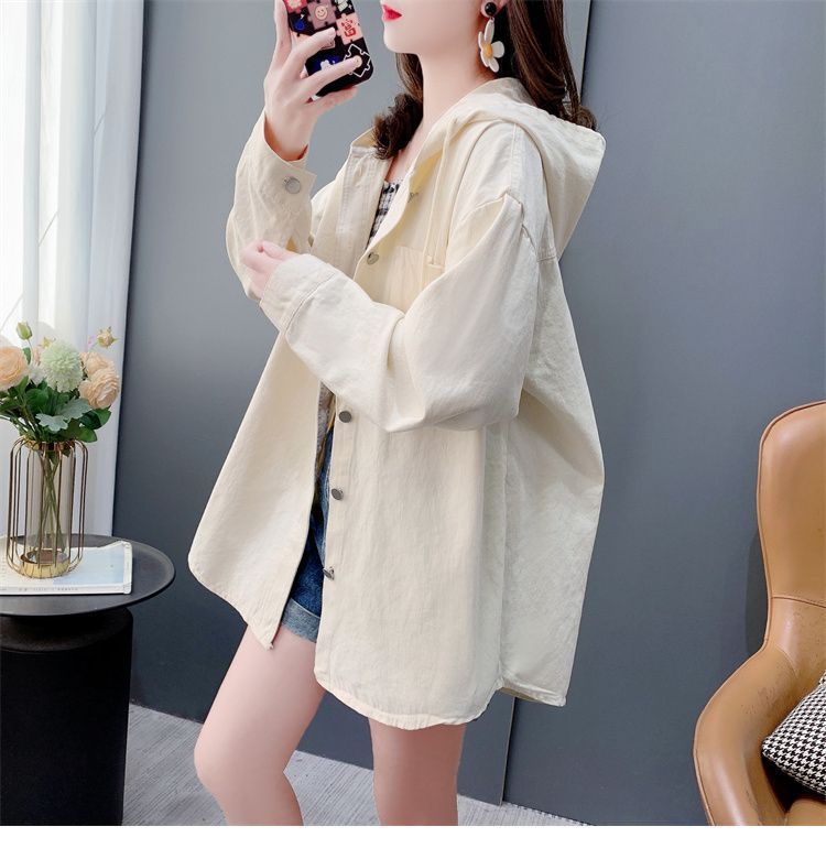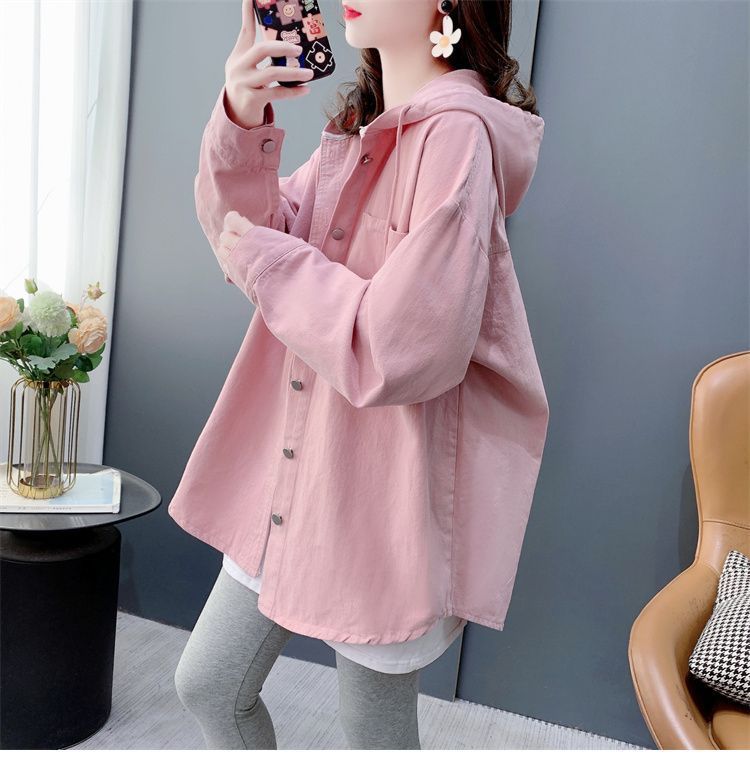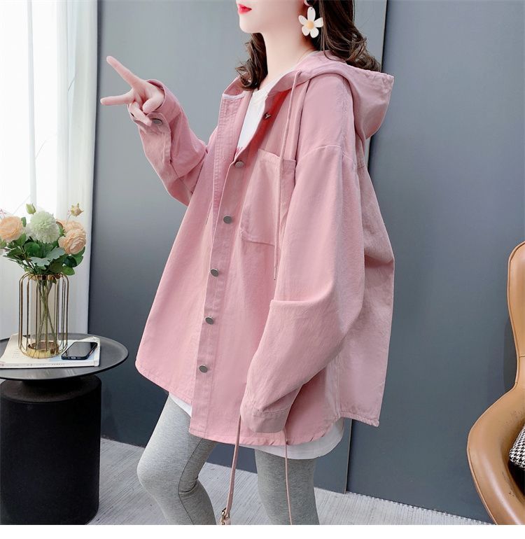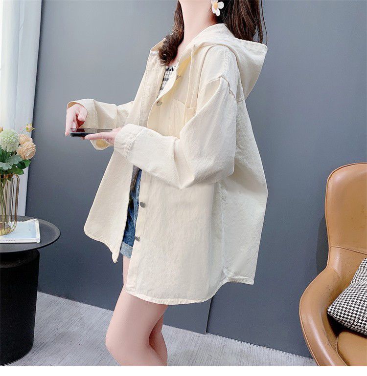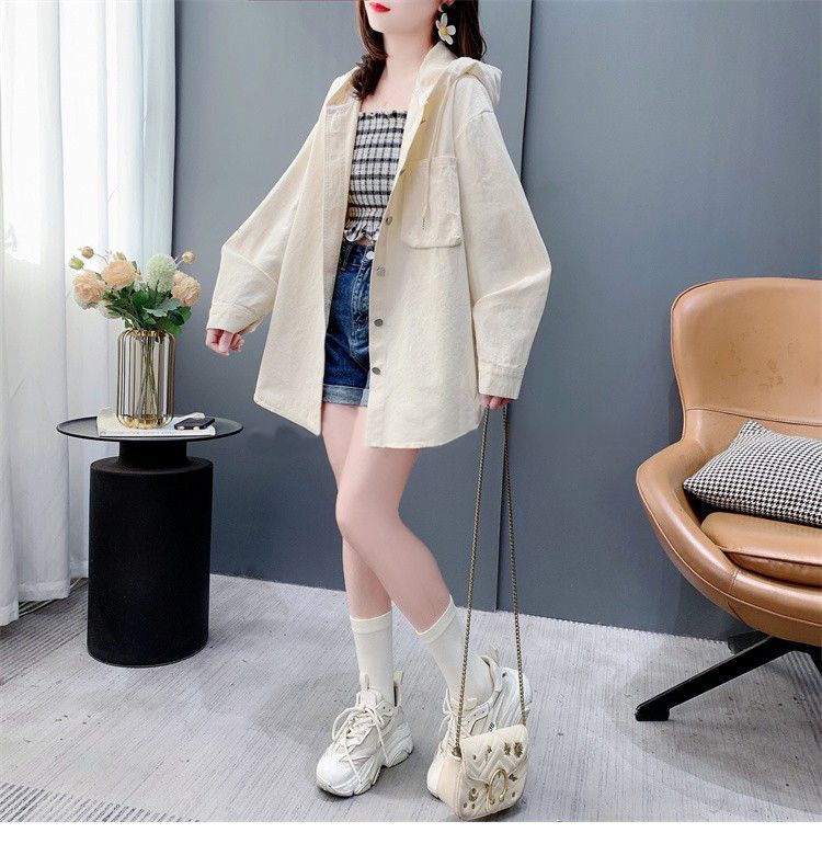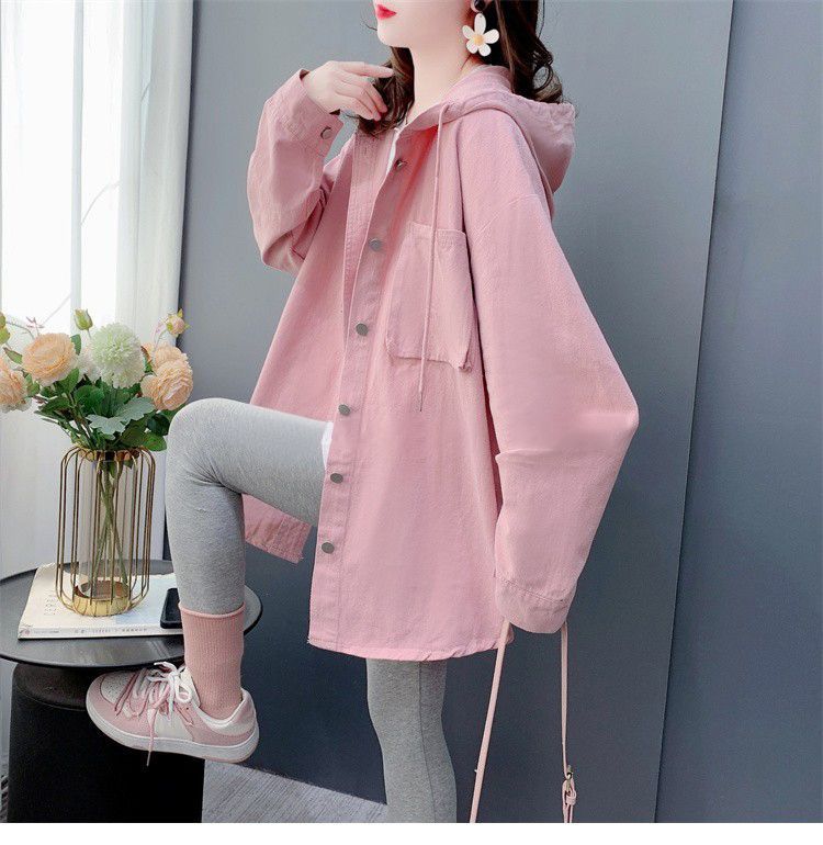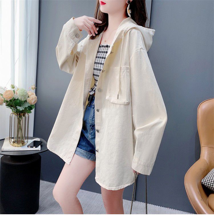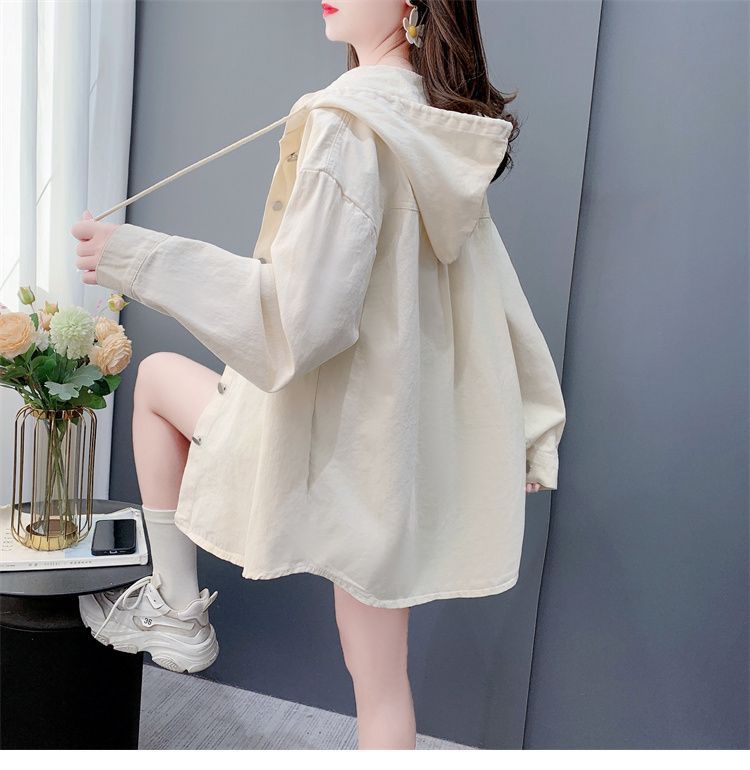 纯棉牛仔2025春秋薄款韩版宽松衬衫连帽上衣外套女