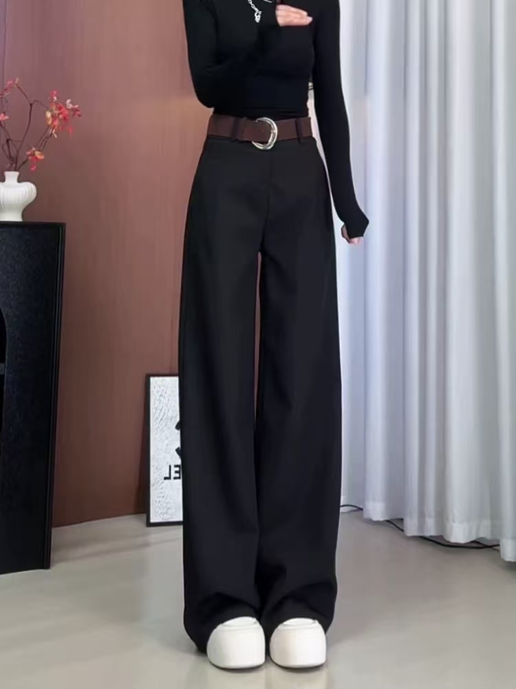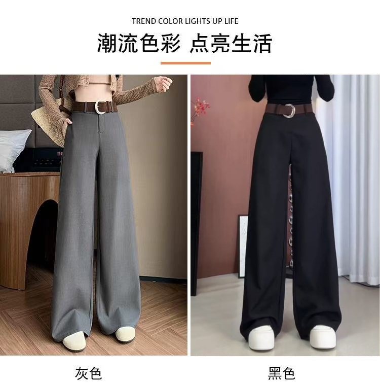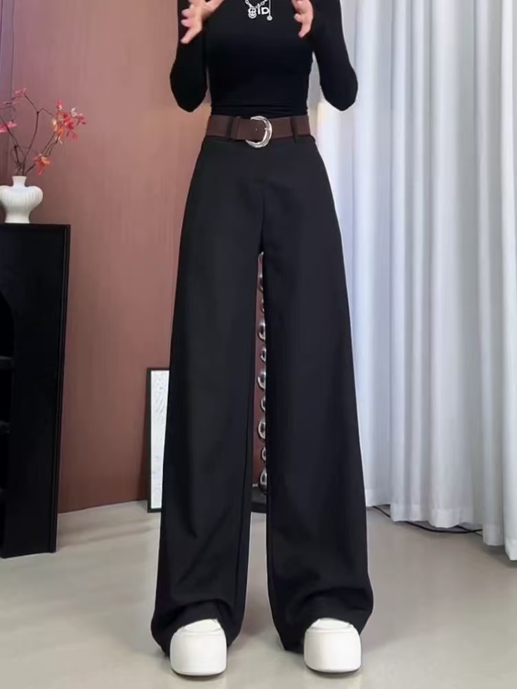 垂感高腰黑色西装裤女2025年秋季新款大码胖mm宽松显瘦直筒休闲裤