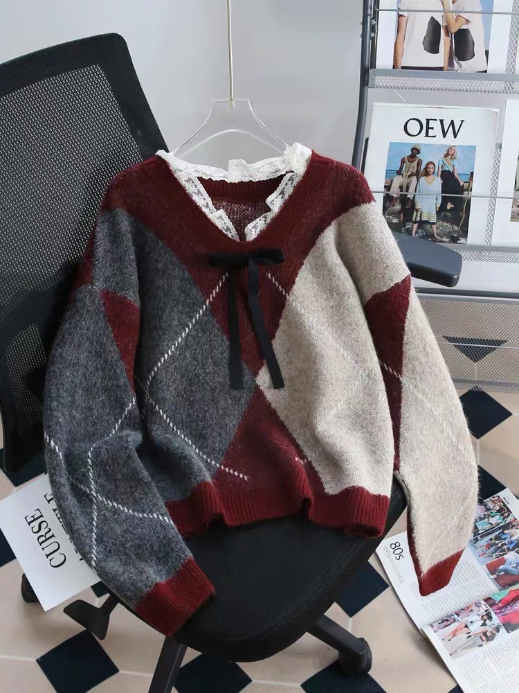 蕾丝拼接毛衣秋冬