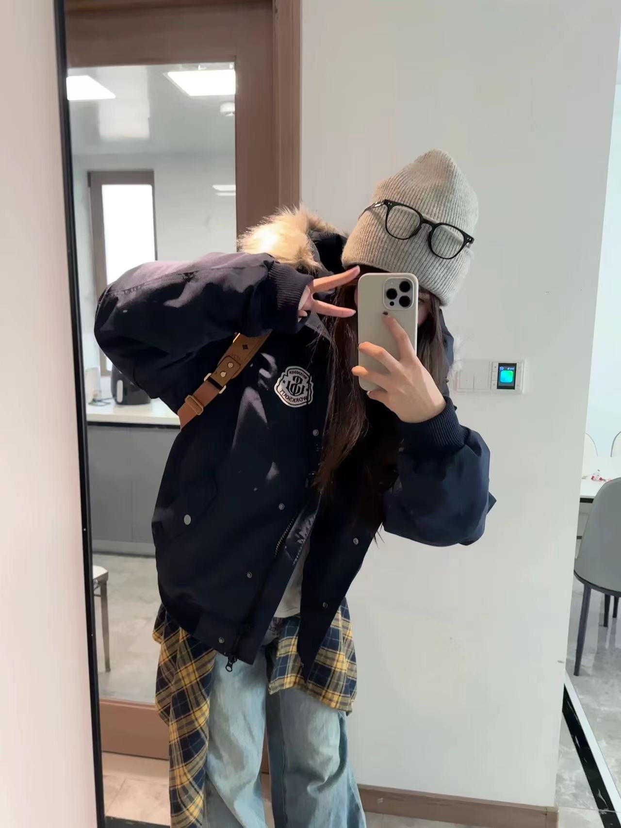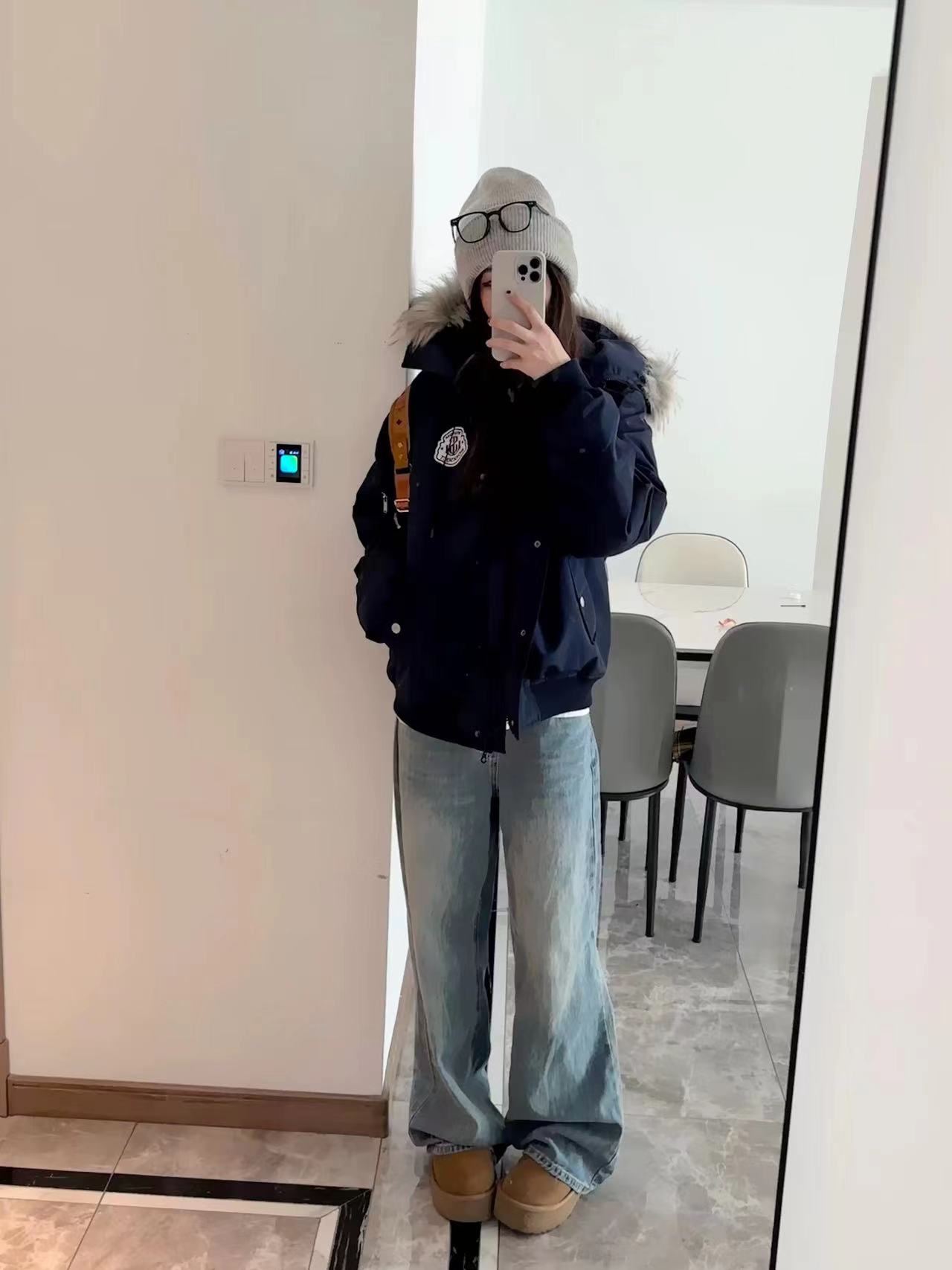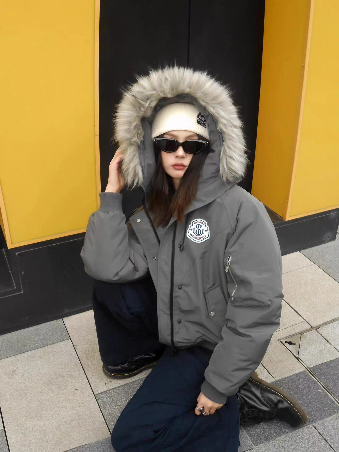 黄子弘凡同款NICEBAD原WORKSOUT连帽毛领派克羽绒棉服复古保暖