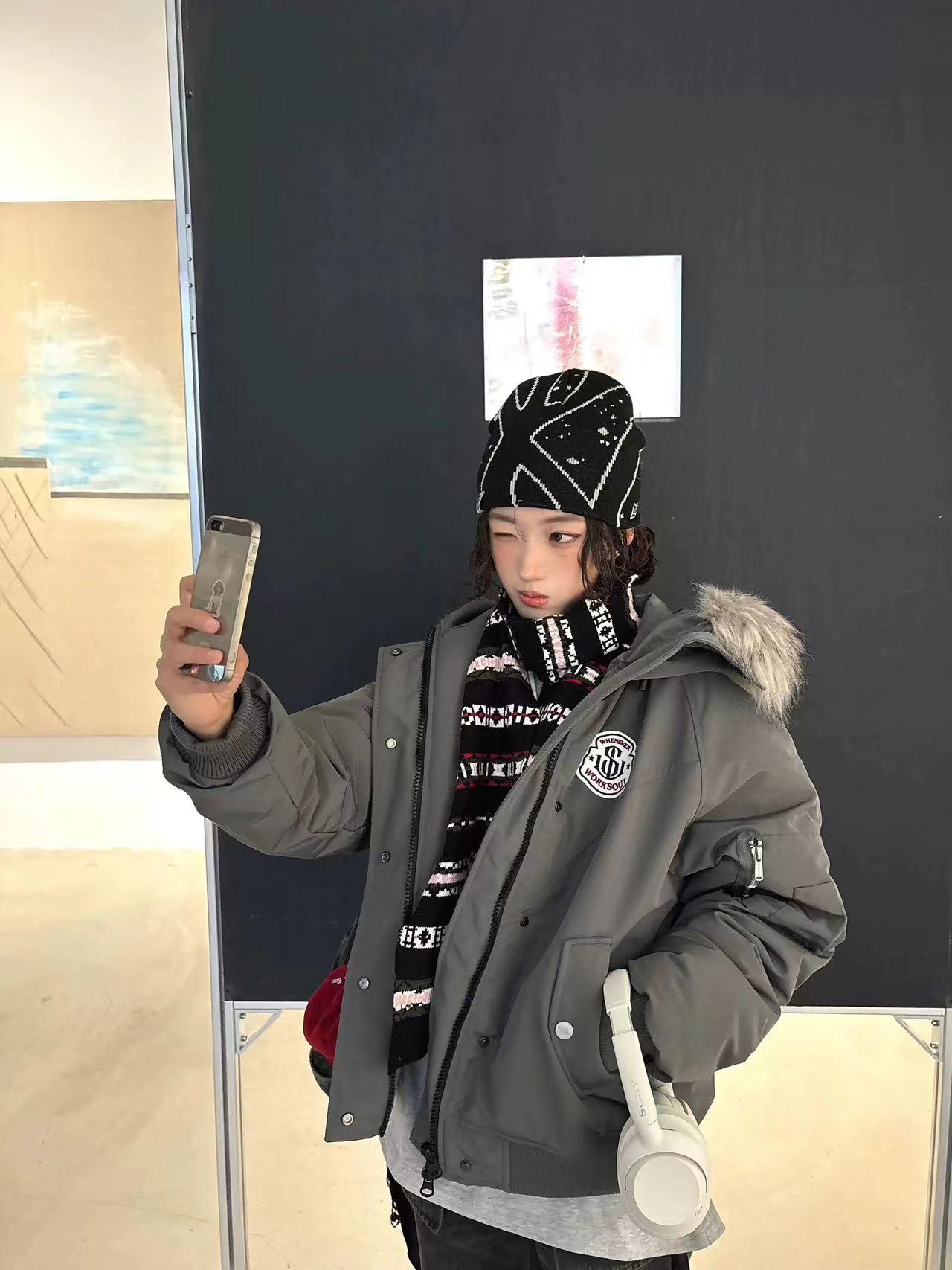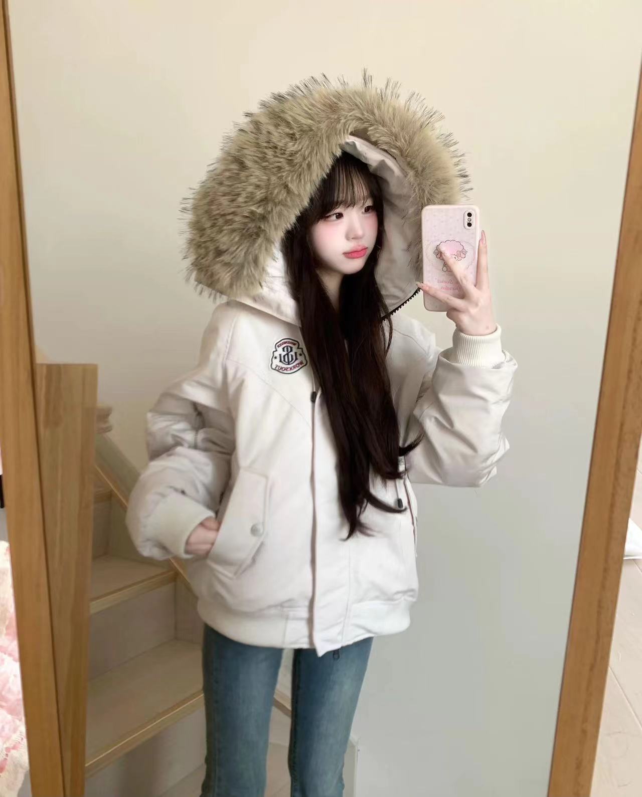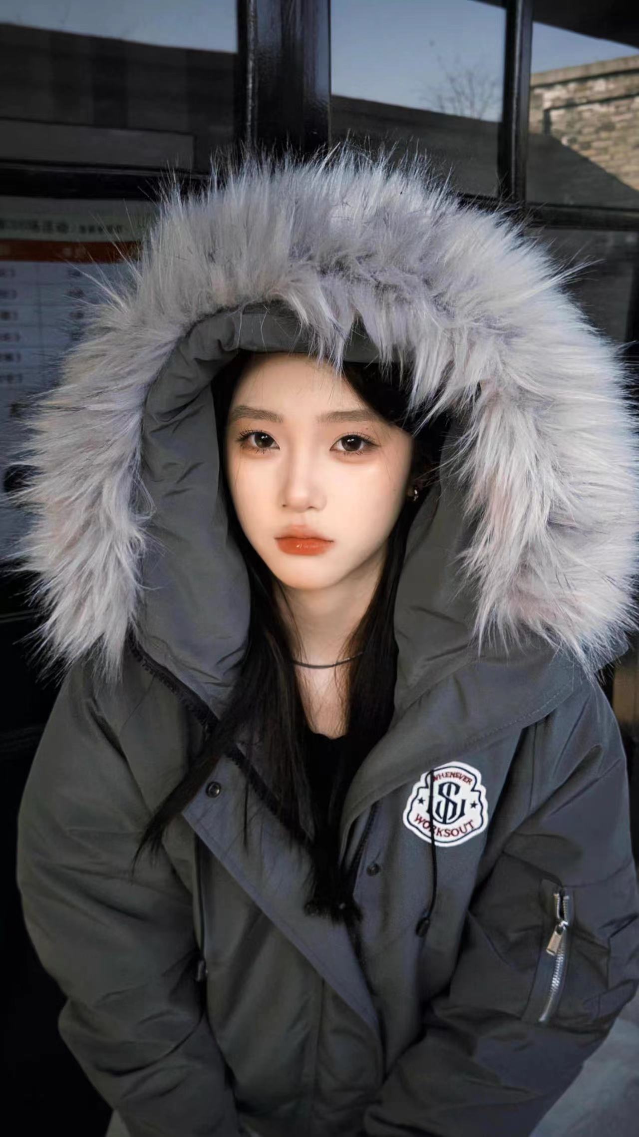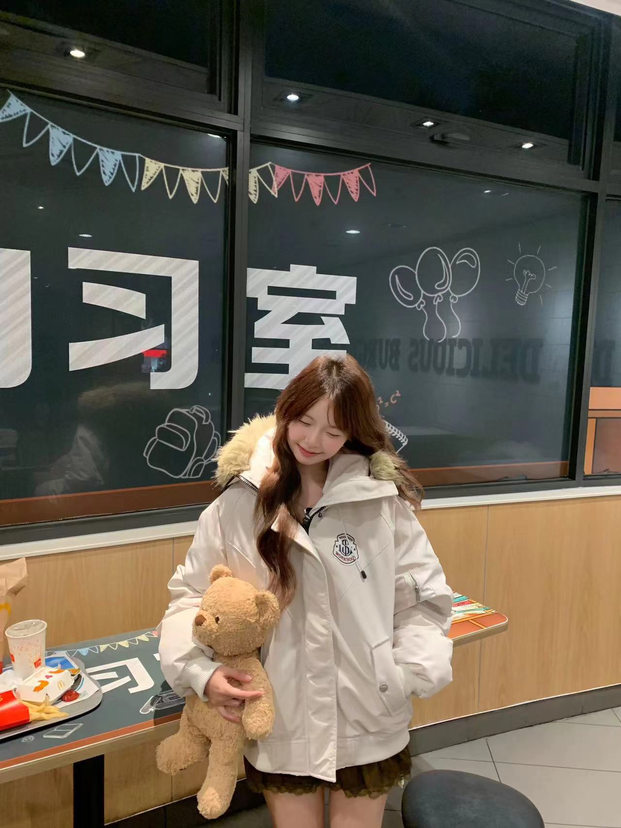 黄子弘凡同款NICEBAD原WORKSOUT连帽毛领派克羽绒棉服复古保暖