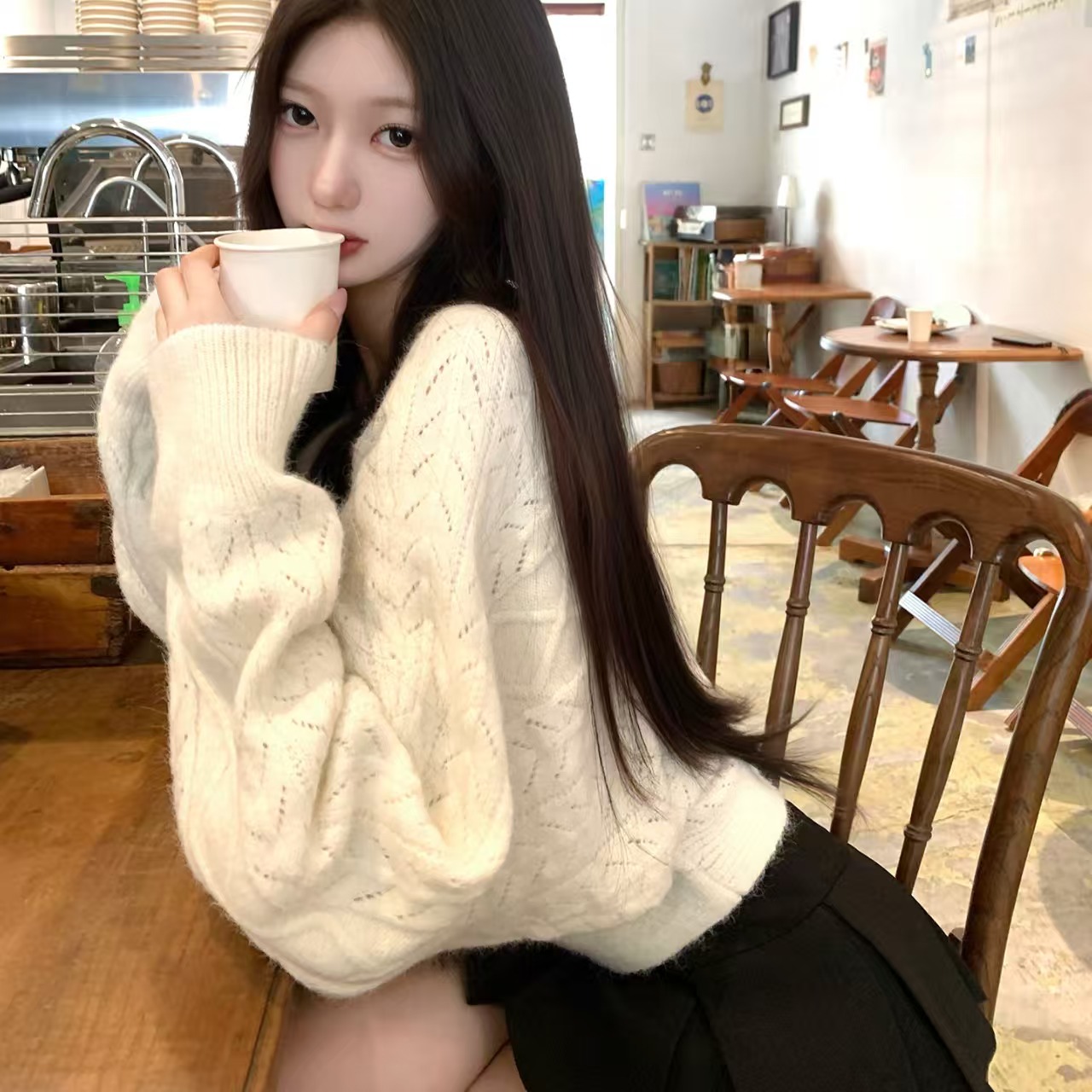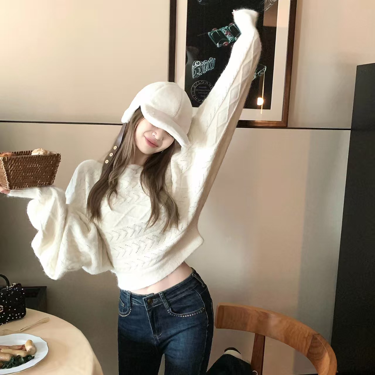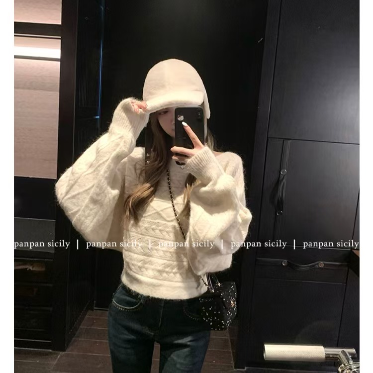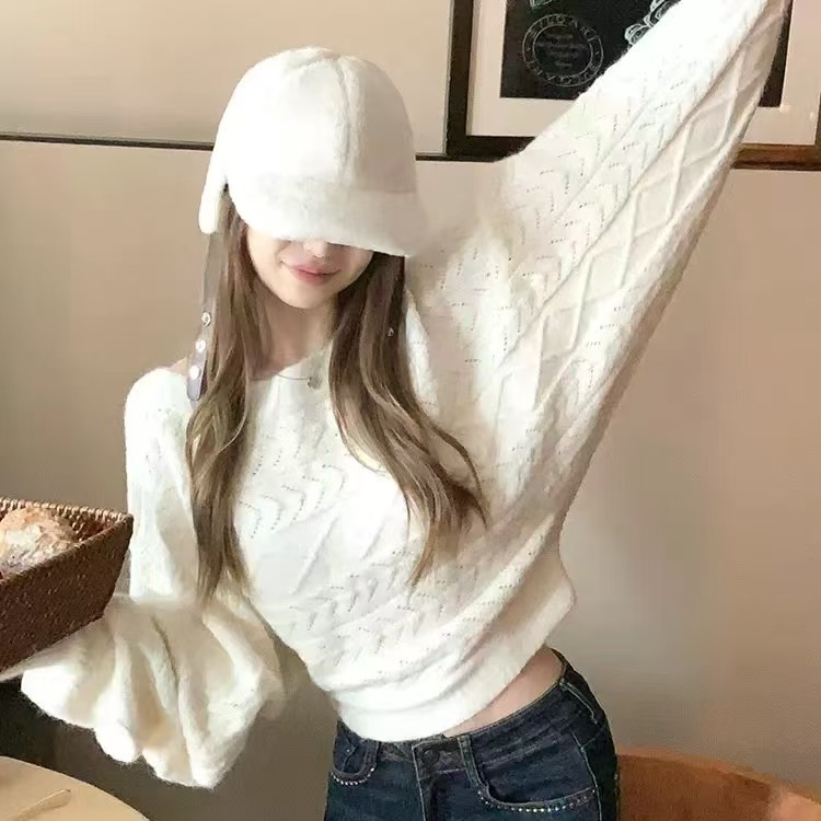 盘盘慵懒鬼马秋季韩系羊毛针织衫女蝙蝠袖长袖毛衣百搭上衣