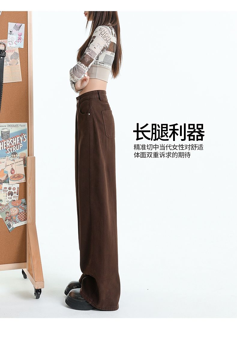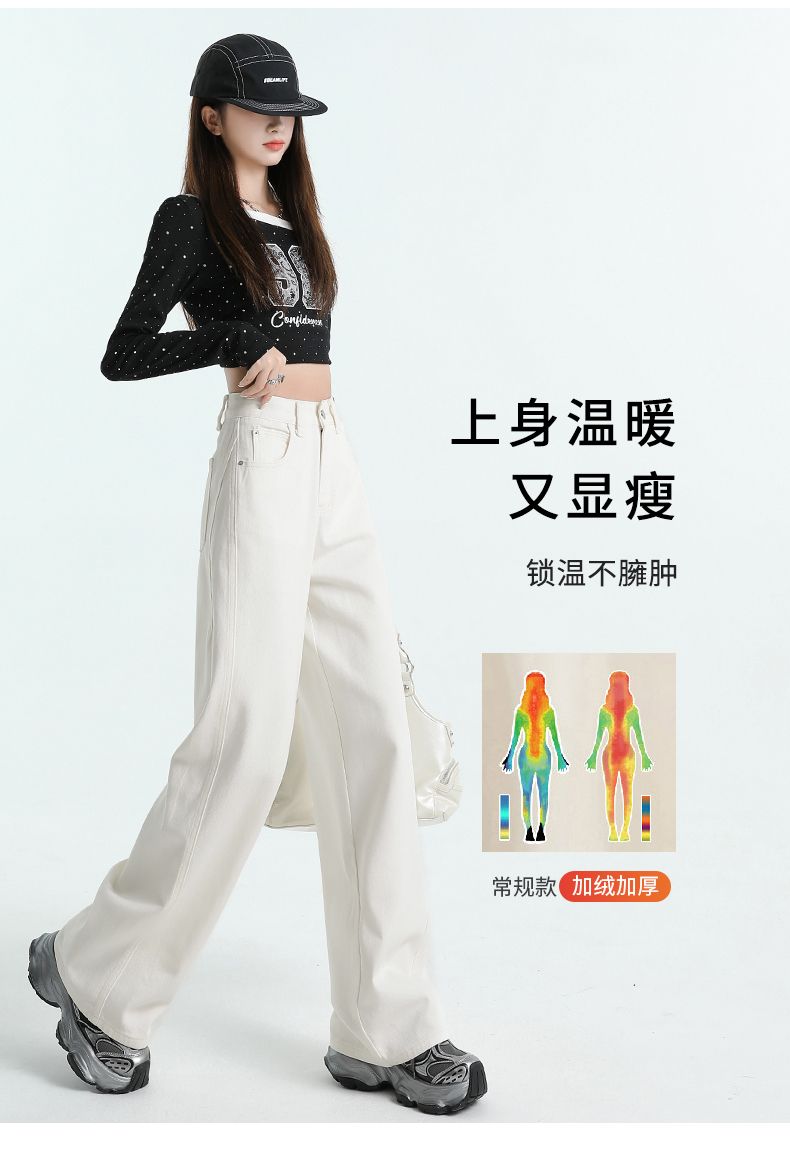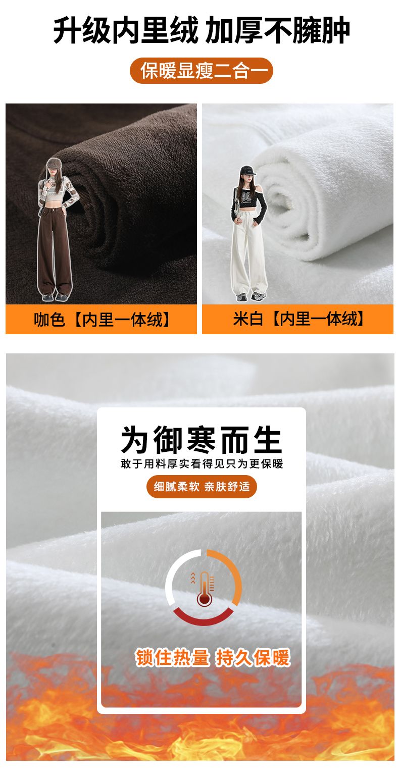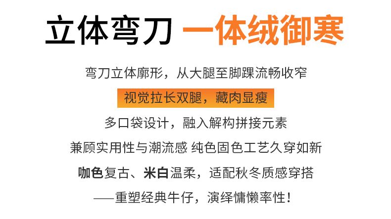 厚绒美拉德咖色阔腿牛仔裤女秋冬美式弯刀高街高个子拖地裤