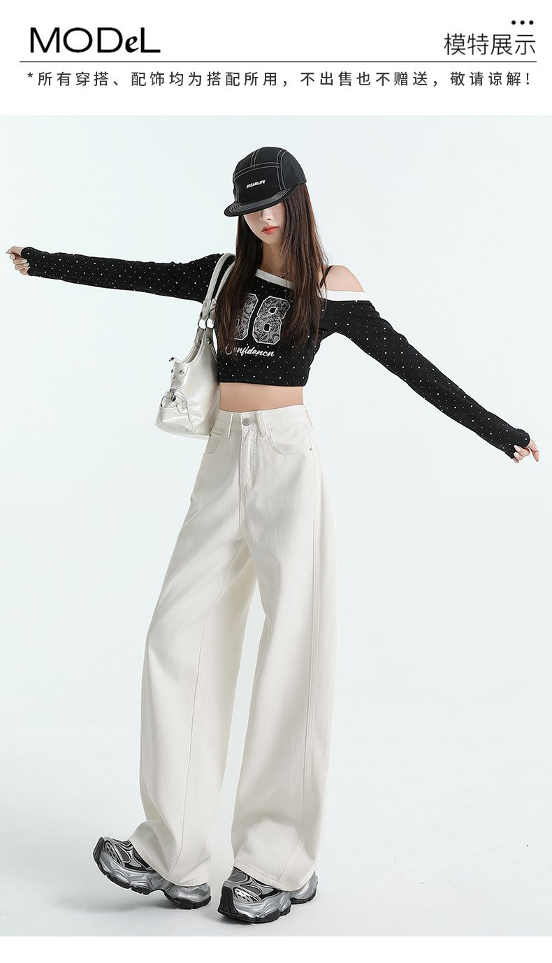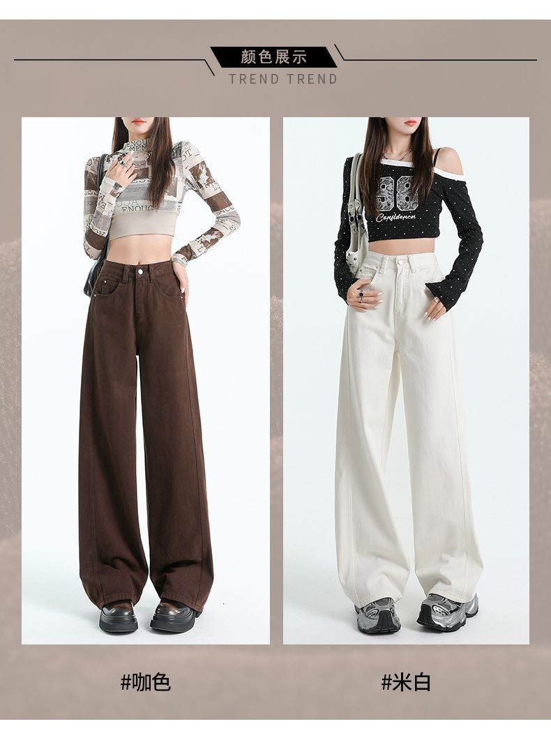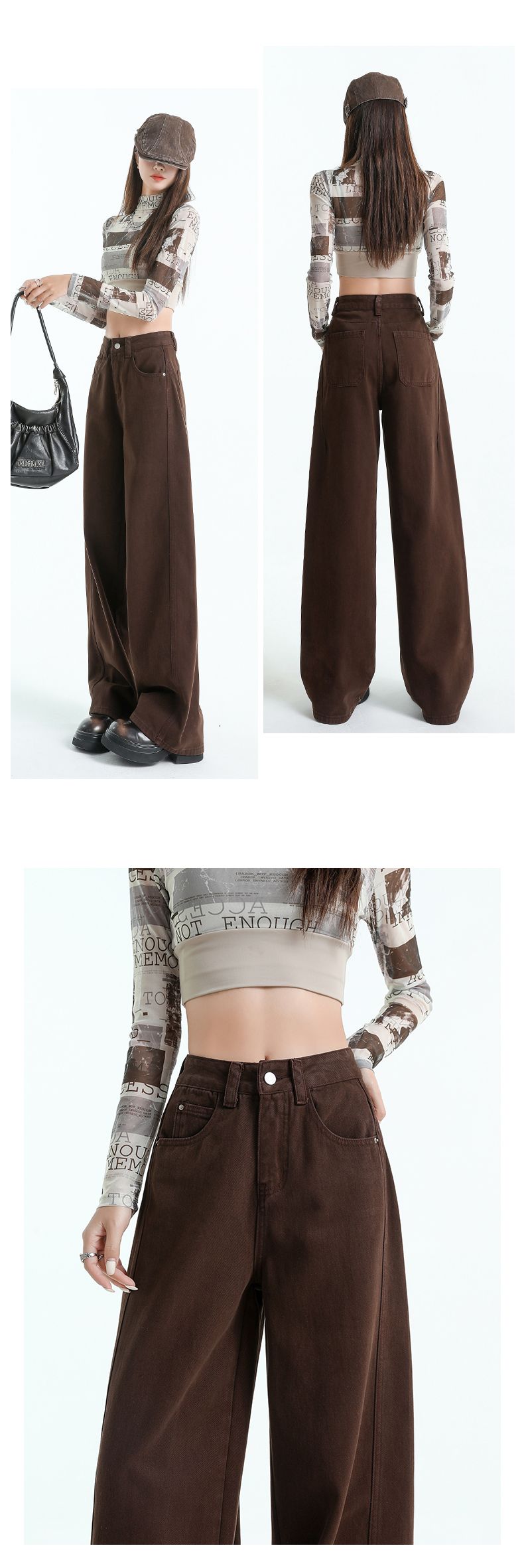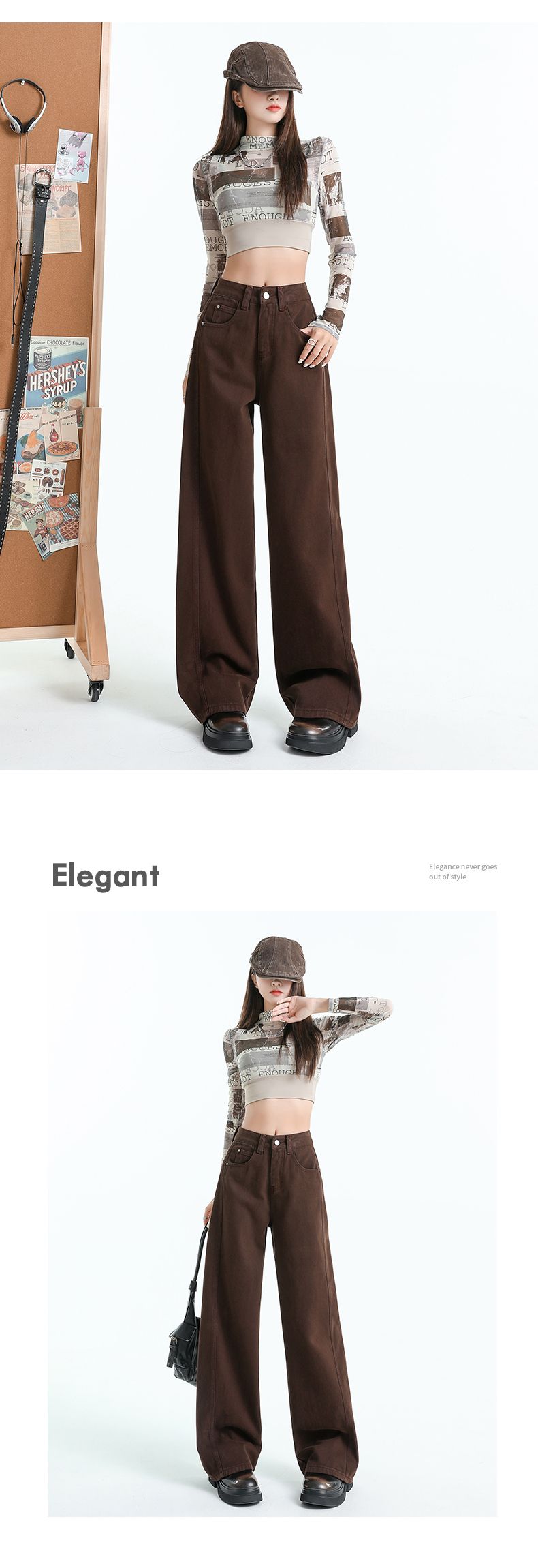 厚绒美拉德咖色阔腿牛仔裤女秋冬美式弯刀高街高个子拖地裤