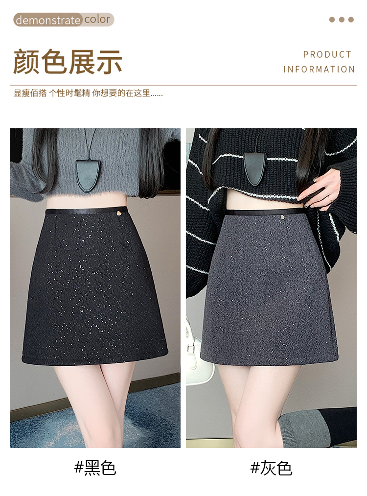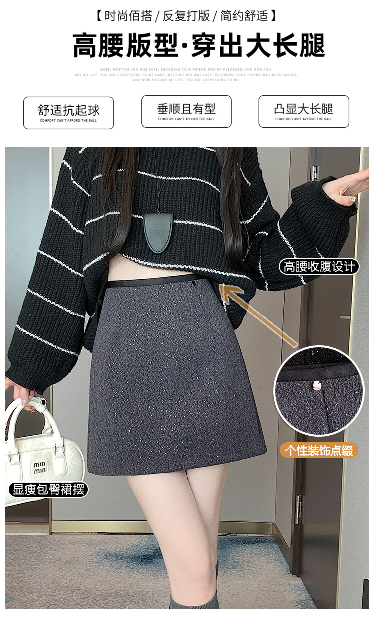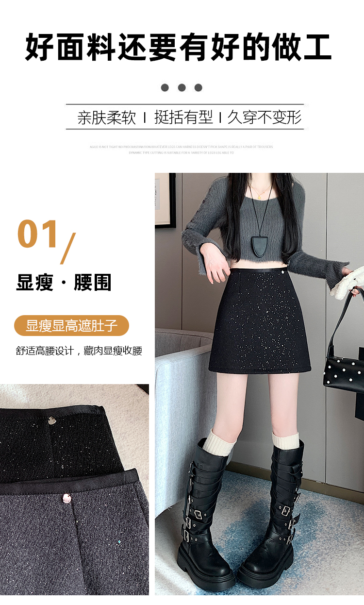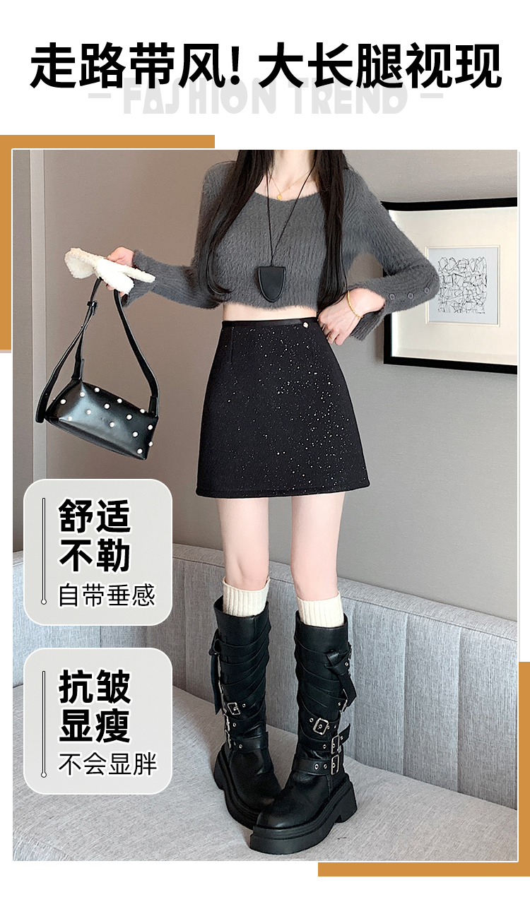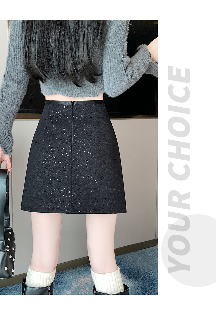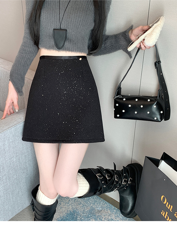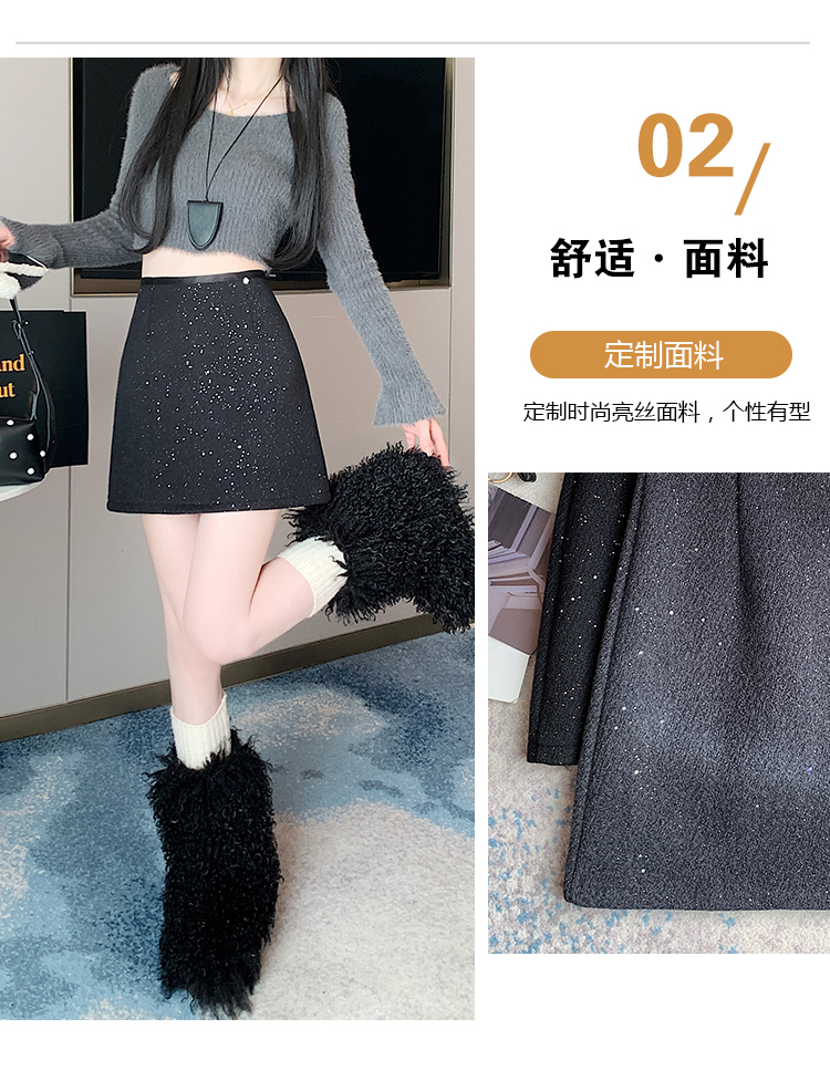 实拍 小香风闪闪重工亮片毛呢半身裙女秋冬高腰显瘦包臀裙a字短裙