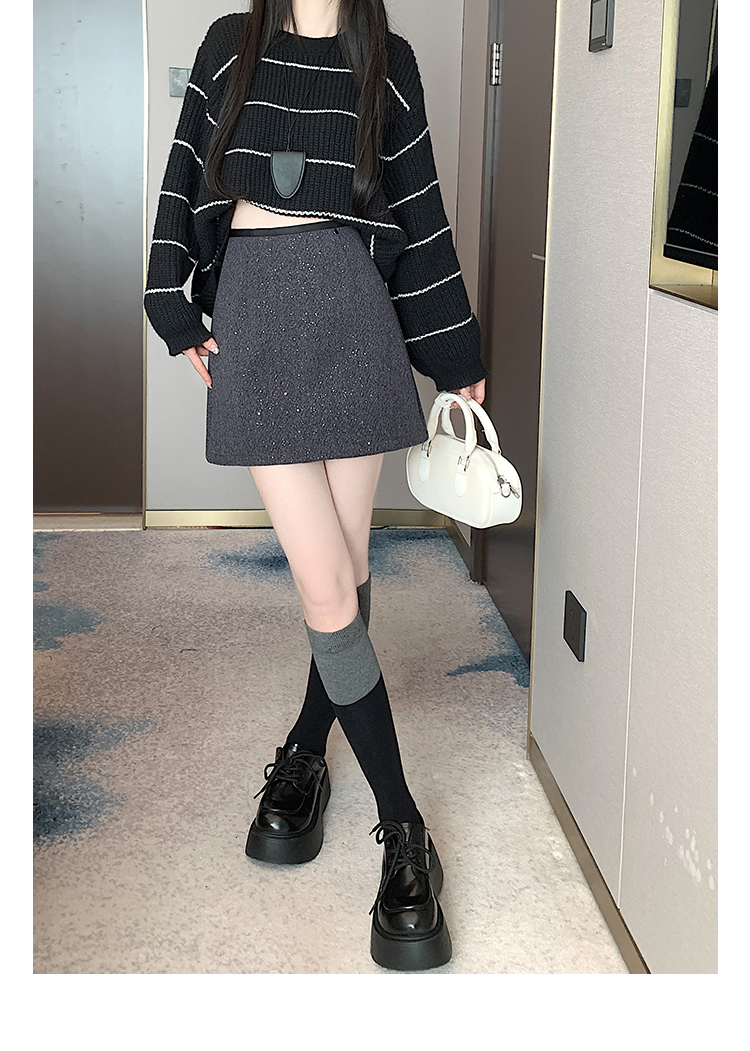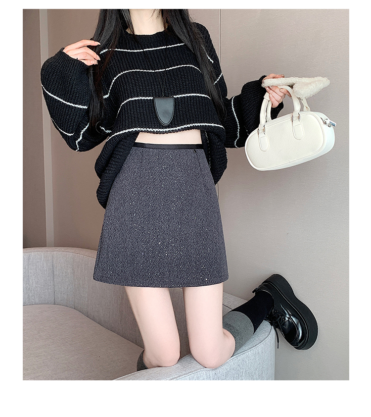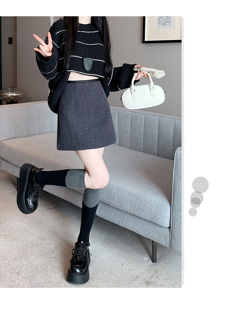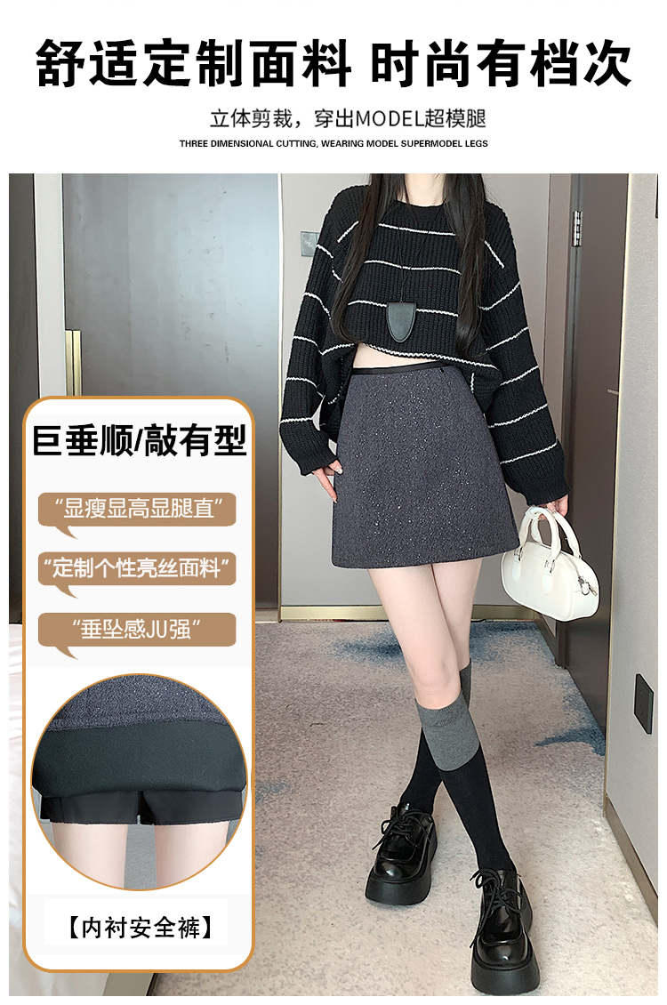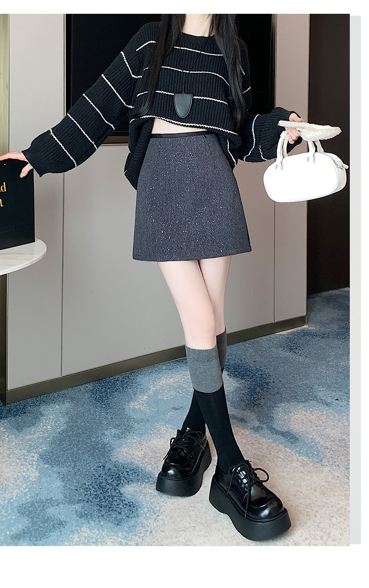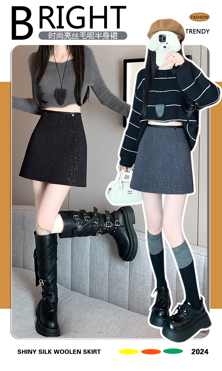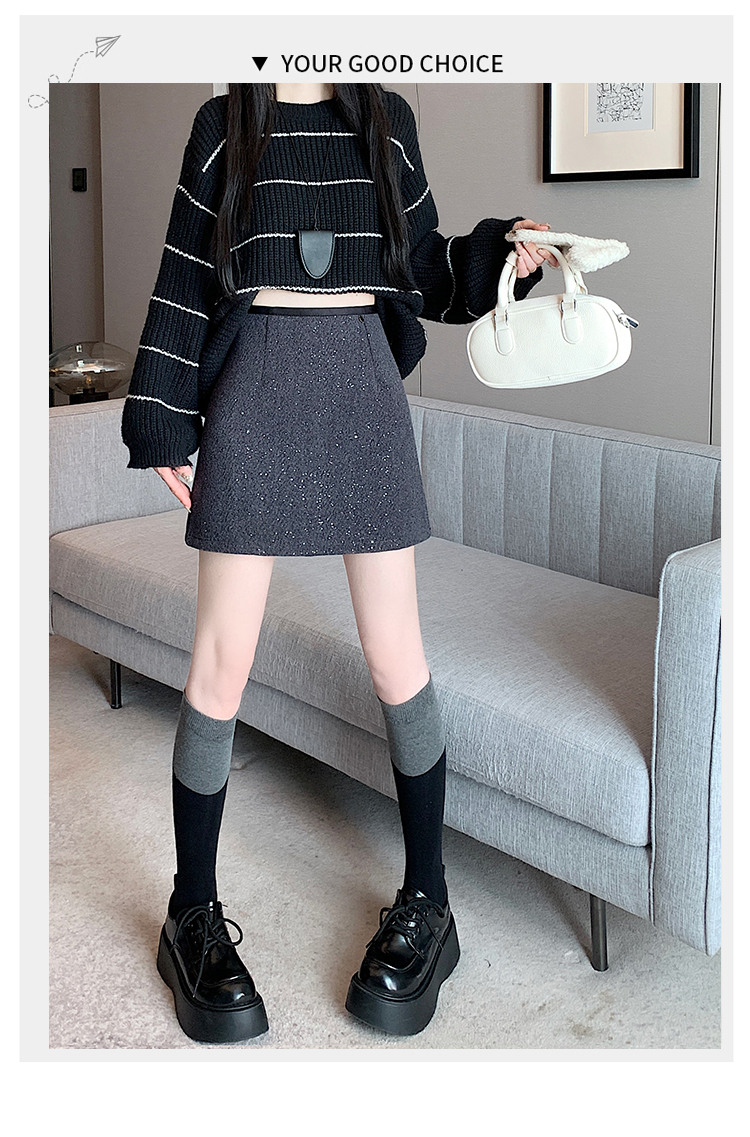 实拍 小香风闪闪重工亮片毛呢半身裙女秋冬高腰显瘦包臀裙a字短裙