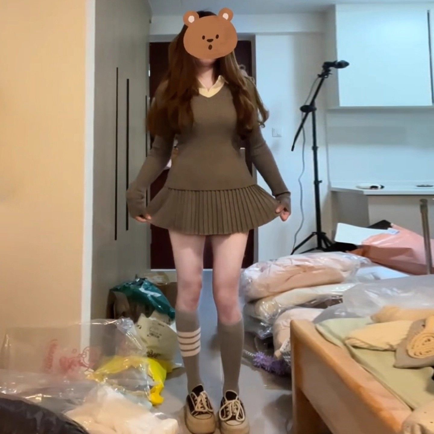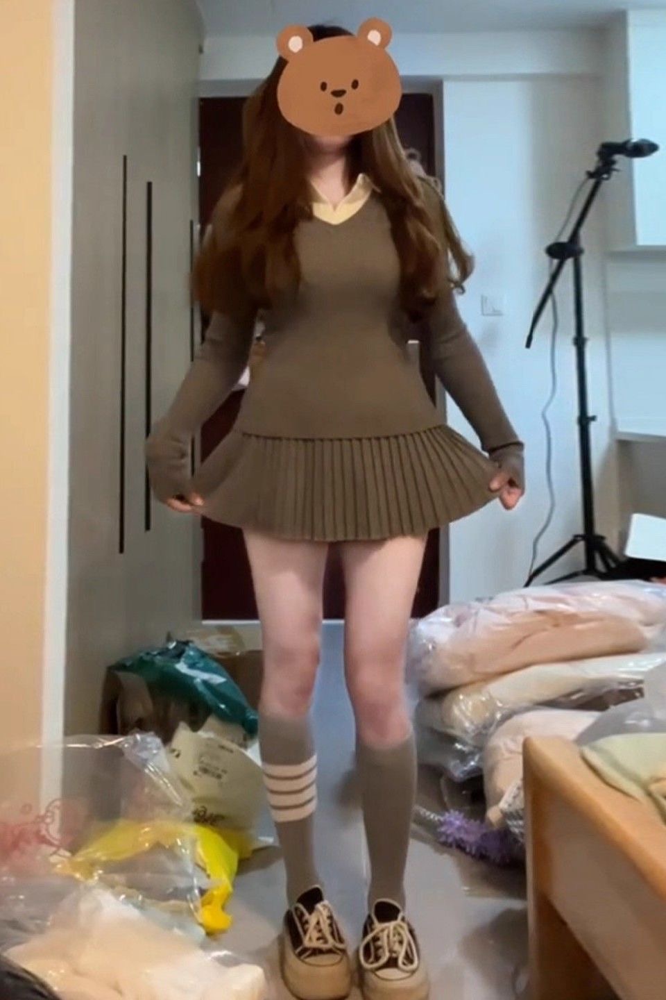 巨好看漂亮针织连衣裙女秋冬季2025新款小个子韩系穿搭百褶裙套装