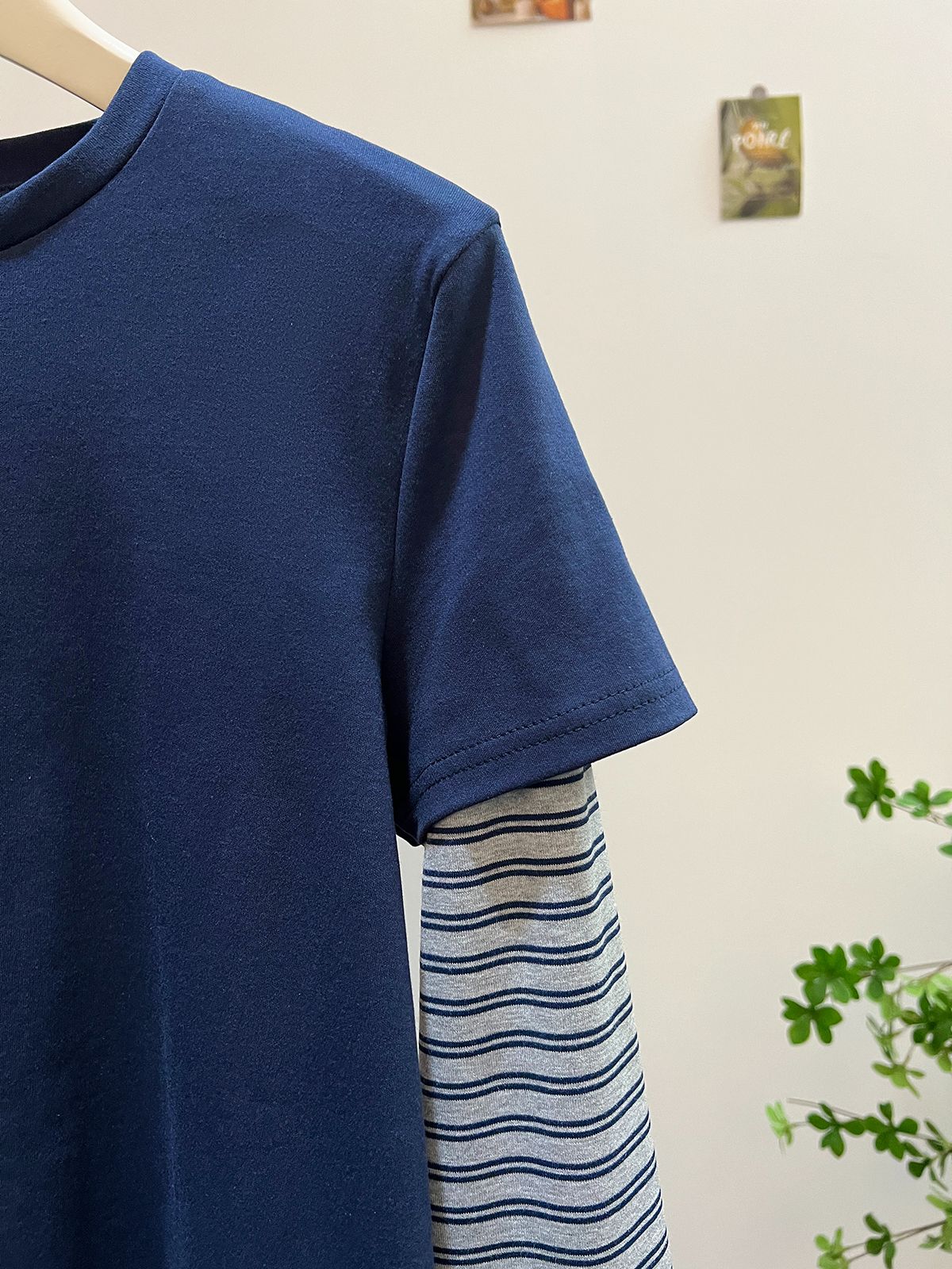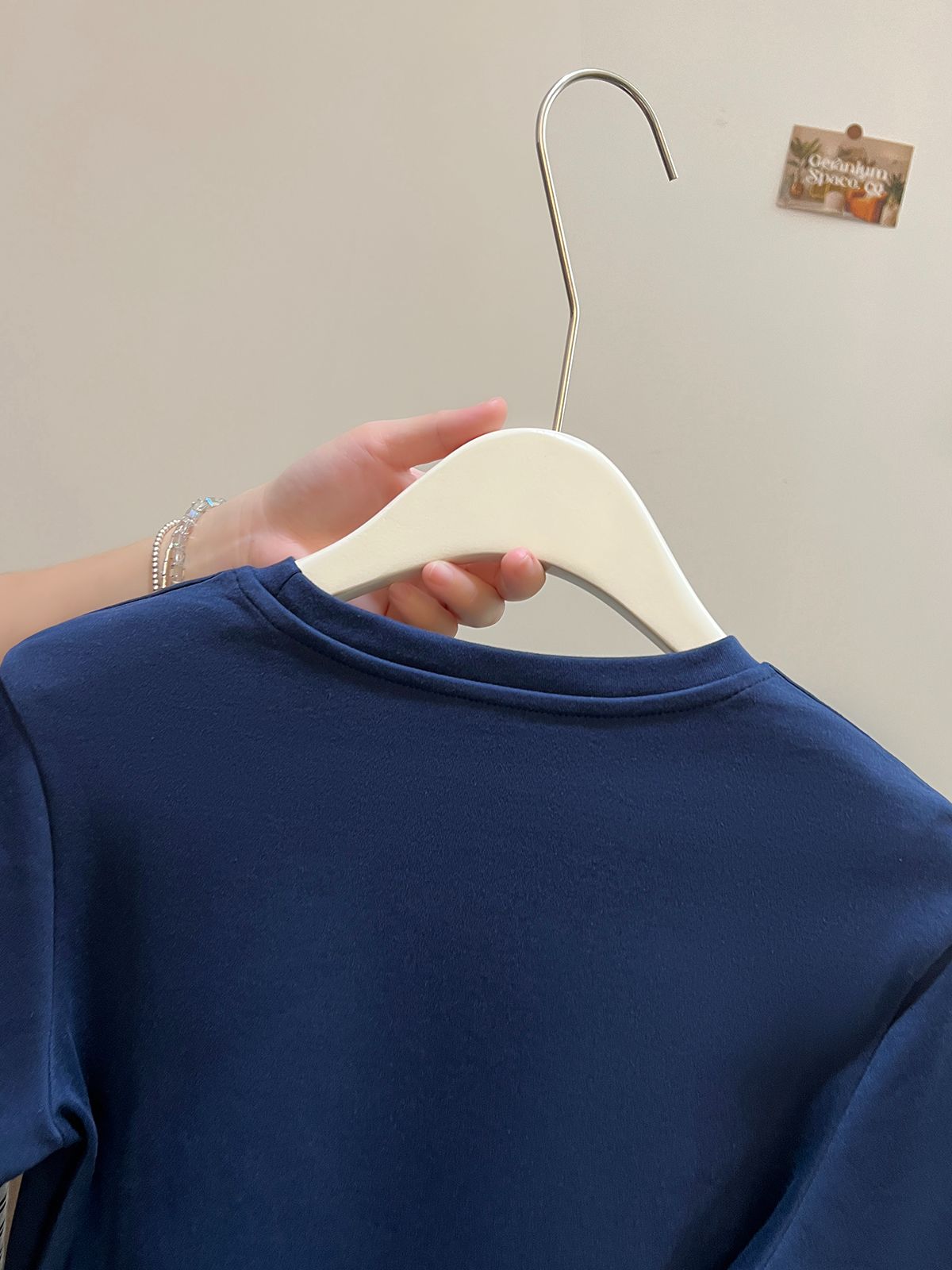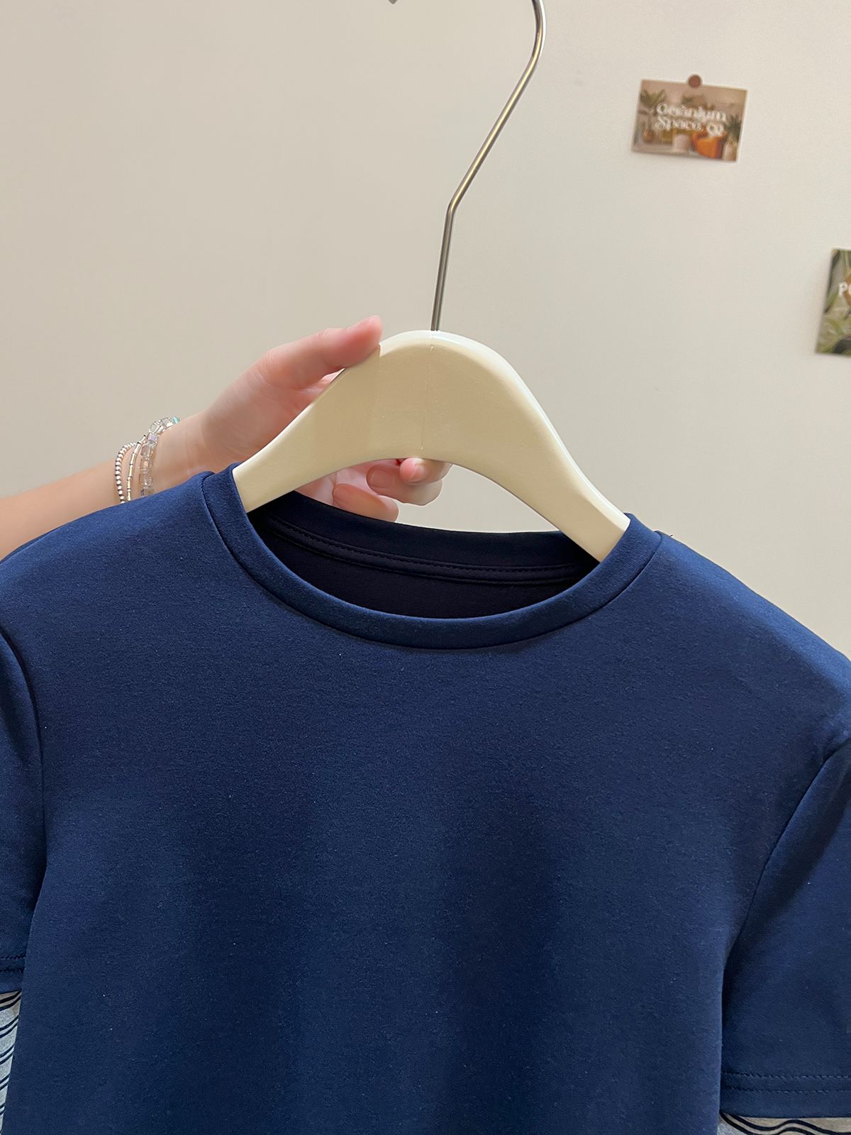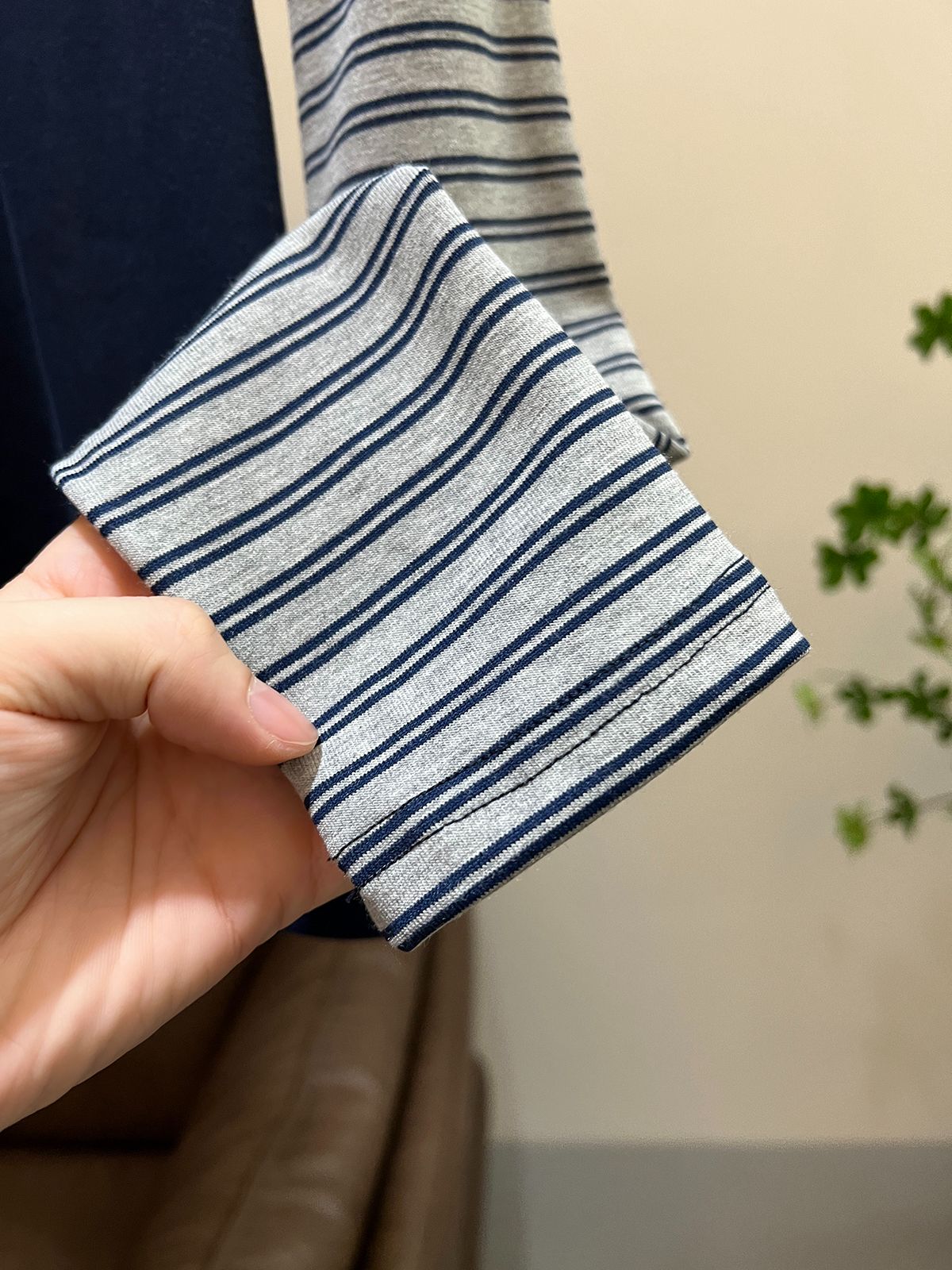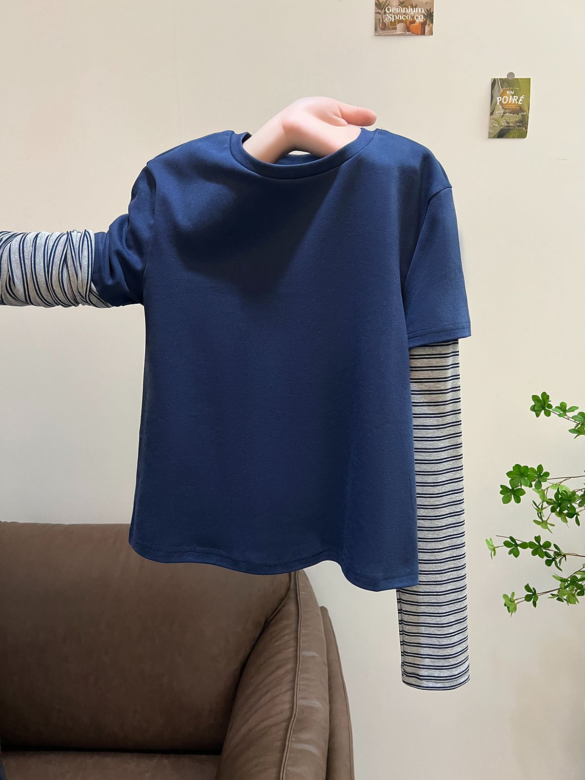 实拍 40支220克93棉1*1小个子短款假两件条纹长袖t恤女秋季上衣