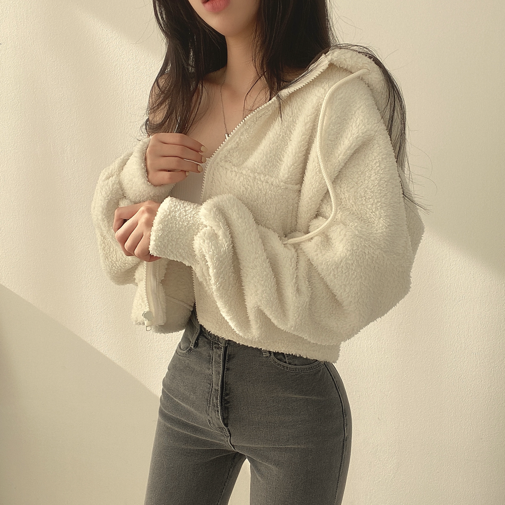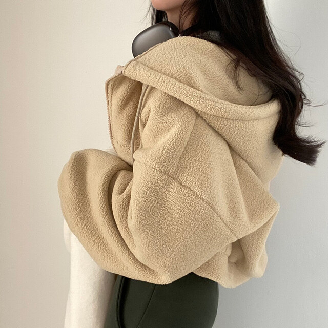 韩版羊羔绒外套女2025秋冬装加厚保暖毛茸茸夹克拉链连帽羊羔服