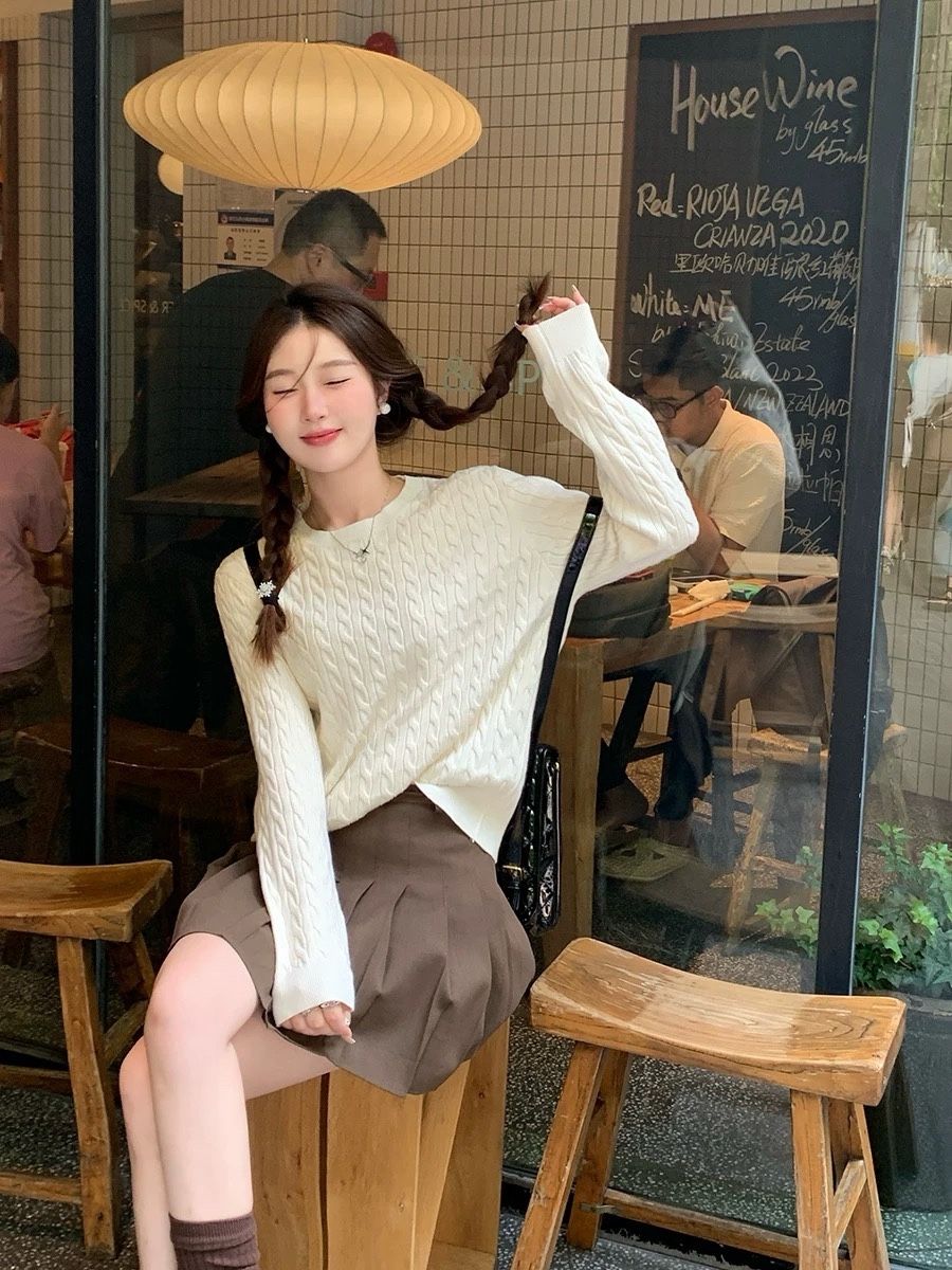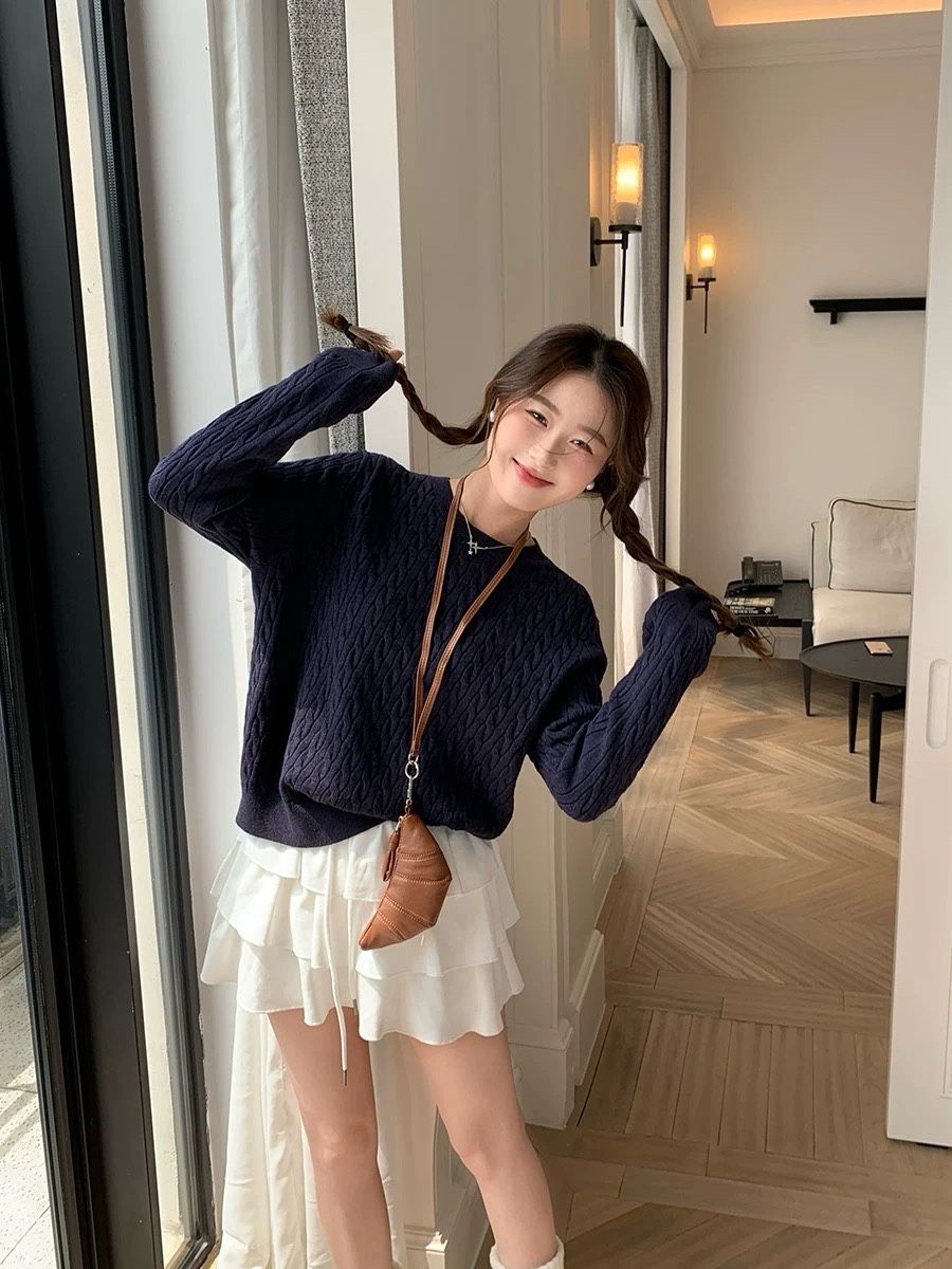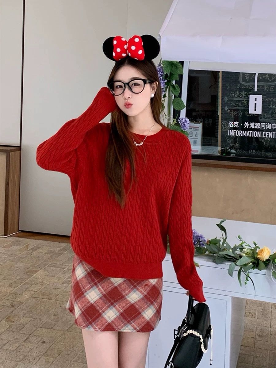 毛衣女款秋冬新款外穿慵懒风软糯麻花套头针织衫内搭打底长袖上衣