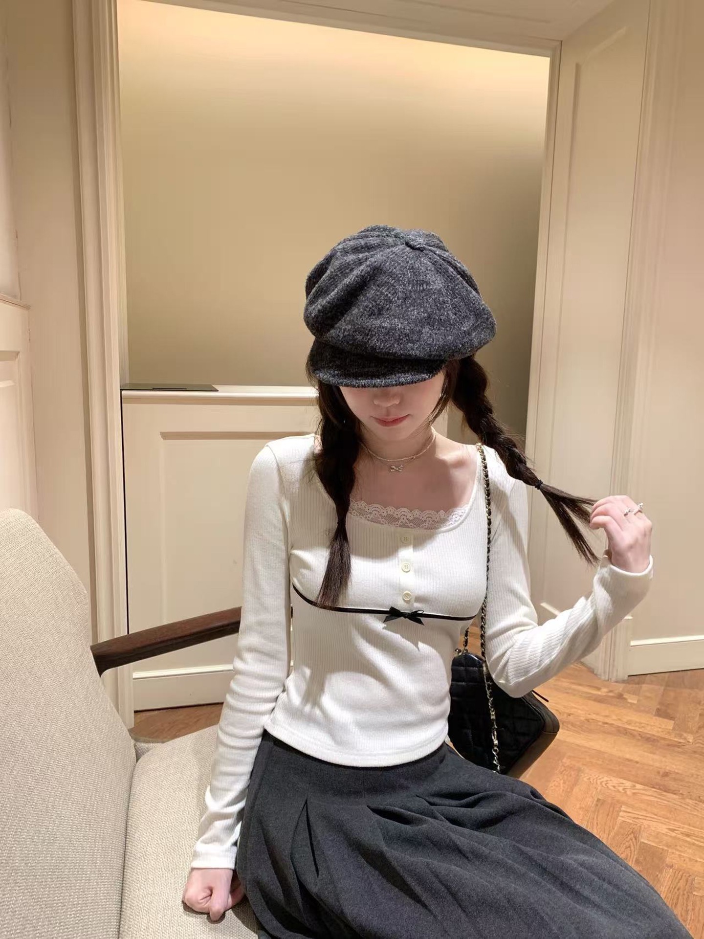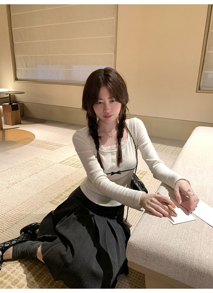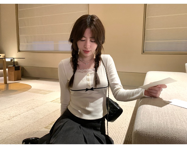 人棉抓毛大U领修身针织长袖上衣2025秋冬女显瘦内搭打底