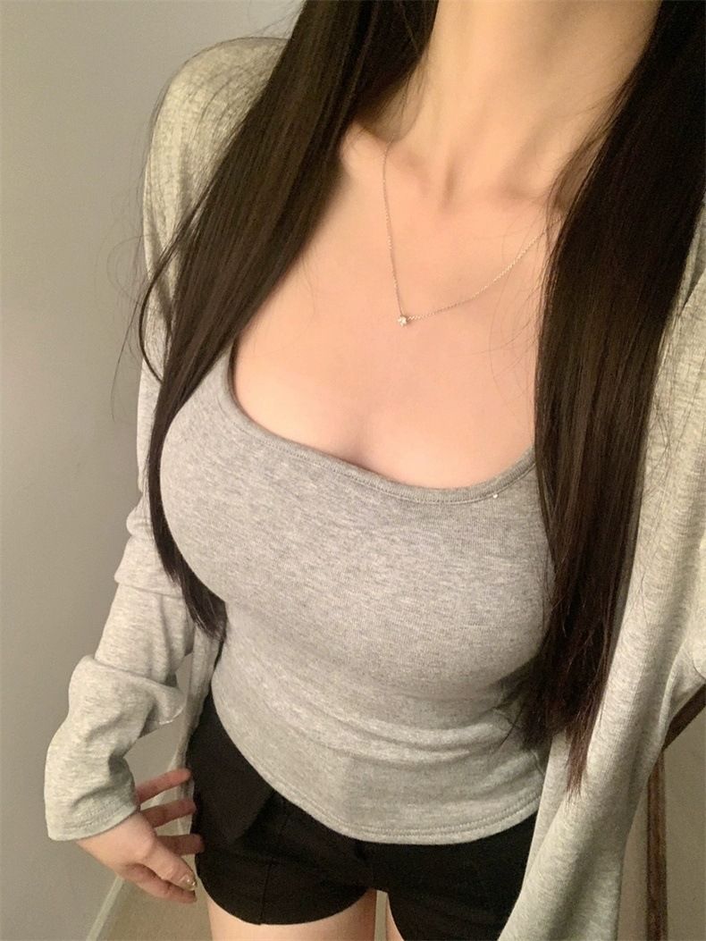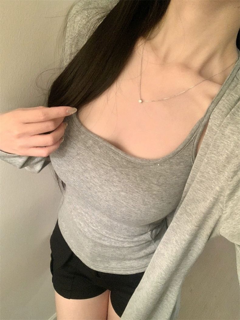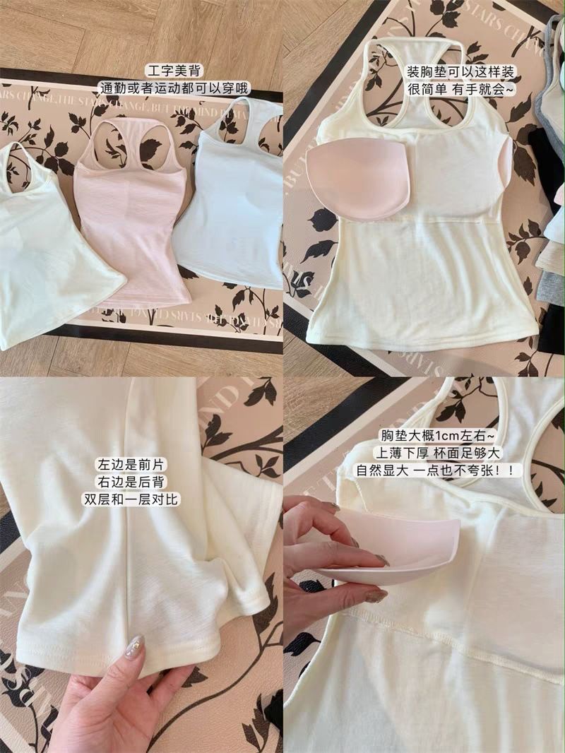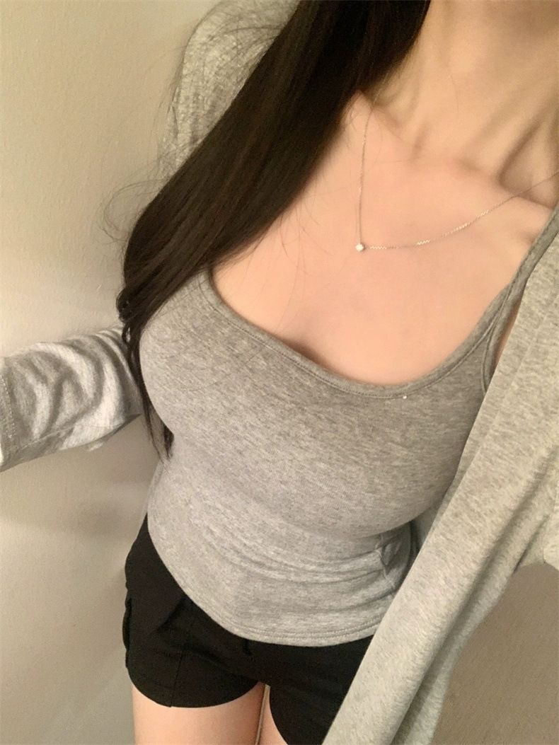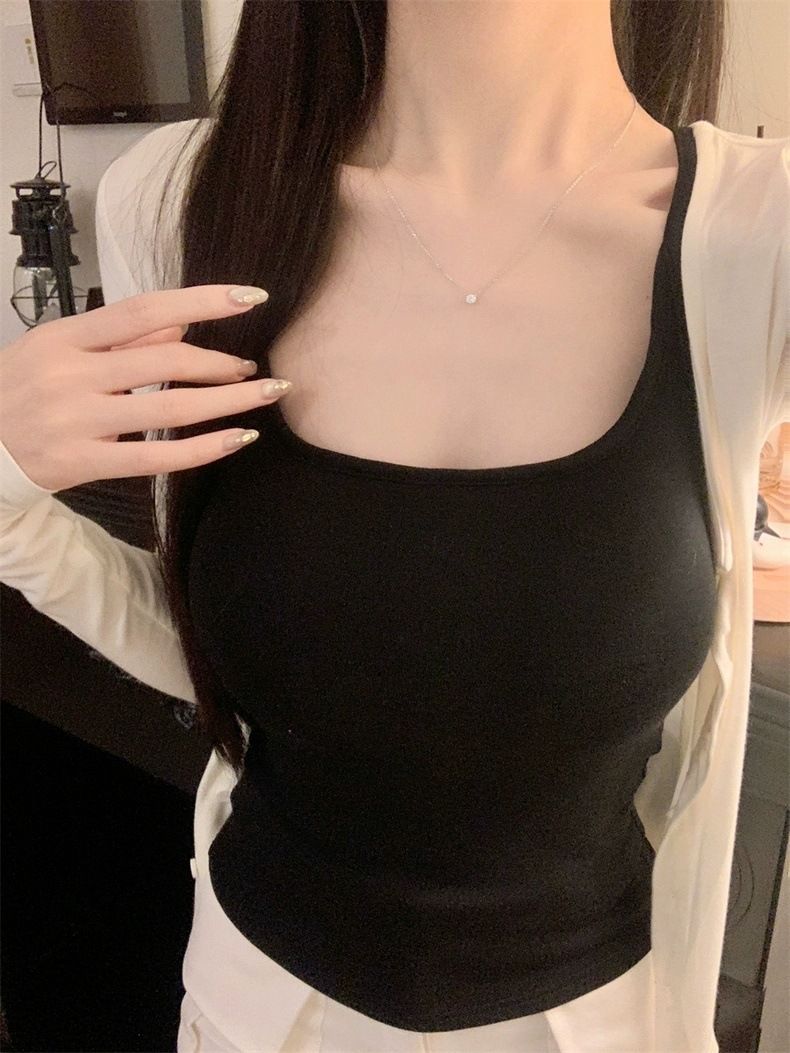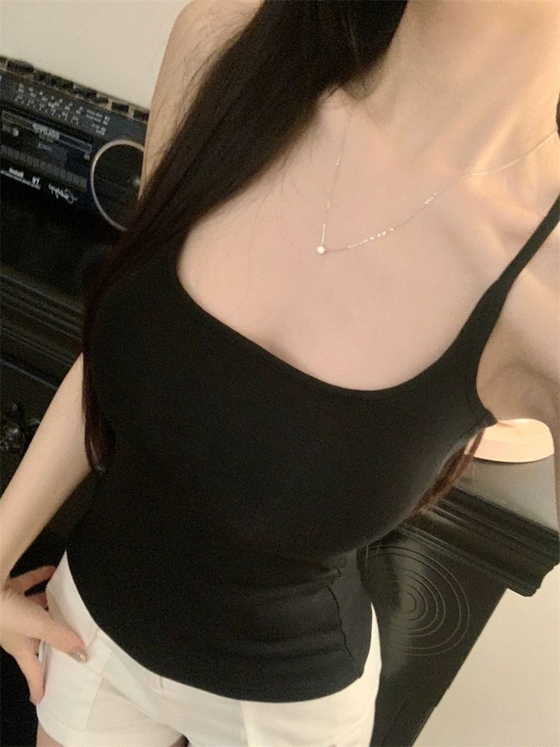 纯欲性感辣妹秋款带胸垫修身大U领内衣女打底吊带背心女减龄上衣