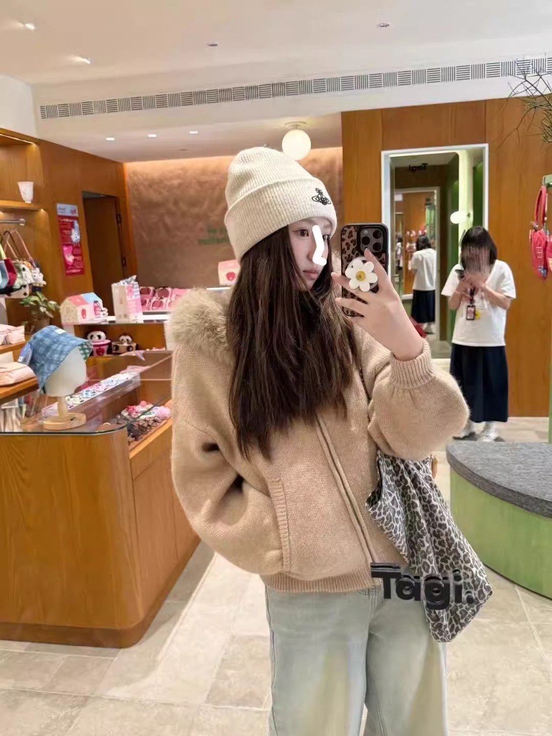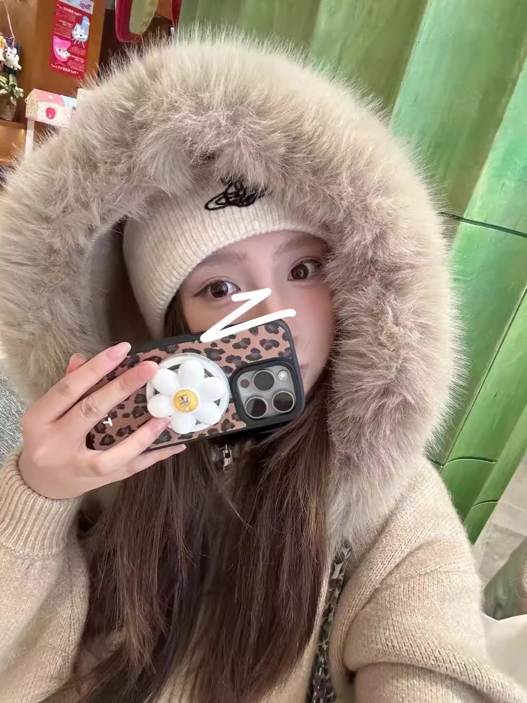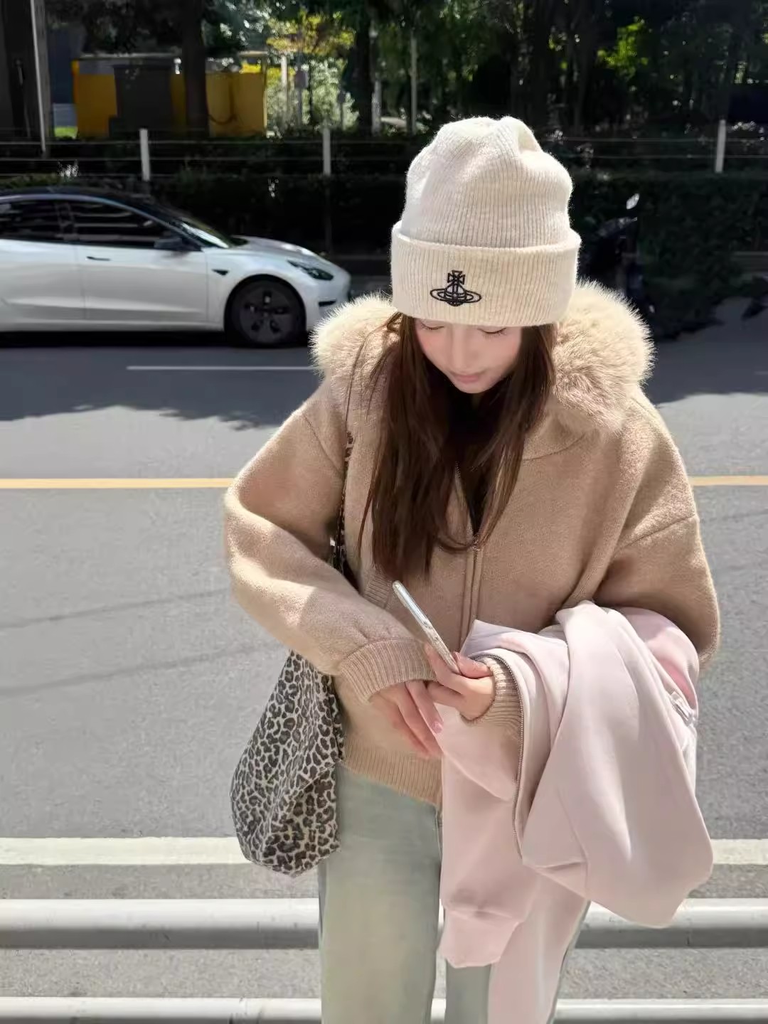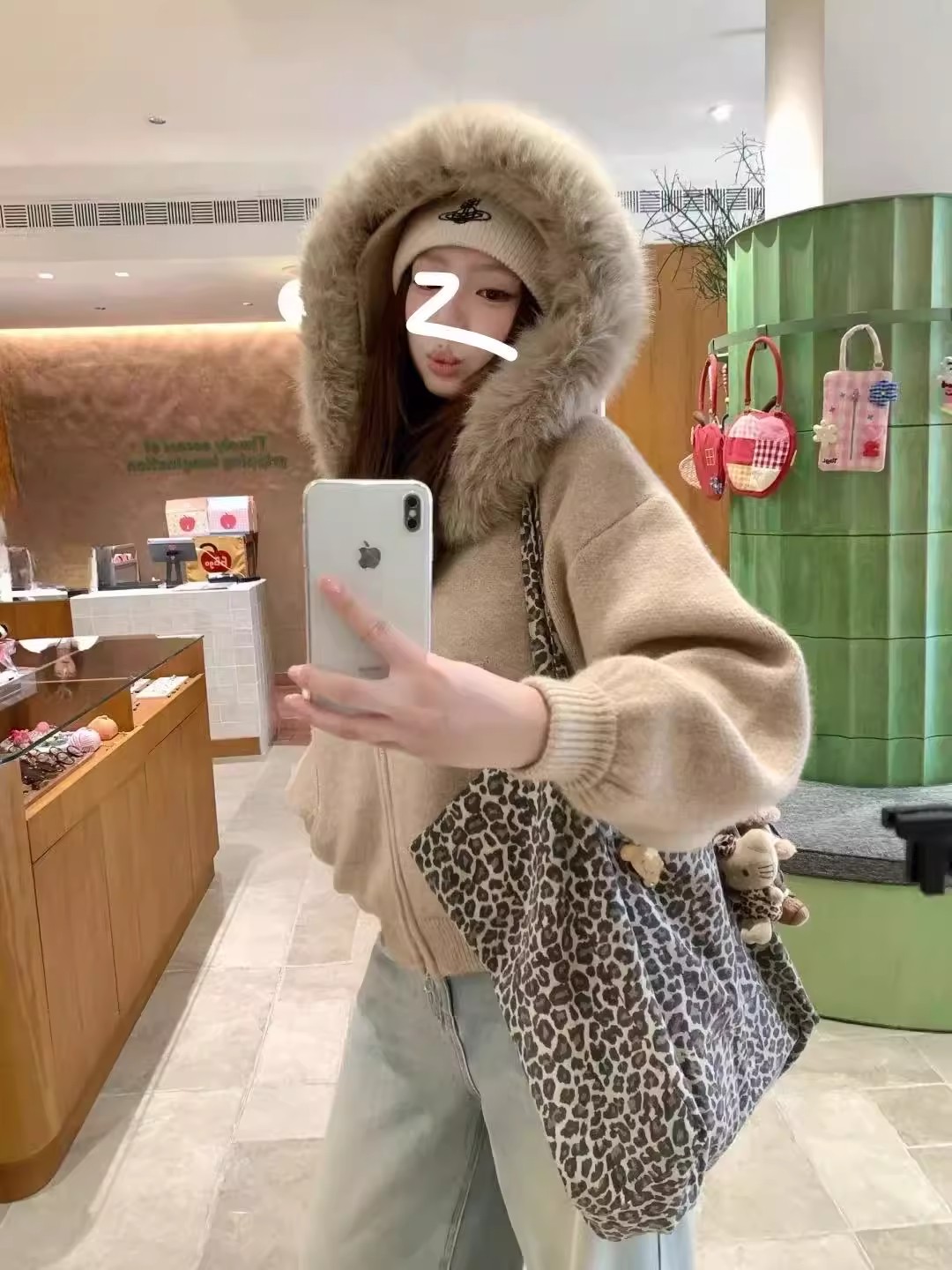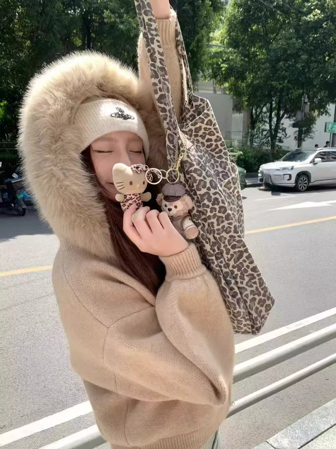 CallmeEar 咖色大毛领毛衣温柔开衫外套女秋冬宽松显瘦软糯针织衫