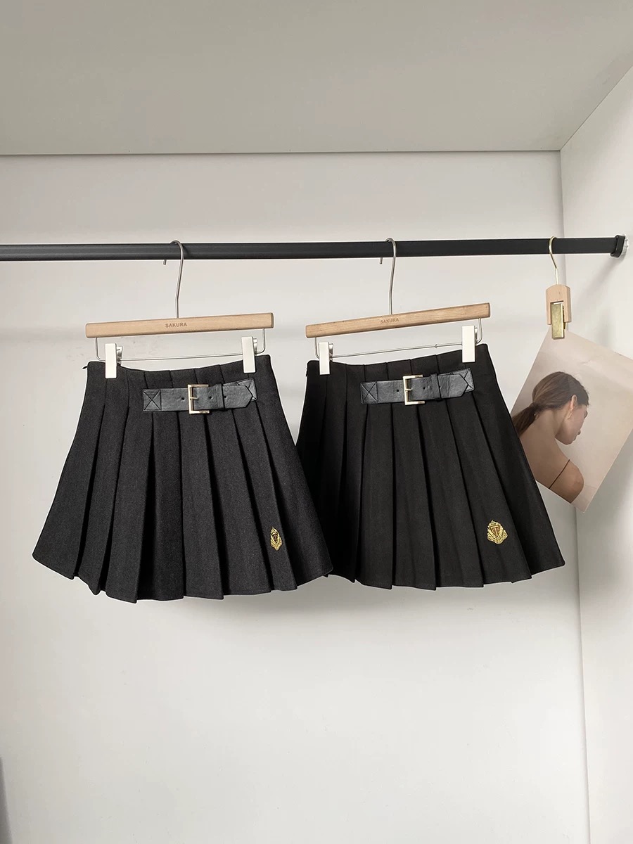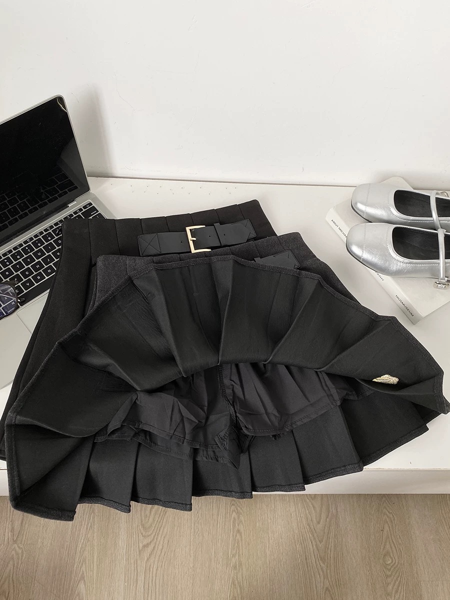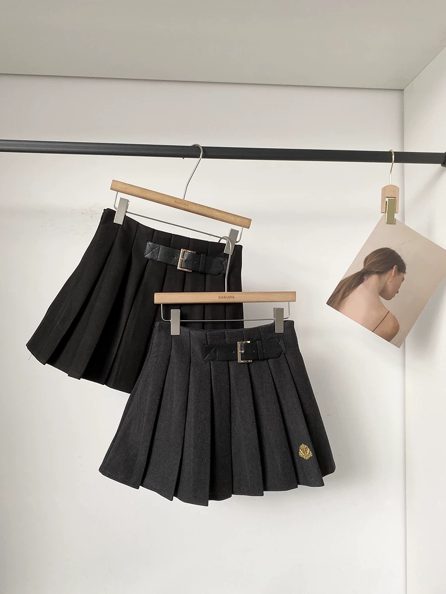 秋冬新款韩系气质休闲百搭学院风高腰加厚百褶裙别致修身jk短裙女