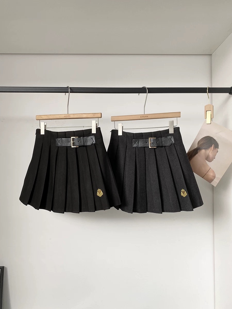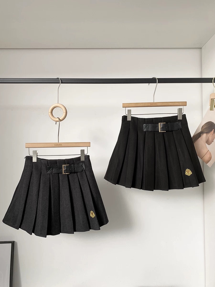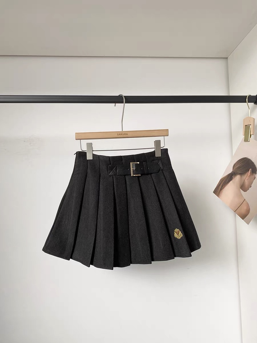 秋冬新款韩系气质休闲百搭学院风高腰加厚百褶裙别致修身jk短裙女