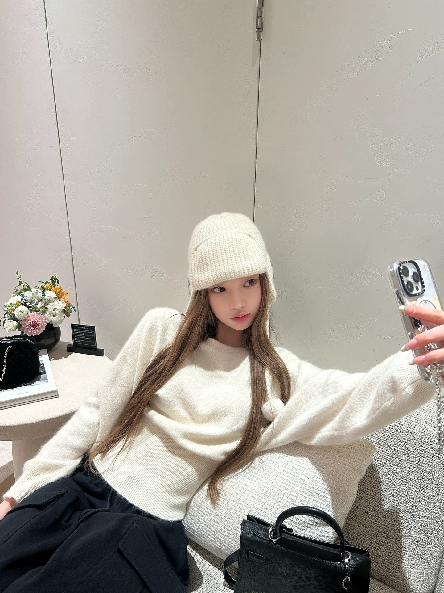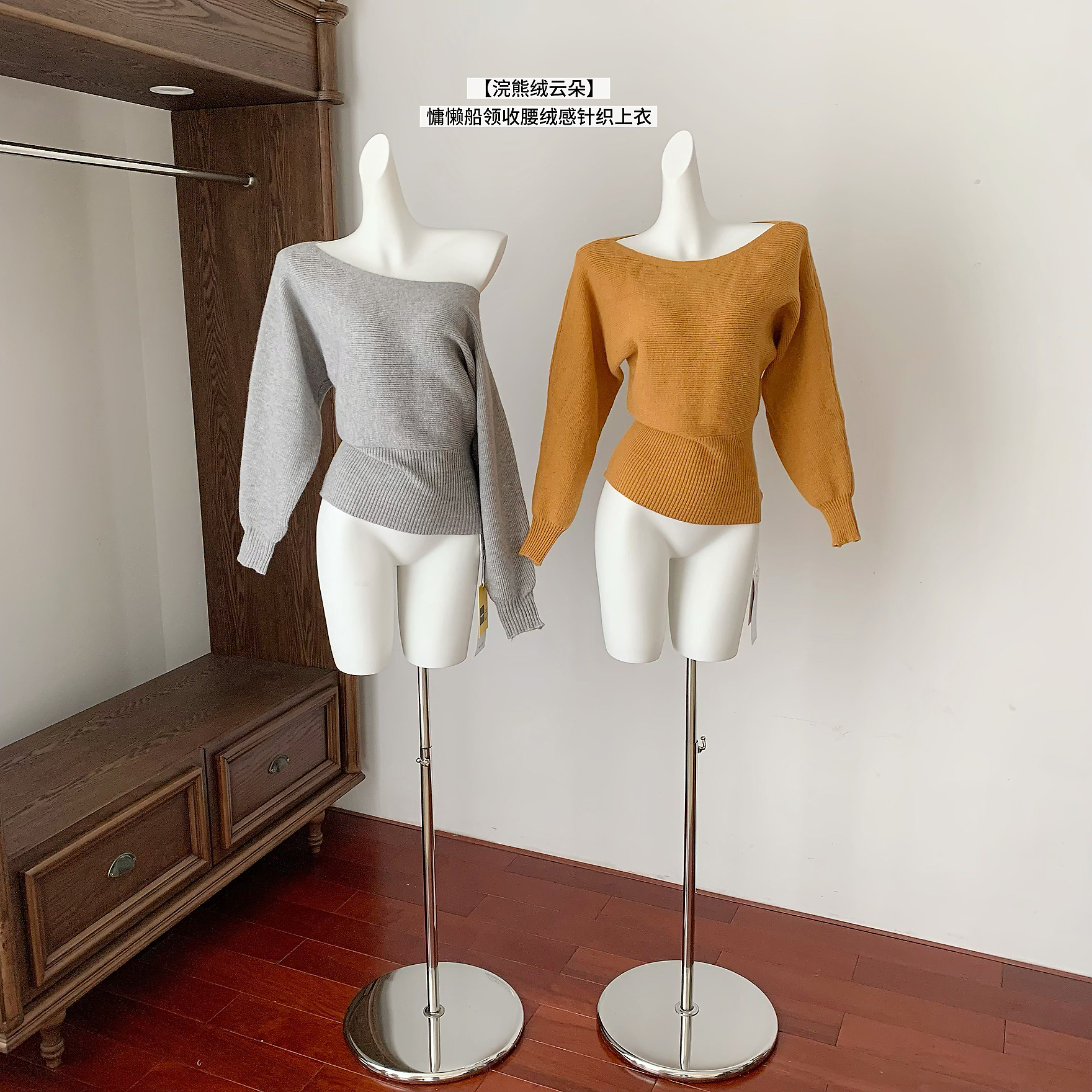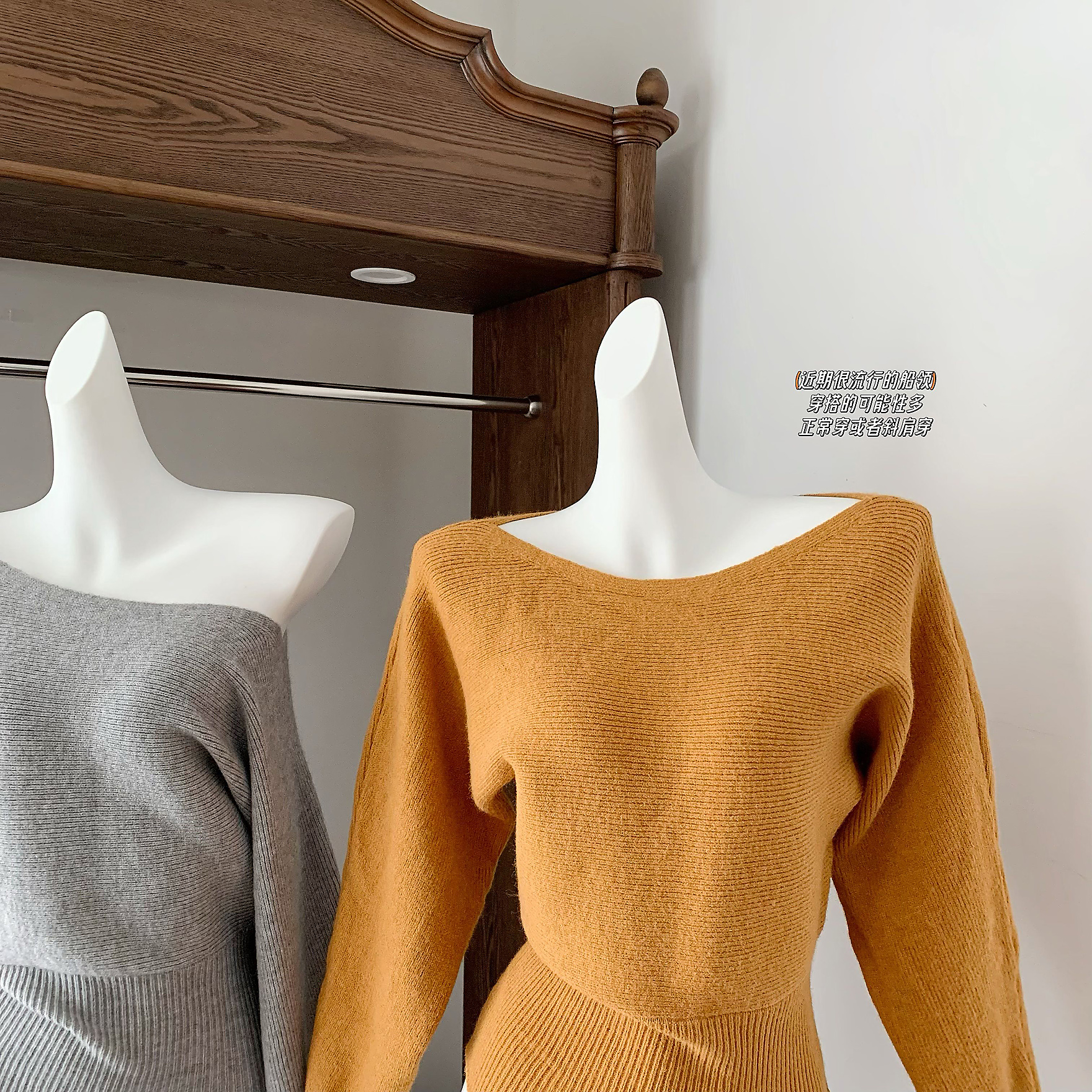 早安樊樊浣熊绒云朵毛衣慵懒氛围感船领收腰绒感针织上衣女冬