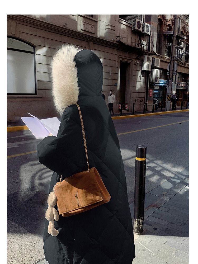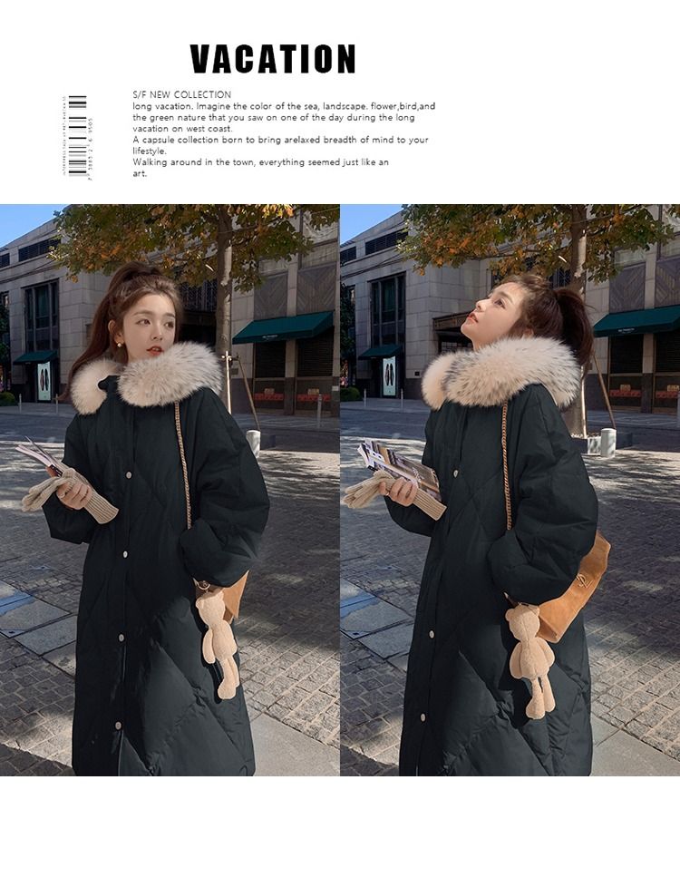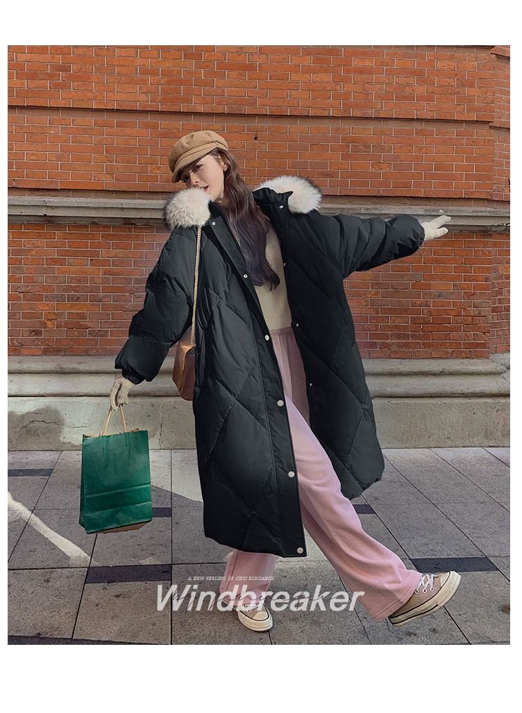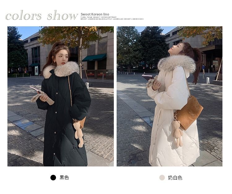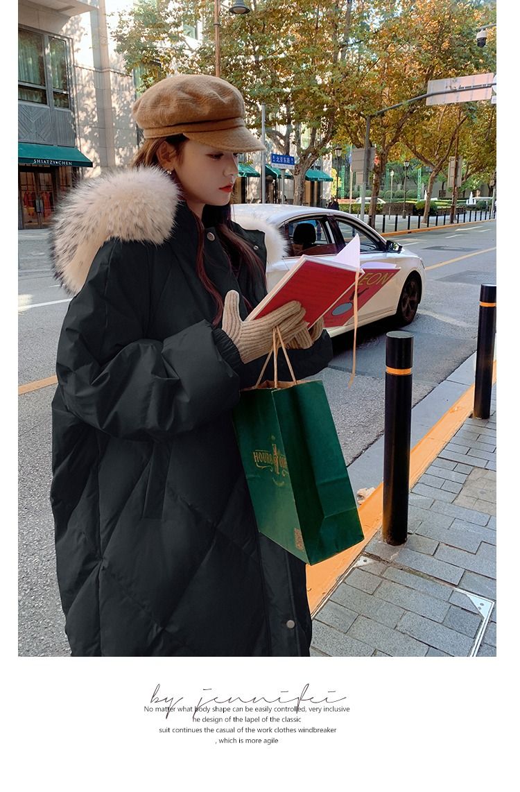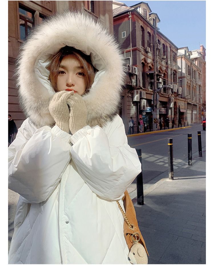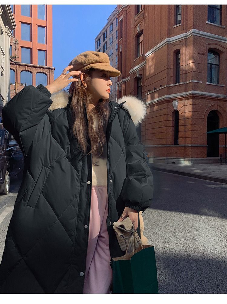 韩系大毛领羽绒棉服女中长款2025新款炸街韩版冬季加厚外套女新款