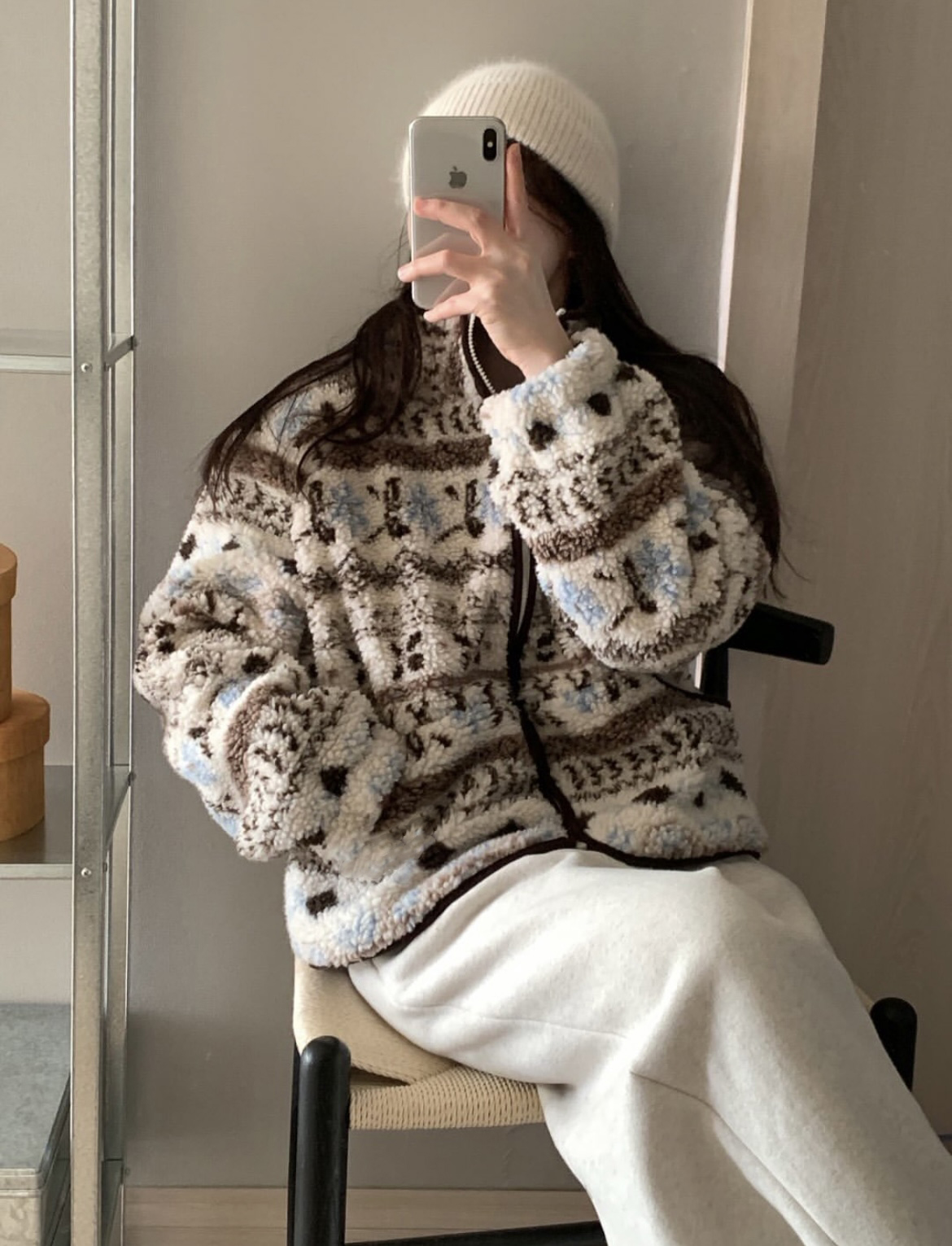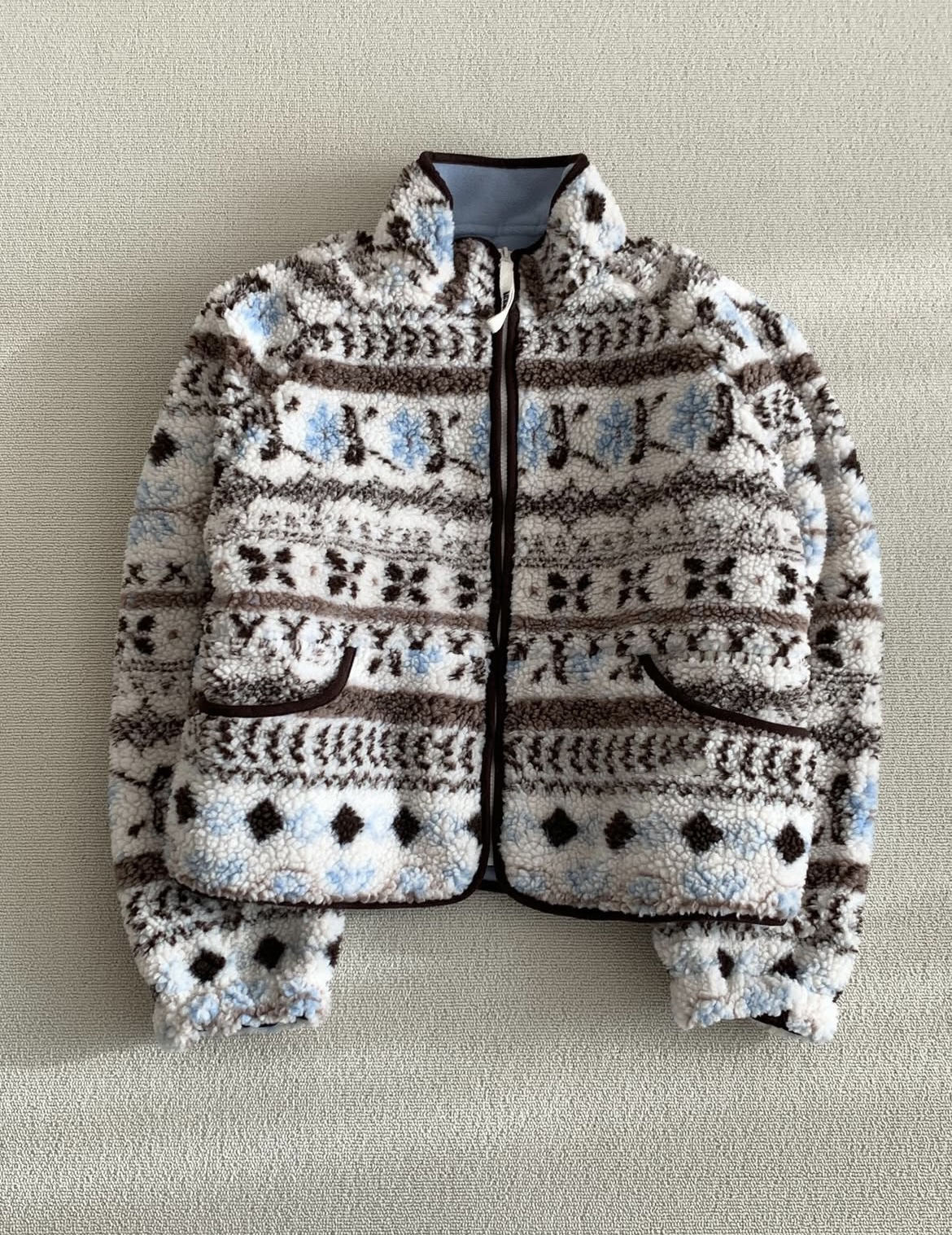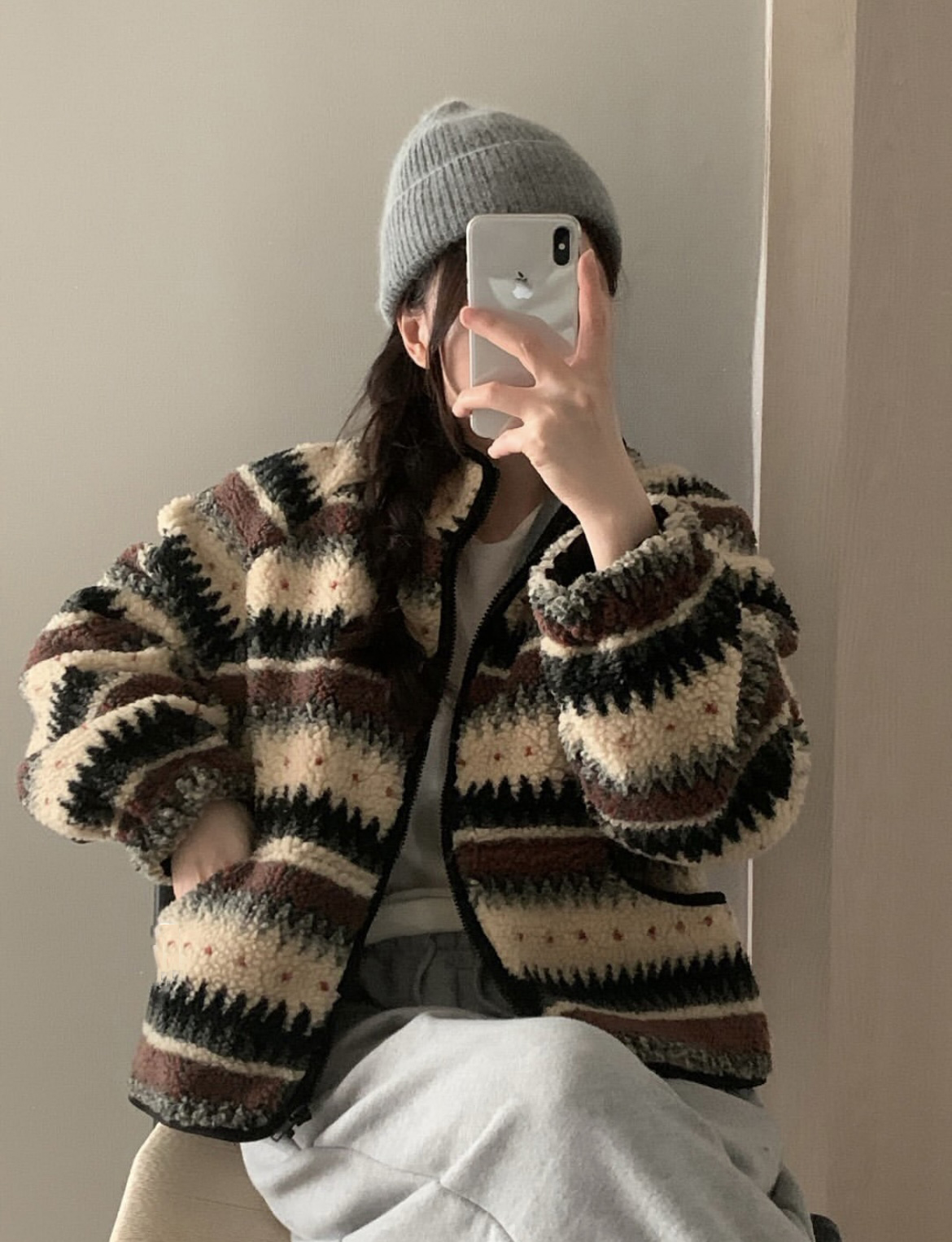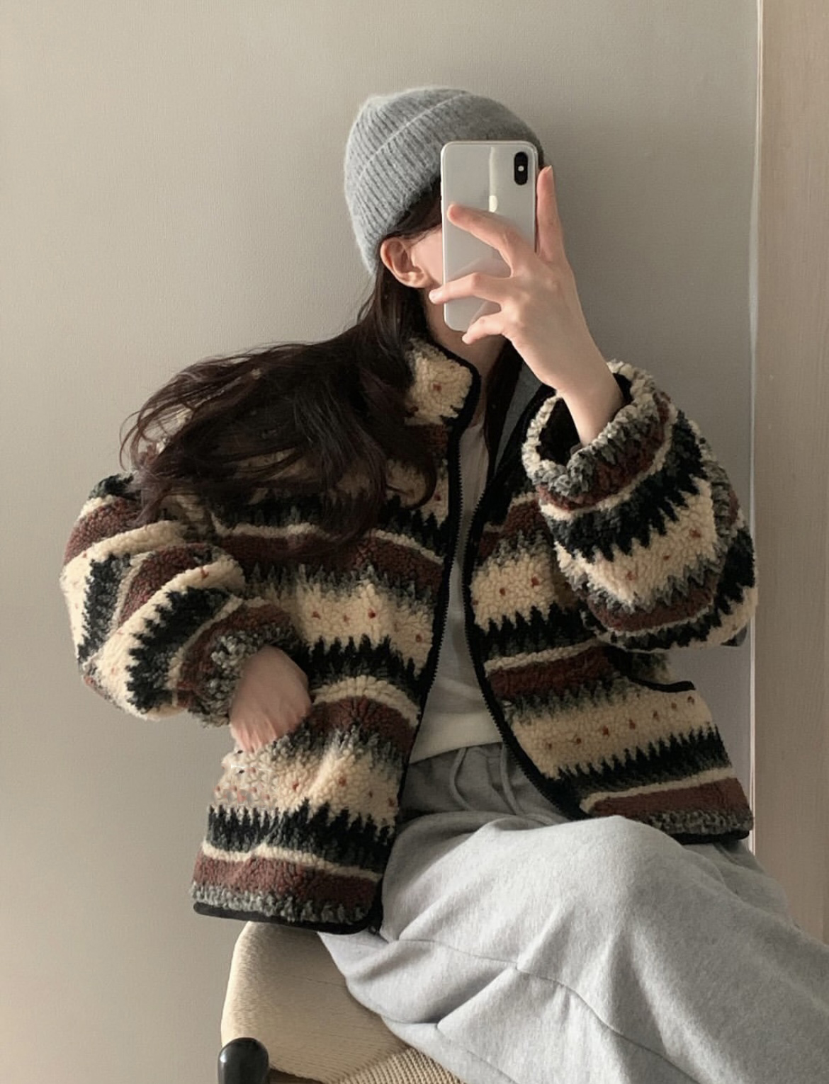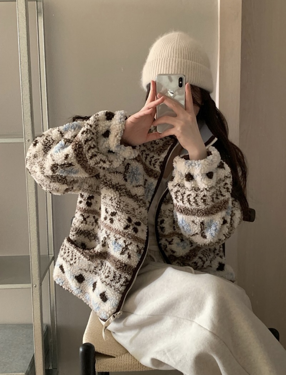 尺寸已更新冬日氛围复古费尔岛北欧风立领羊羔毛摇粒绒保暖短外套