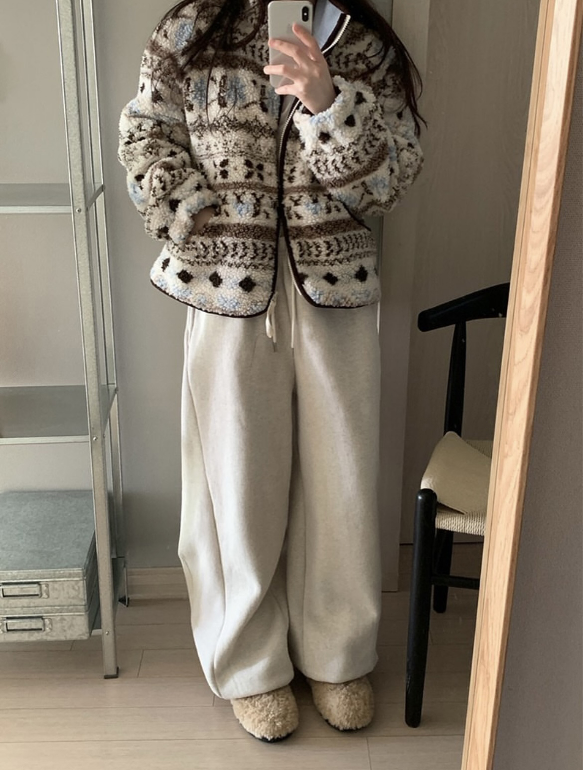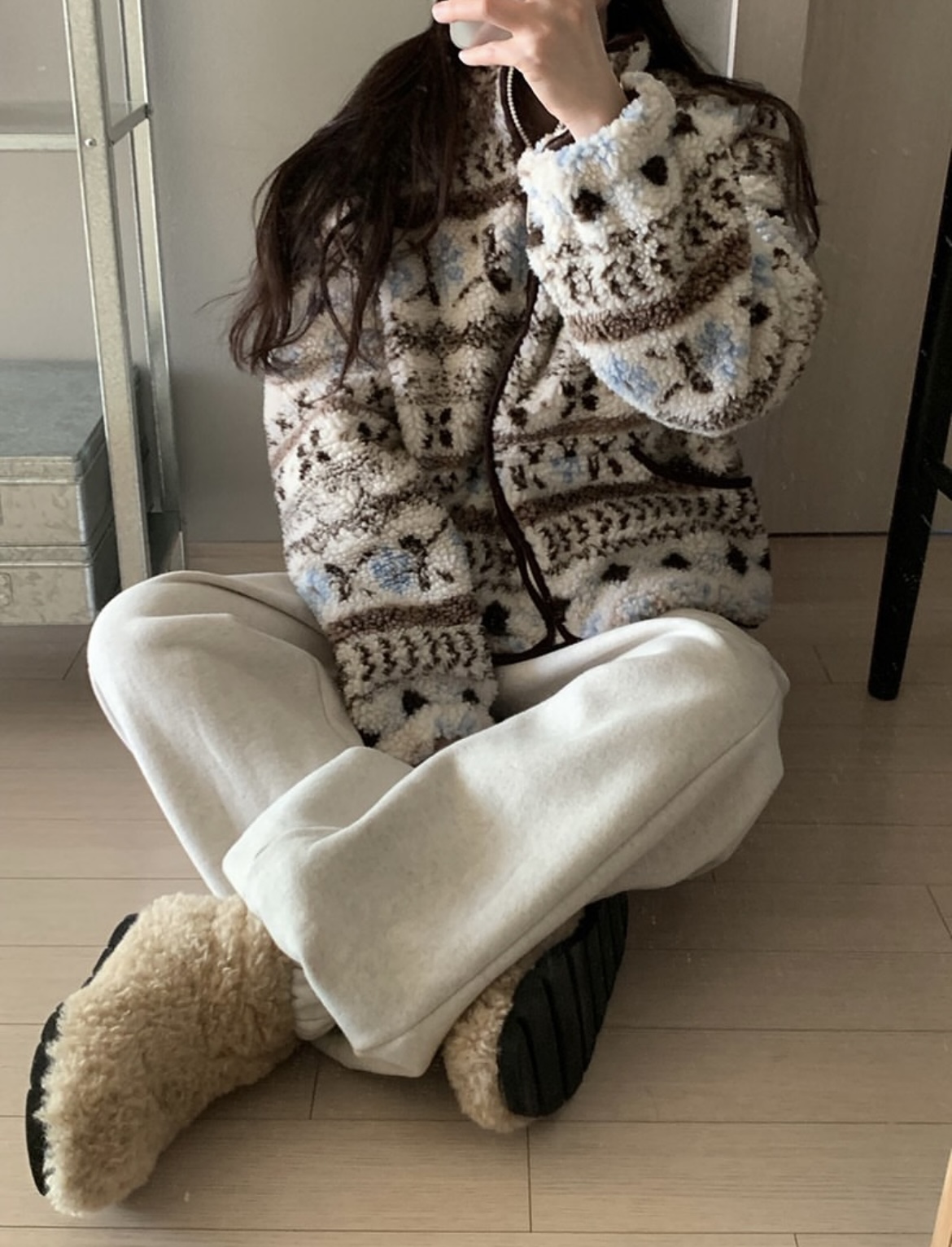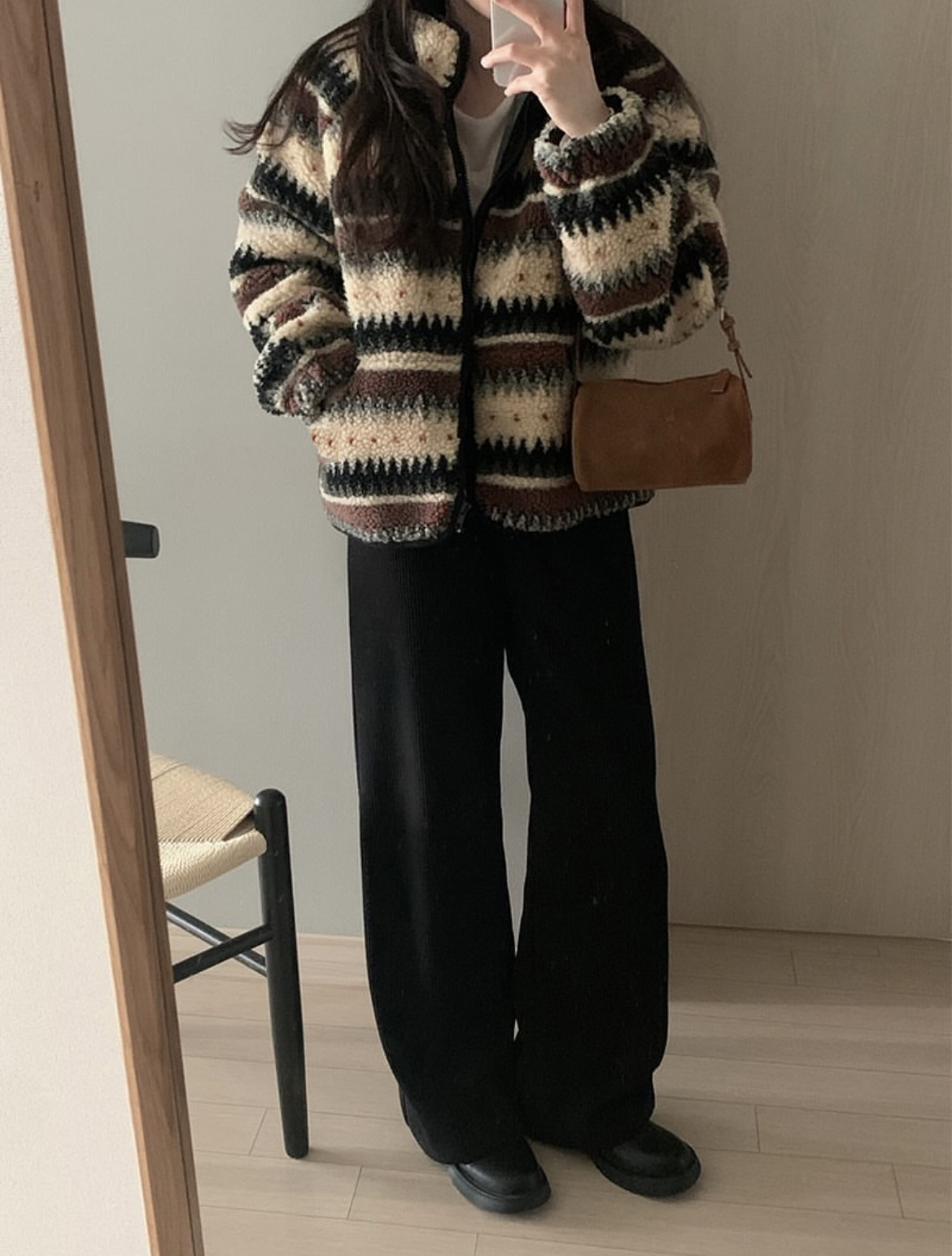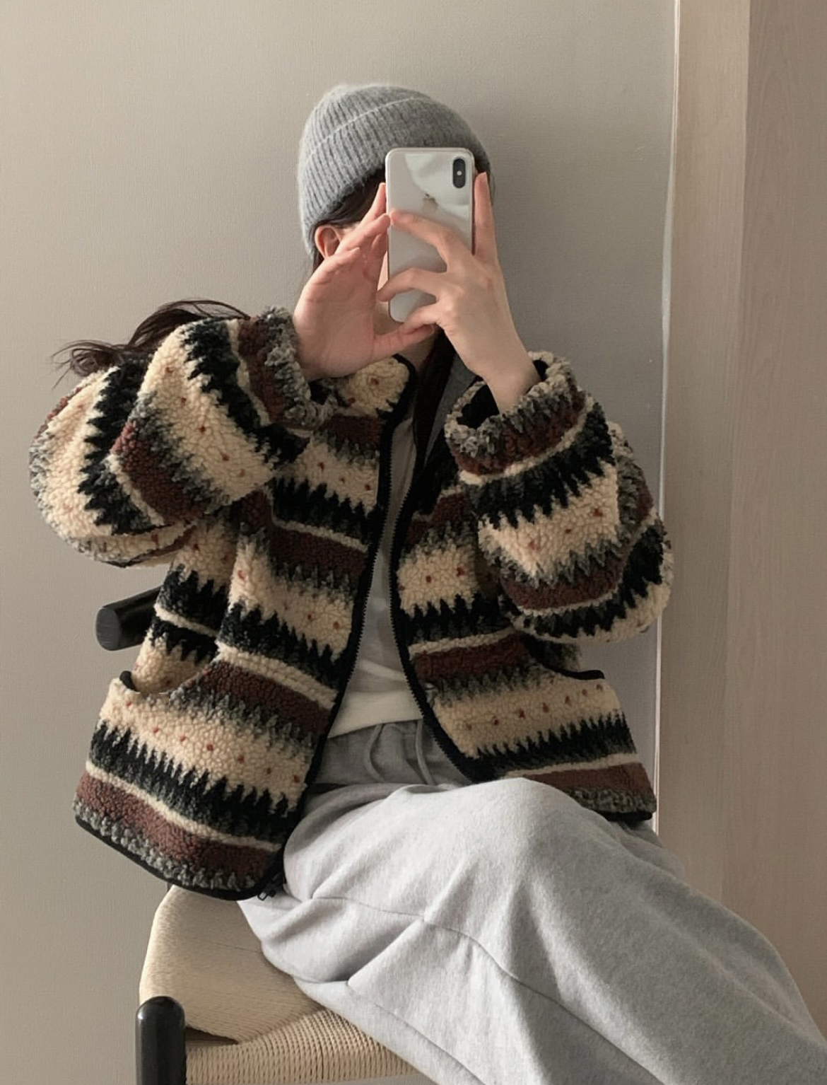 尺寸已更新冬日氛围复古费尔岛北欧风立领羊羔毛摇粒绒保暖短外套