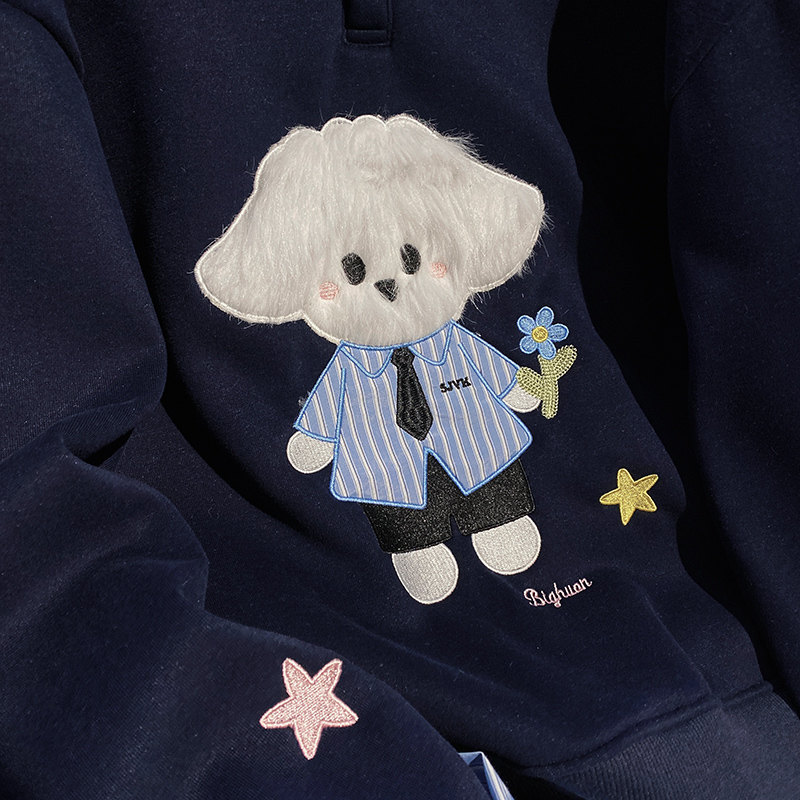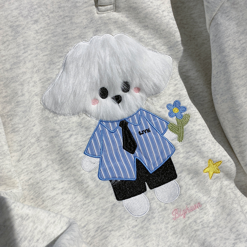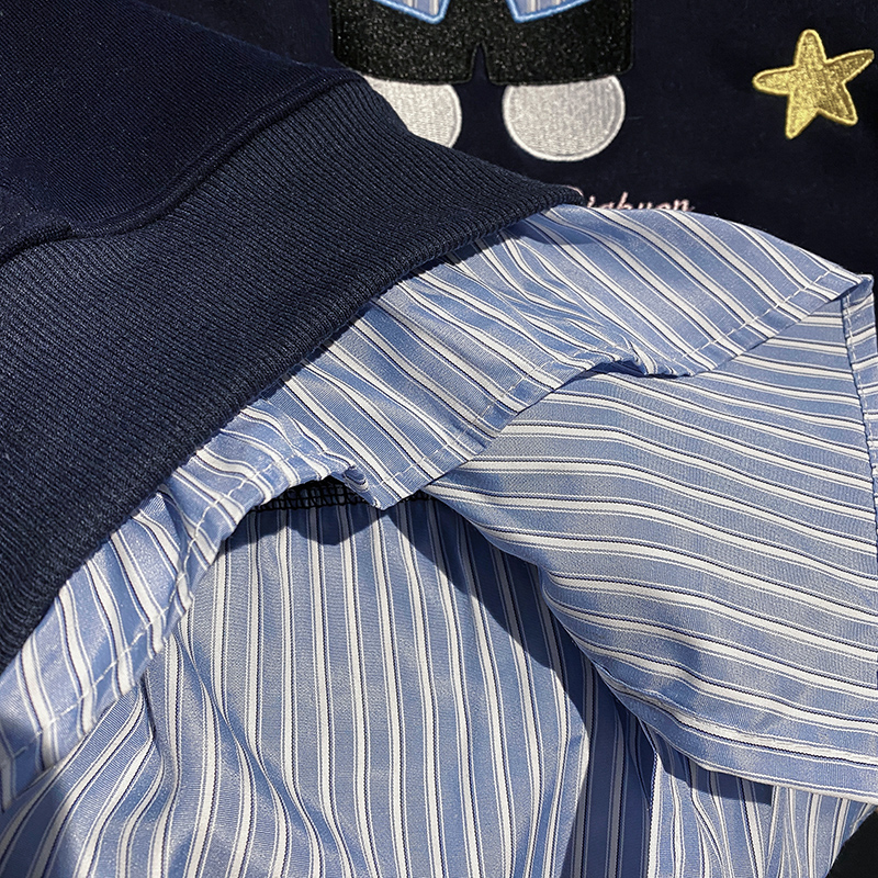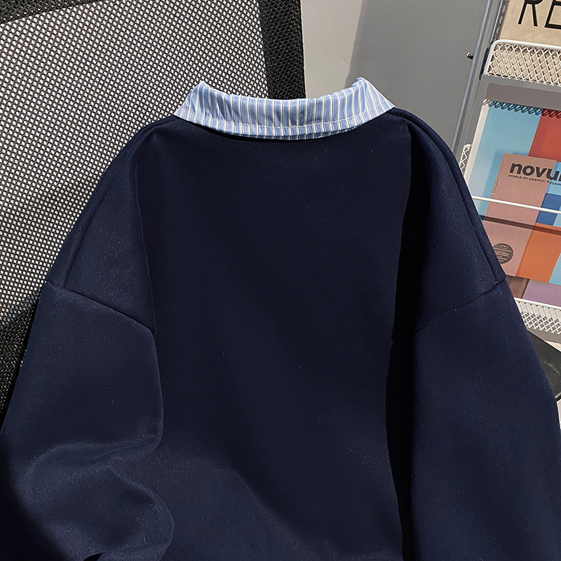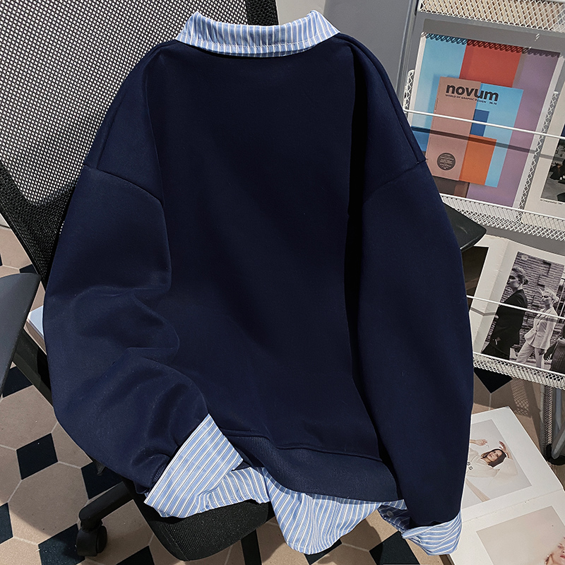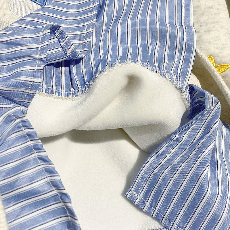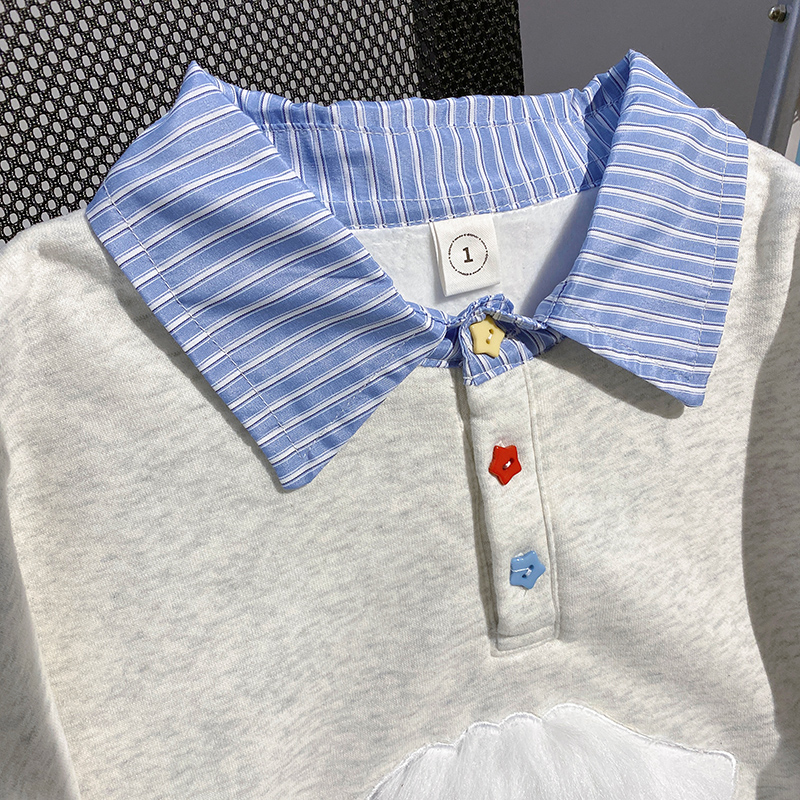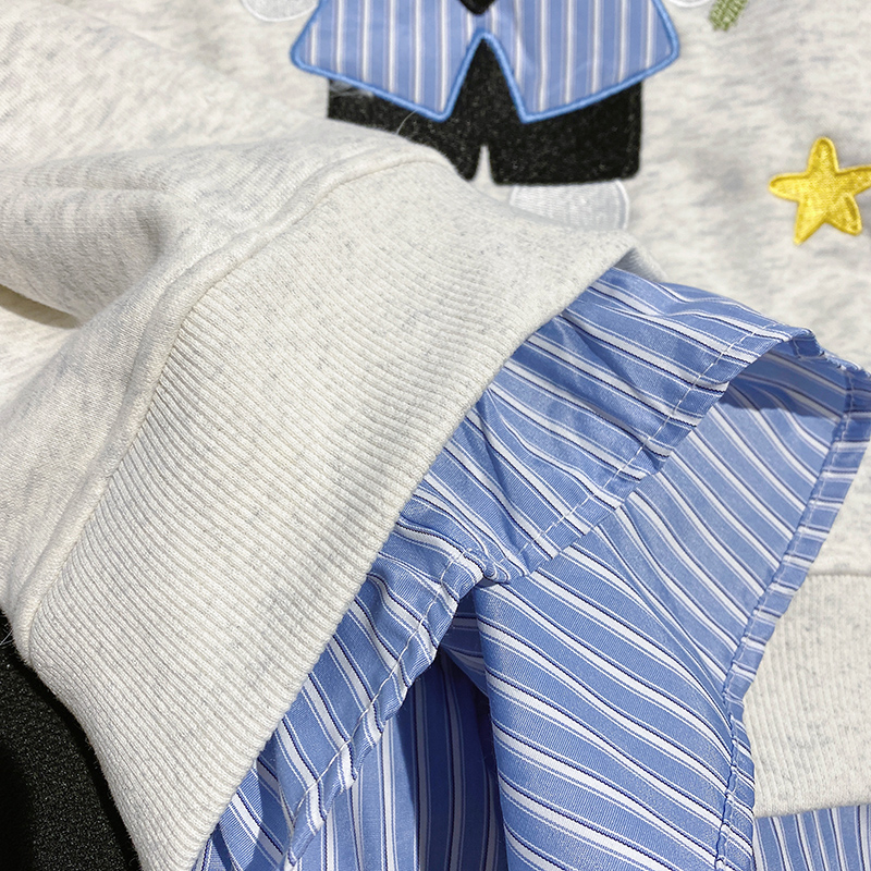 实拍实价假两件卫衣女新款加绒秋冬卡通刺绣花宽松POLO领保暖上衣
