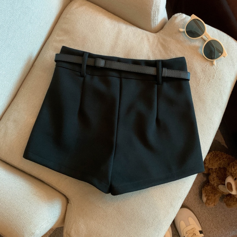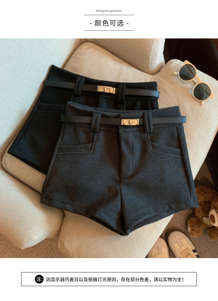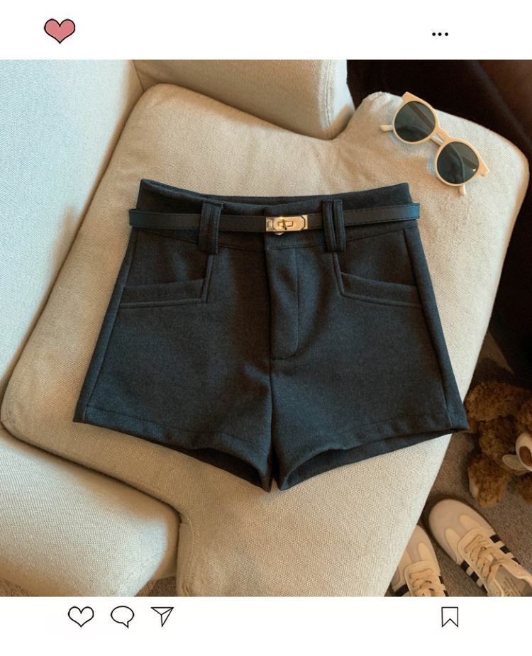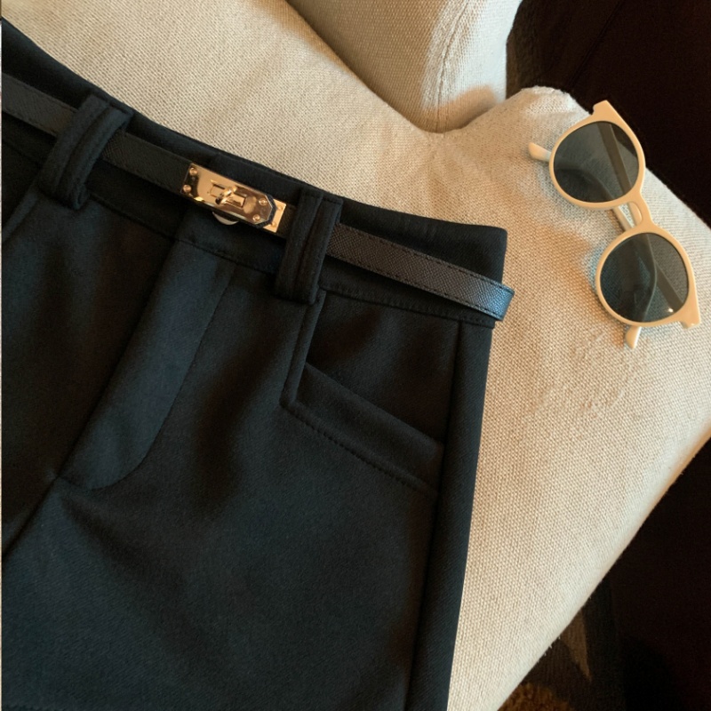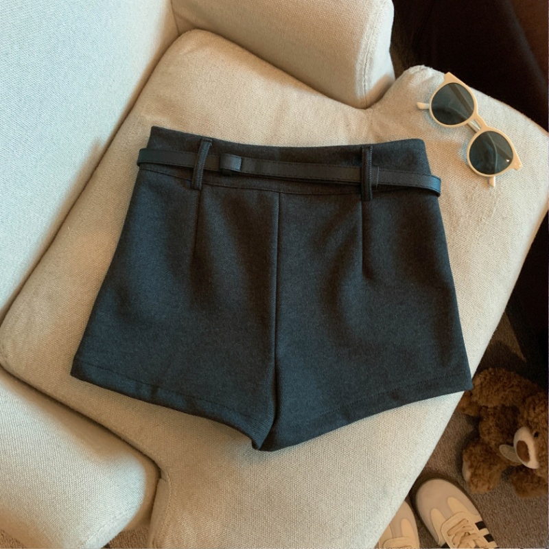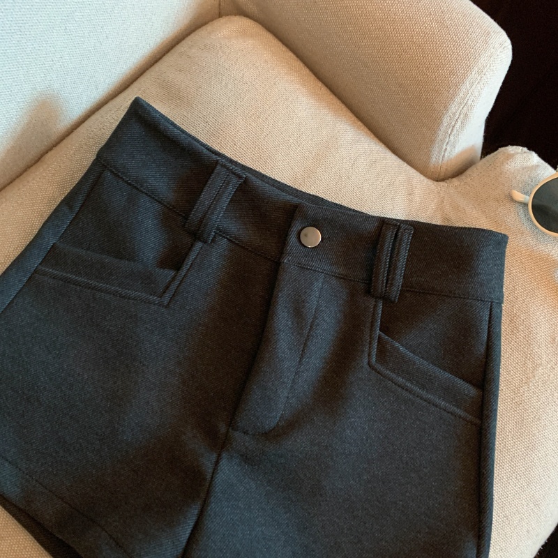 复古气质辣妹西装短裤女秋冬新款高腰显瘦休闲靴裤灰色百搭阔腿裤