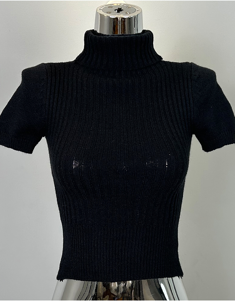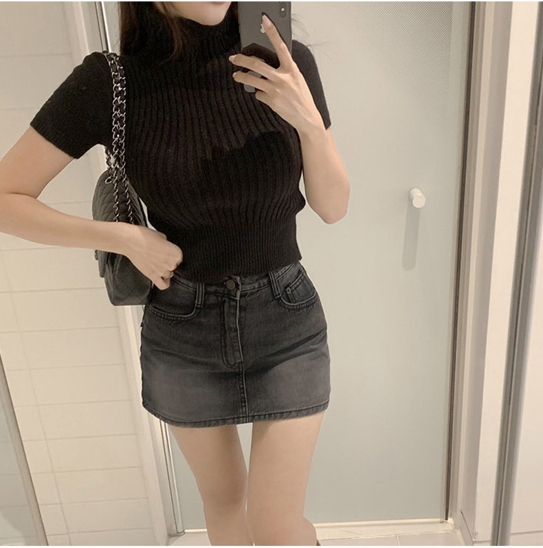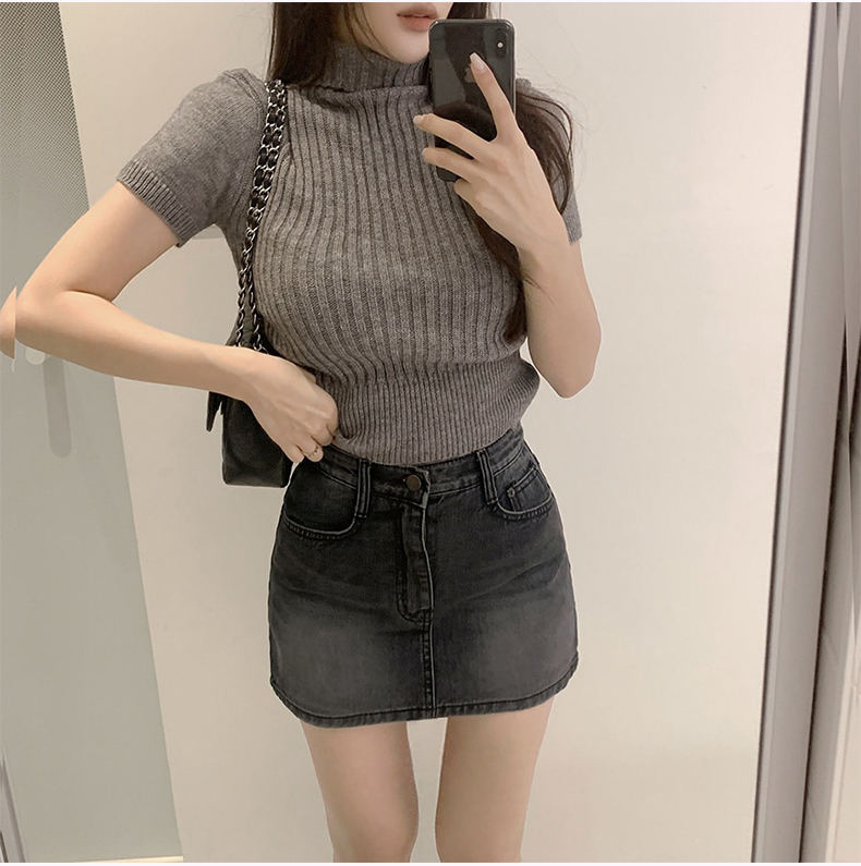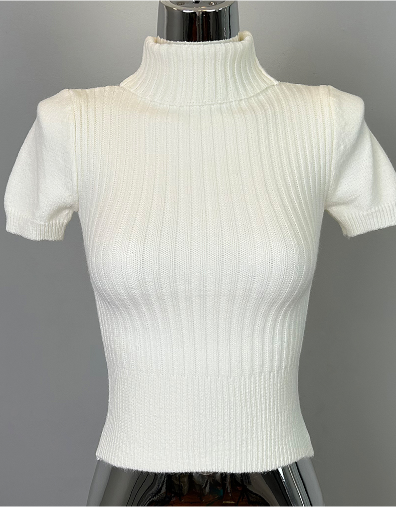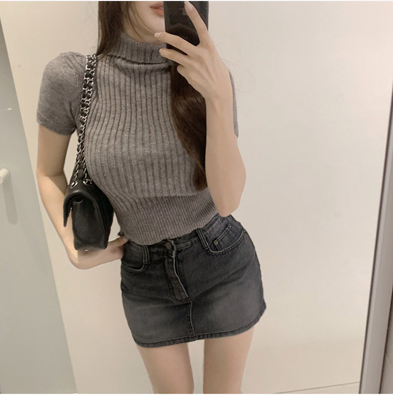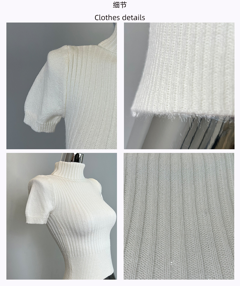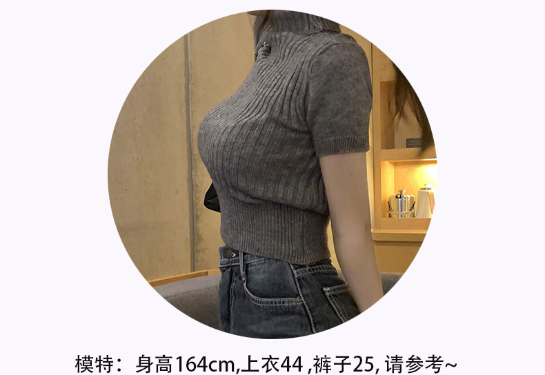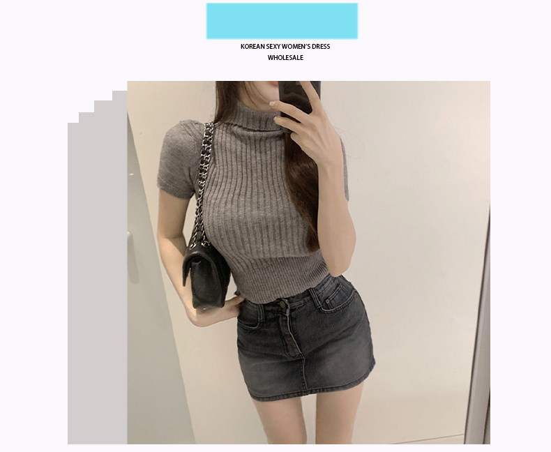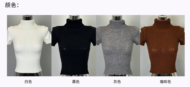 韩国东大门新品 韩系时尚高领纯色百搭套头短袖针织衫