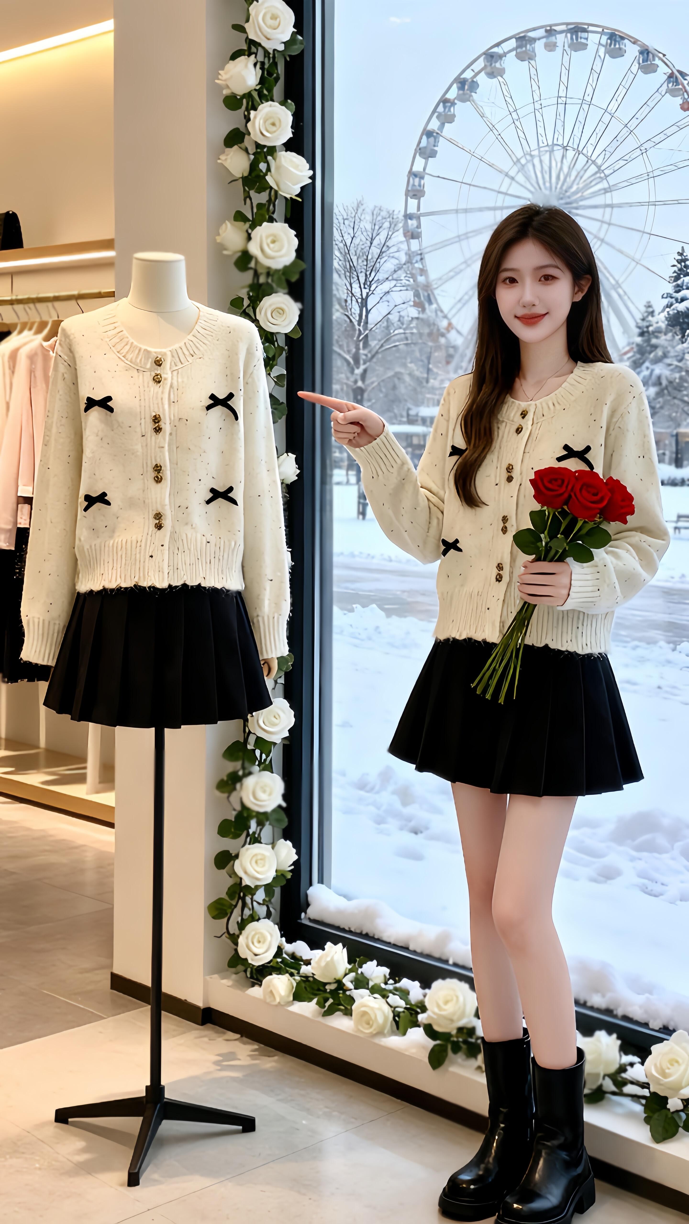 冬日ootd美式复古穿搭配一整套巨好看的超火韩系毛衣两件套装裤女