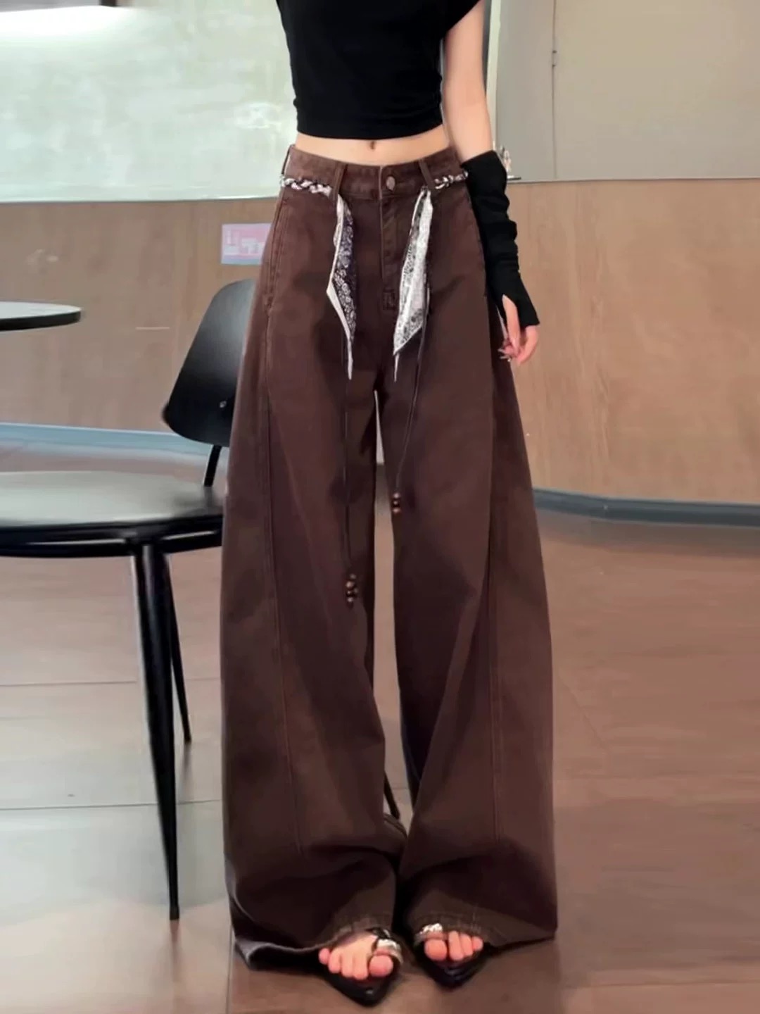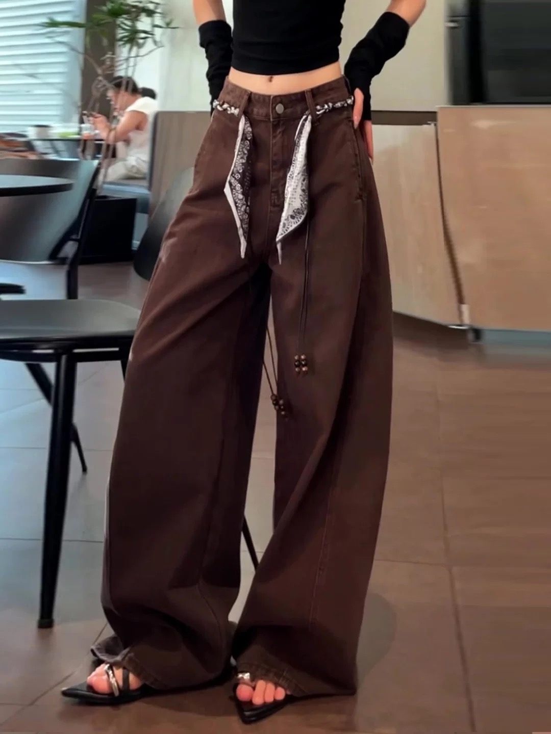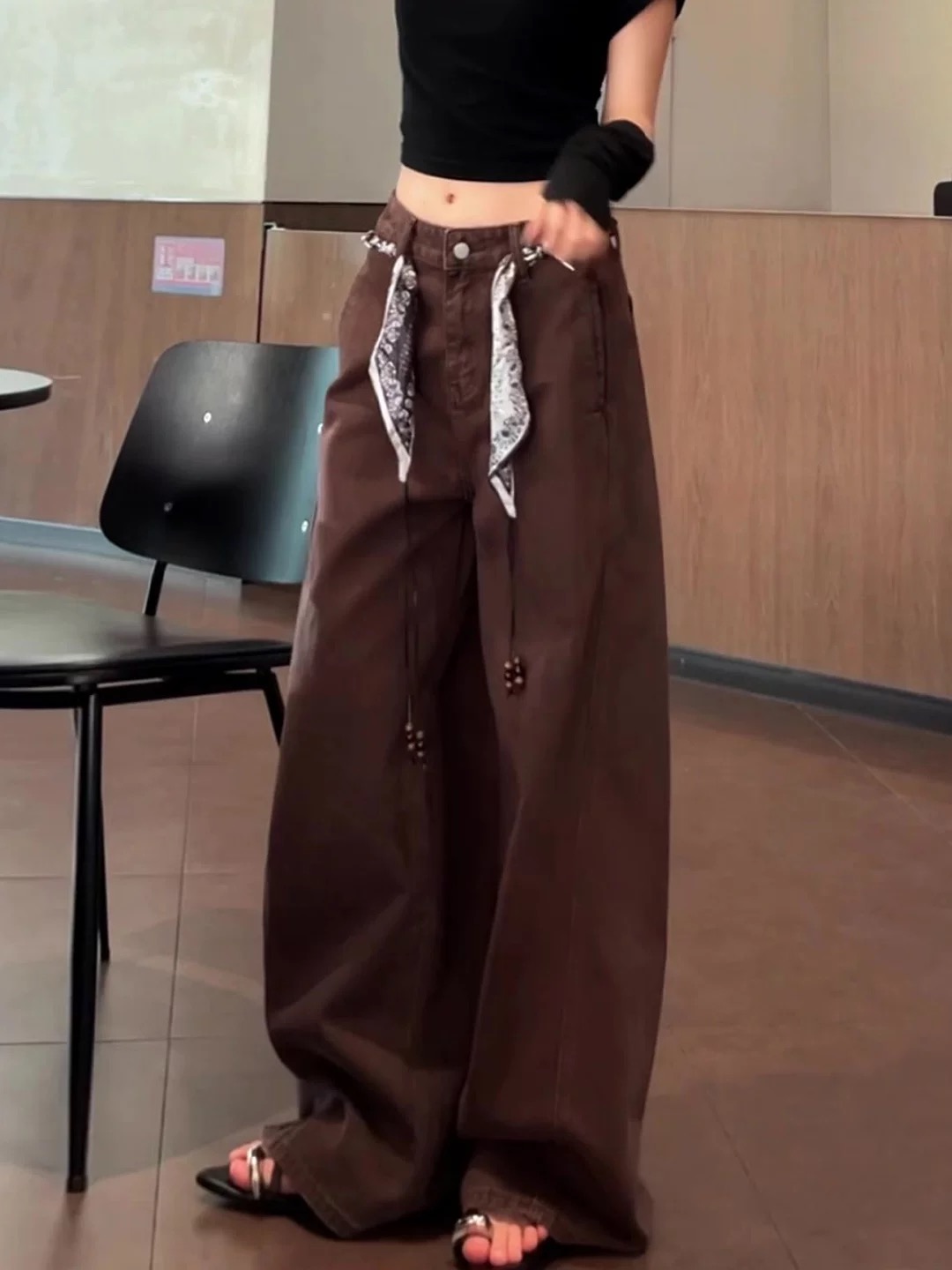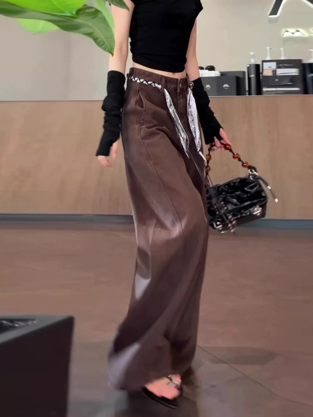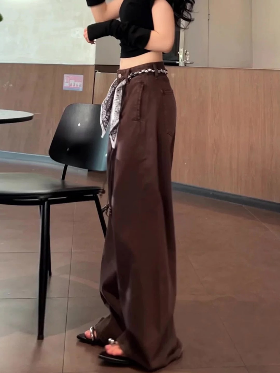 美式复古巧克力色阔腿休闲裤女秋季新款松弛感高腰宽松显瘦直筒裤
