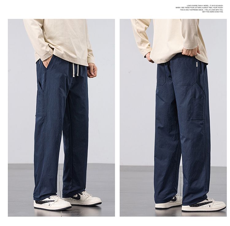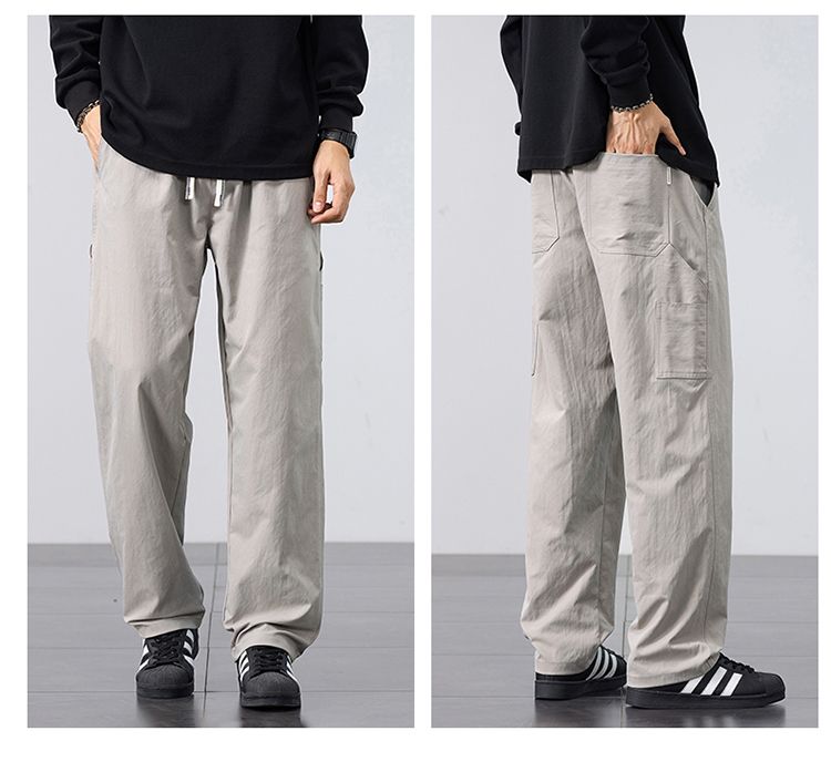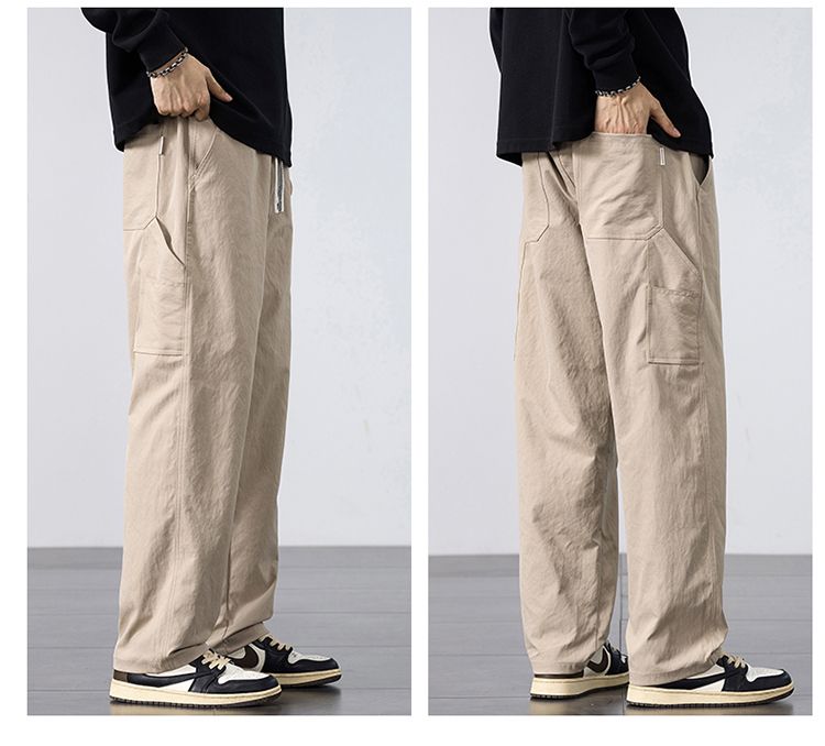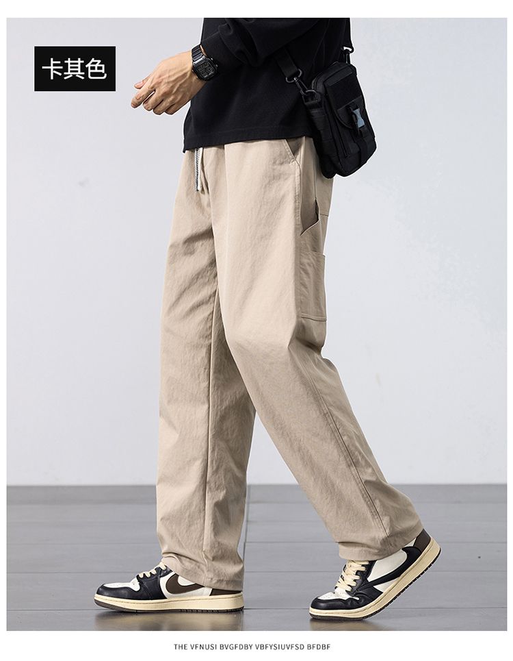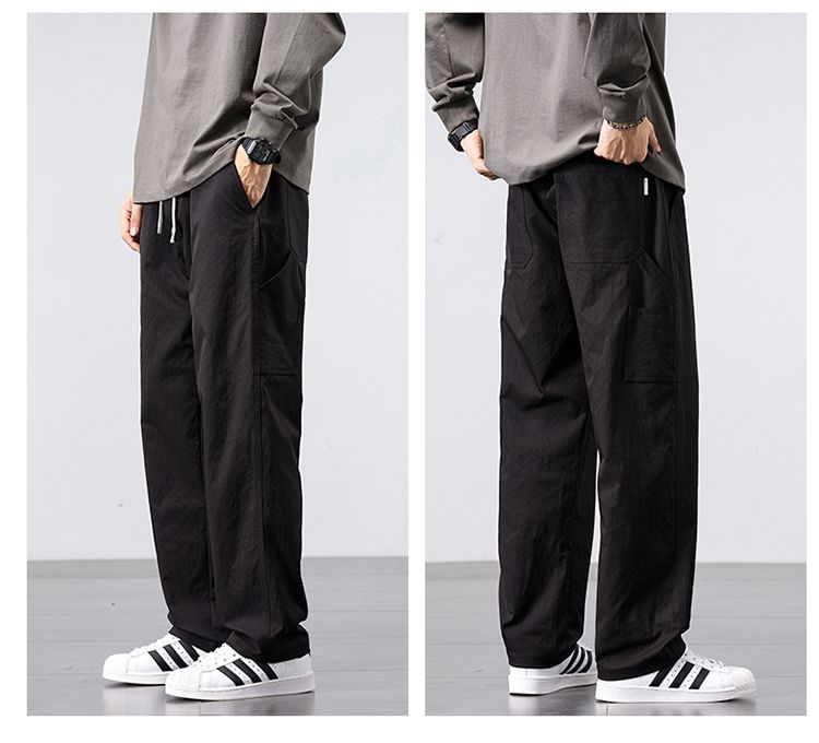 实拍2025秋季新款工装休闲裤男复古大口袋伞兵裤宽松直筒松紧腰