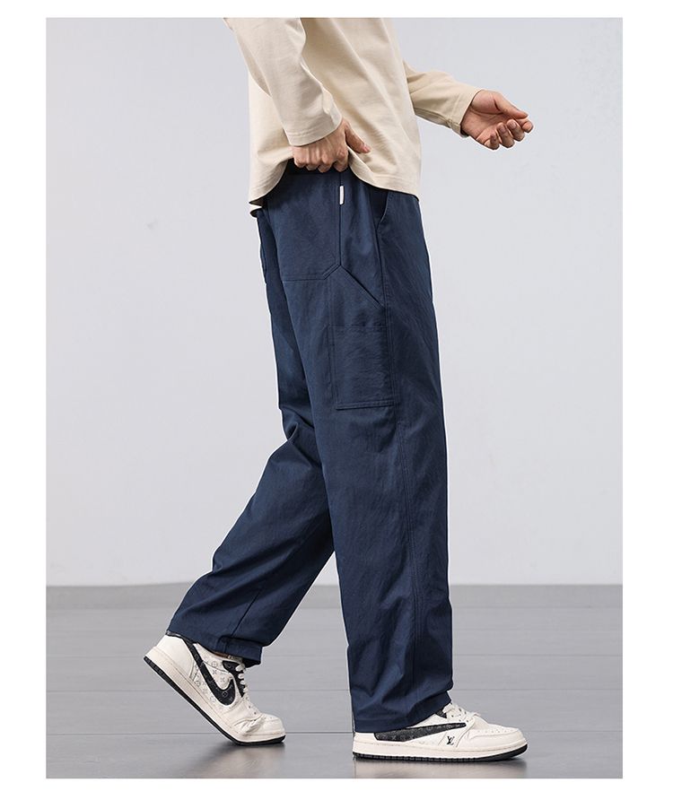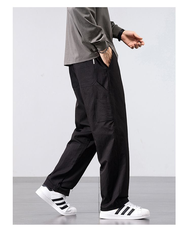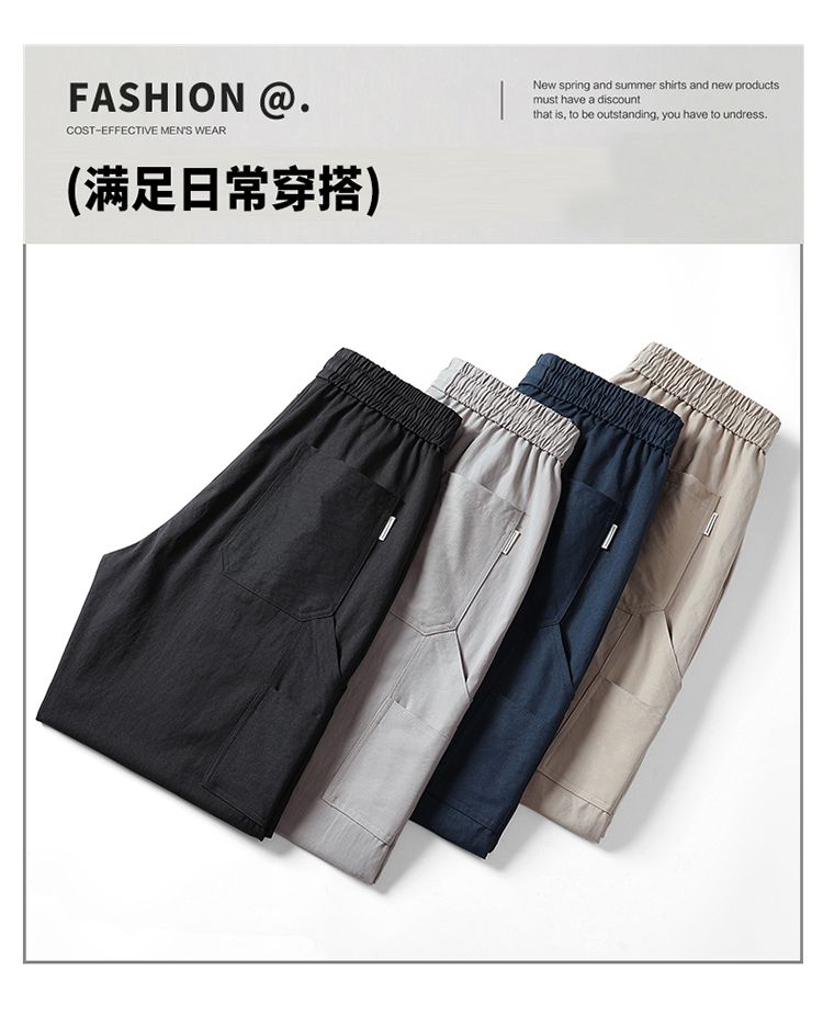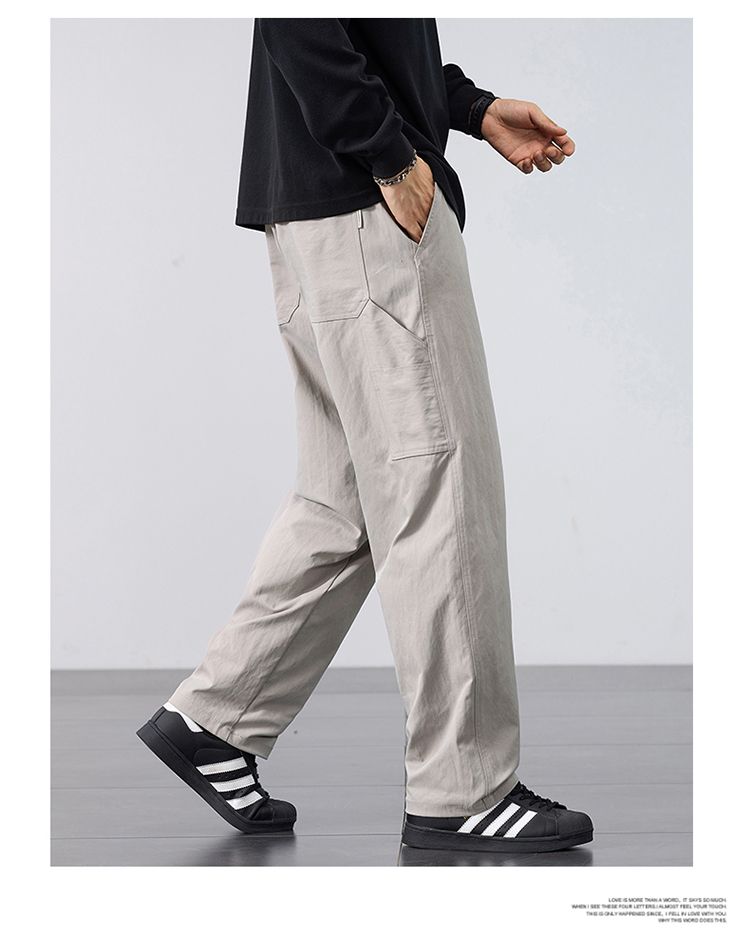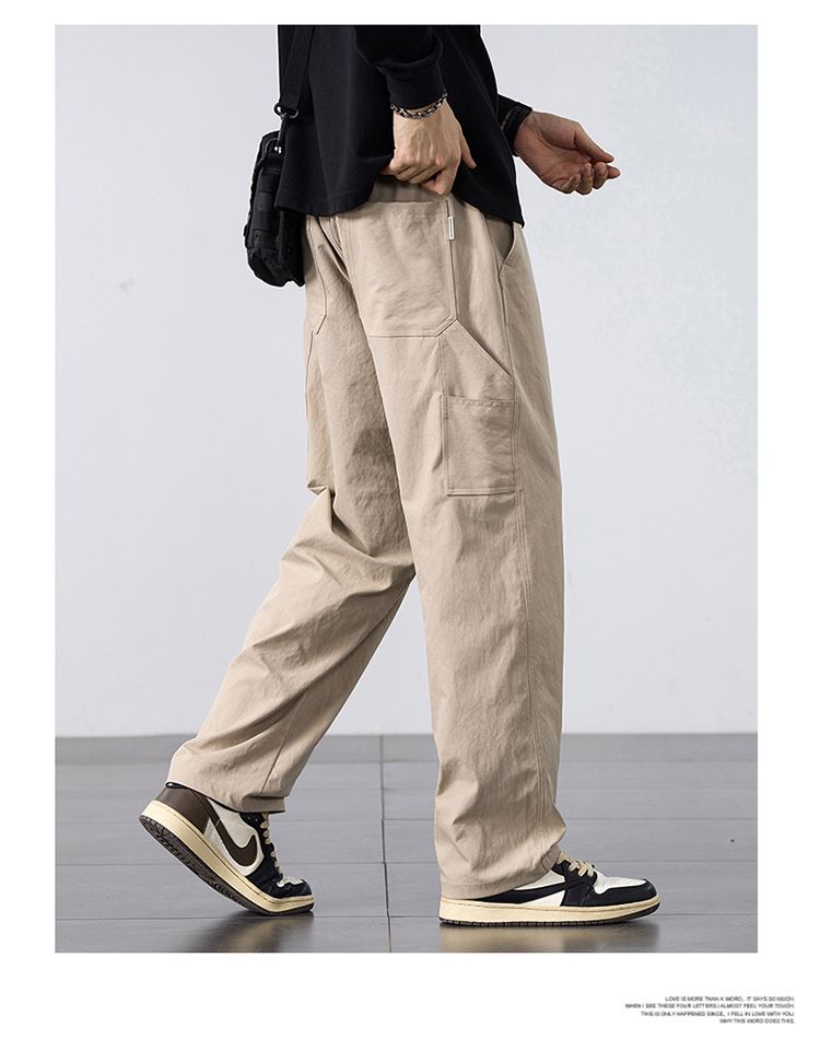 实拍2025秋季新款工装休闲裤男复古大口袋伞兵裤宽松直筒松紧腰
