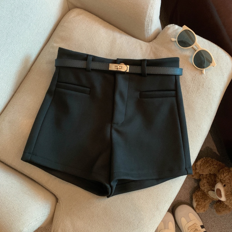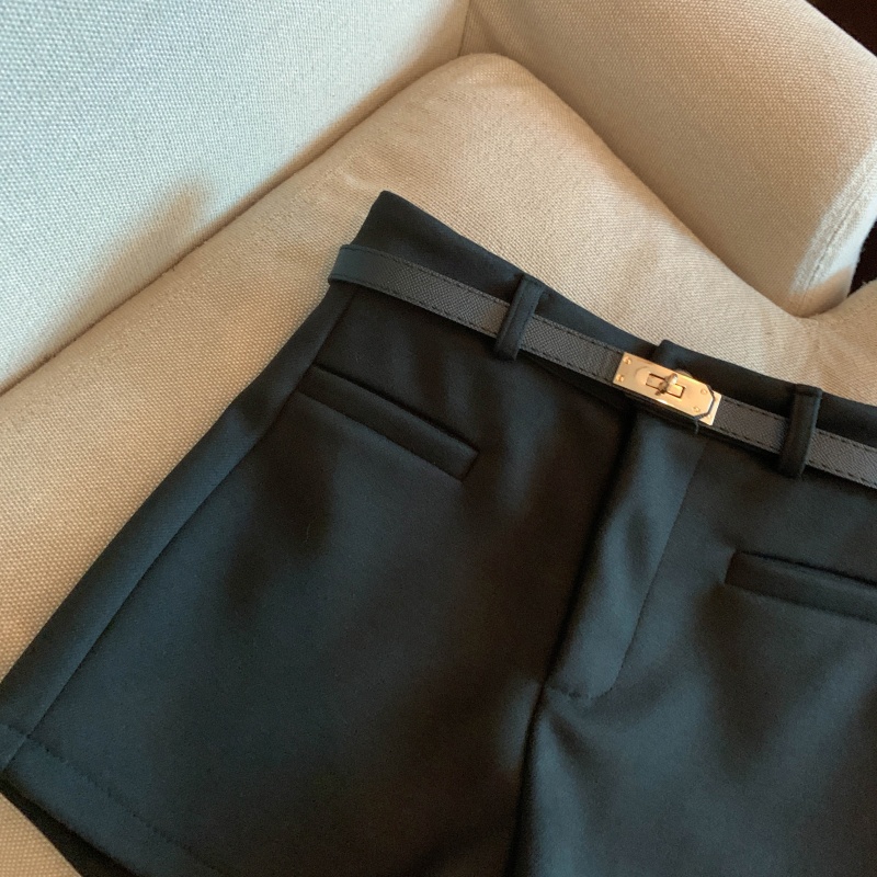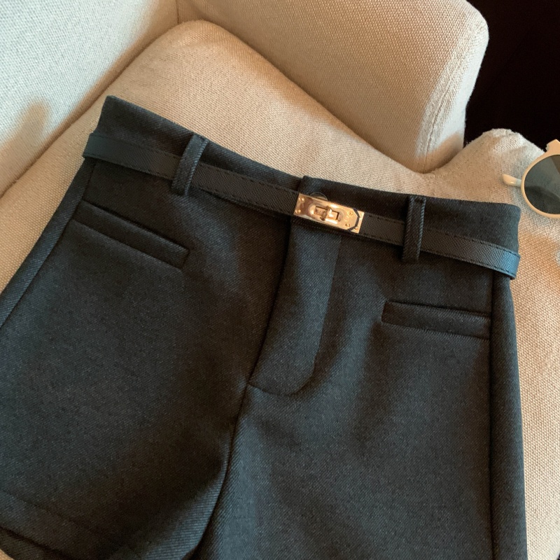 小香风灰色外穿毛呢直筒短裤女秋冬百搭高腰a字阔腿裤小个子靴裤