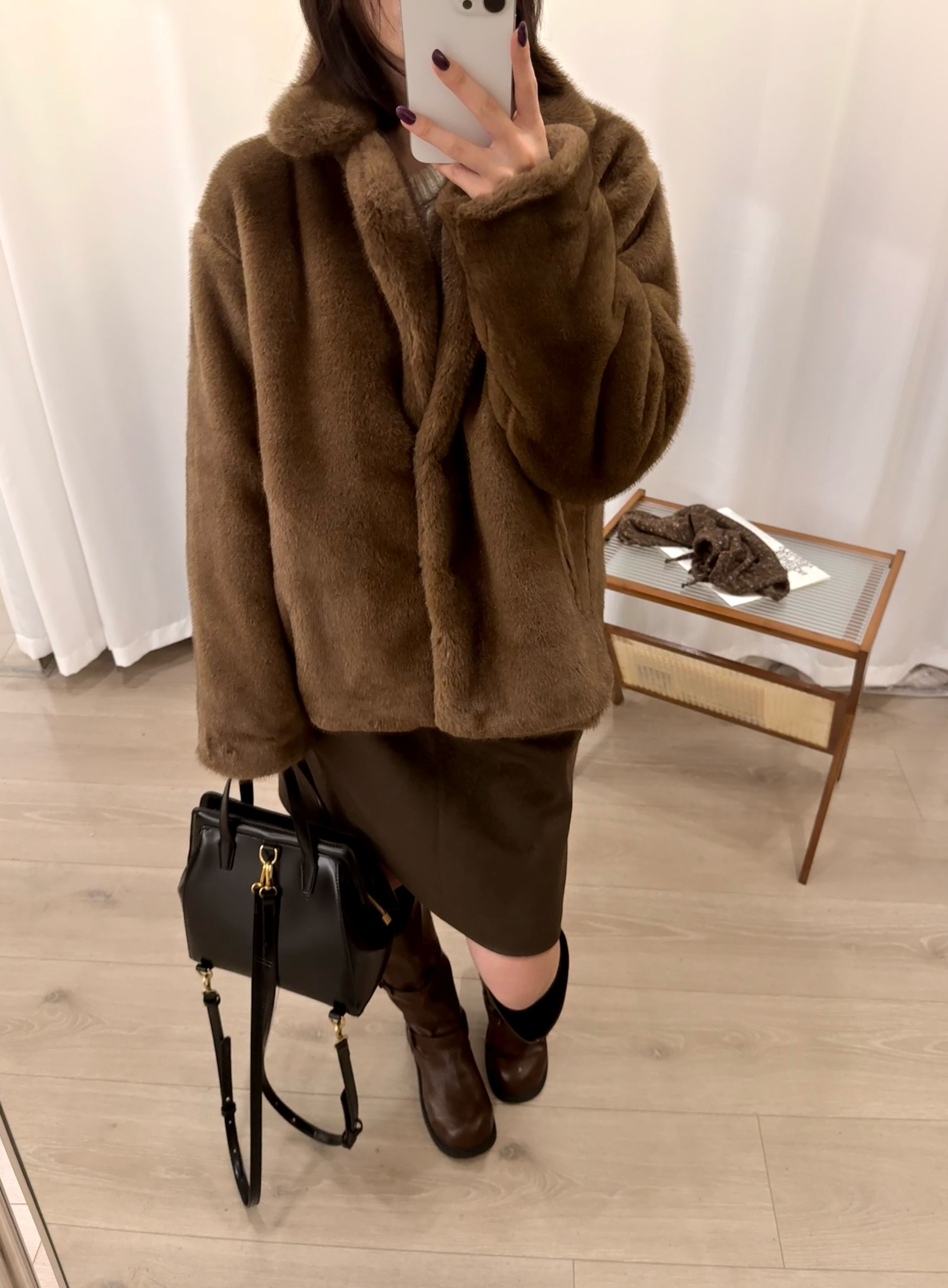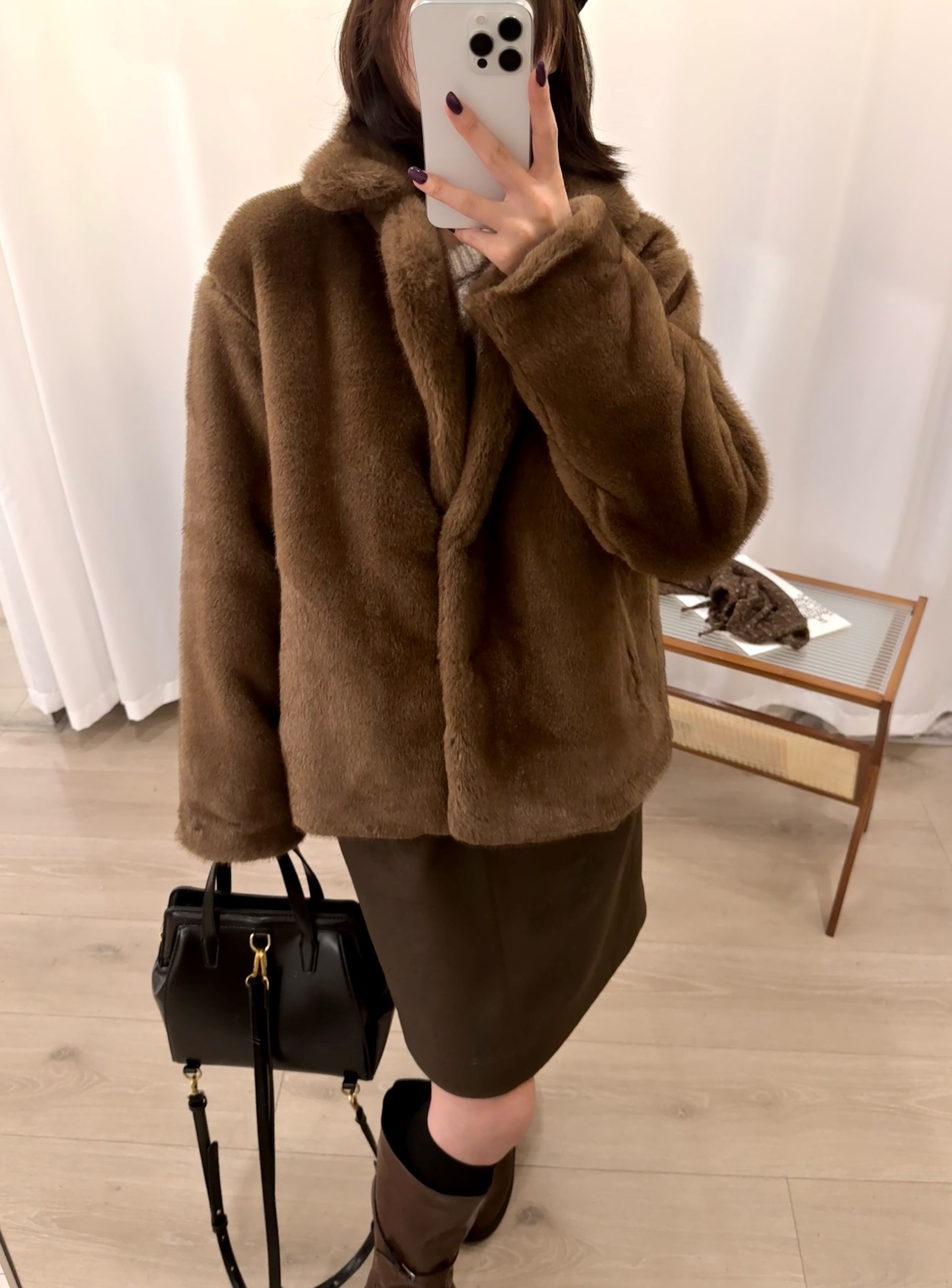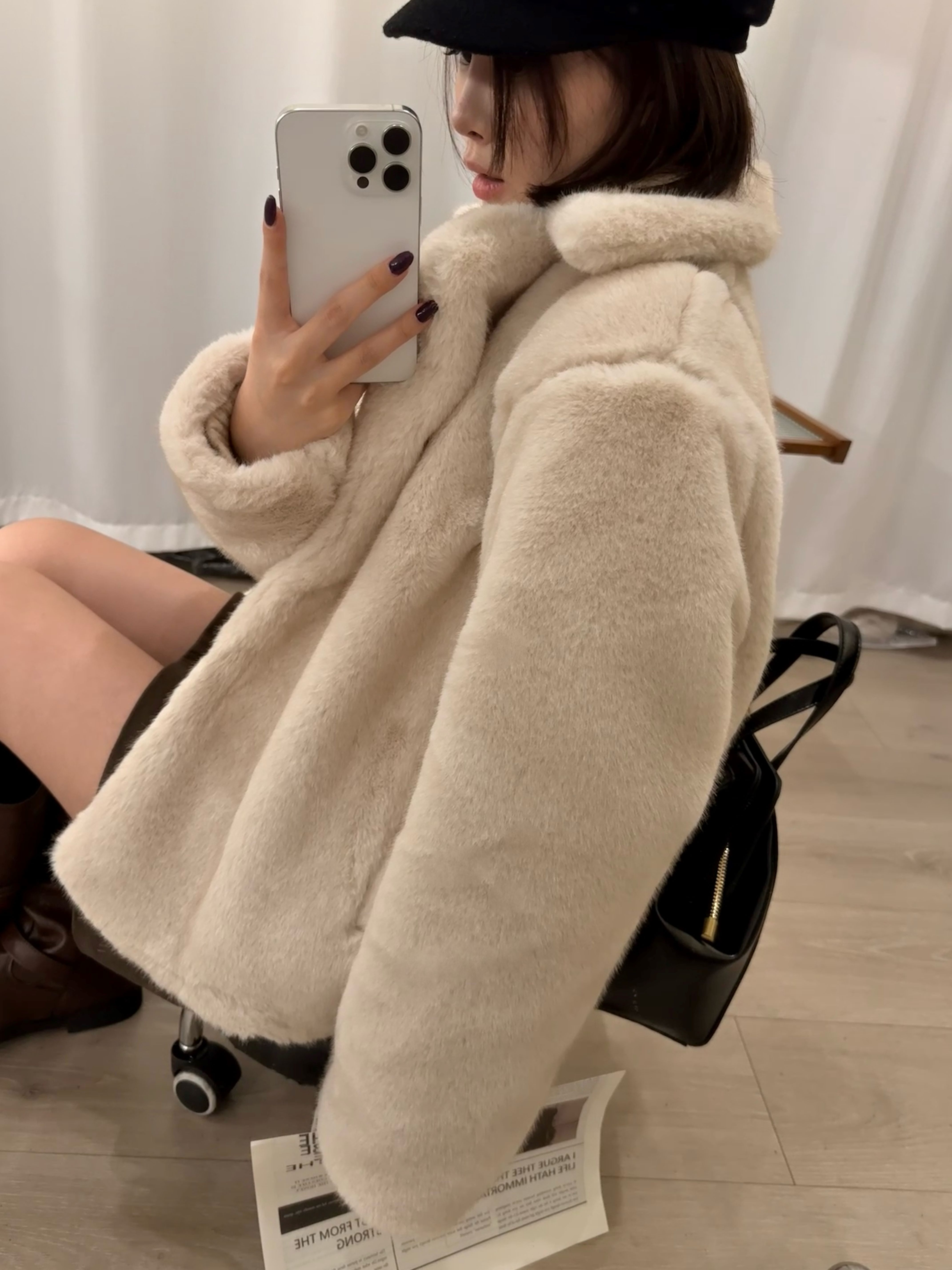 短款复古米绒貂环保皮草冬季翻领宽松毛毛外套
