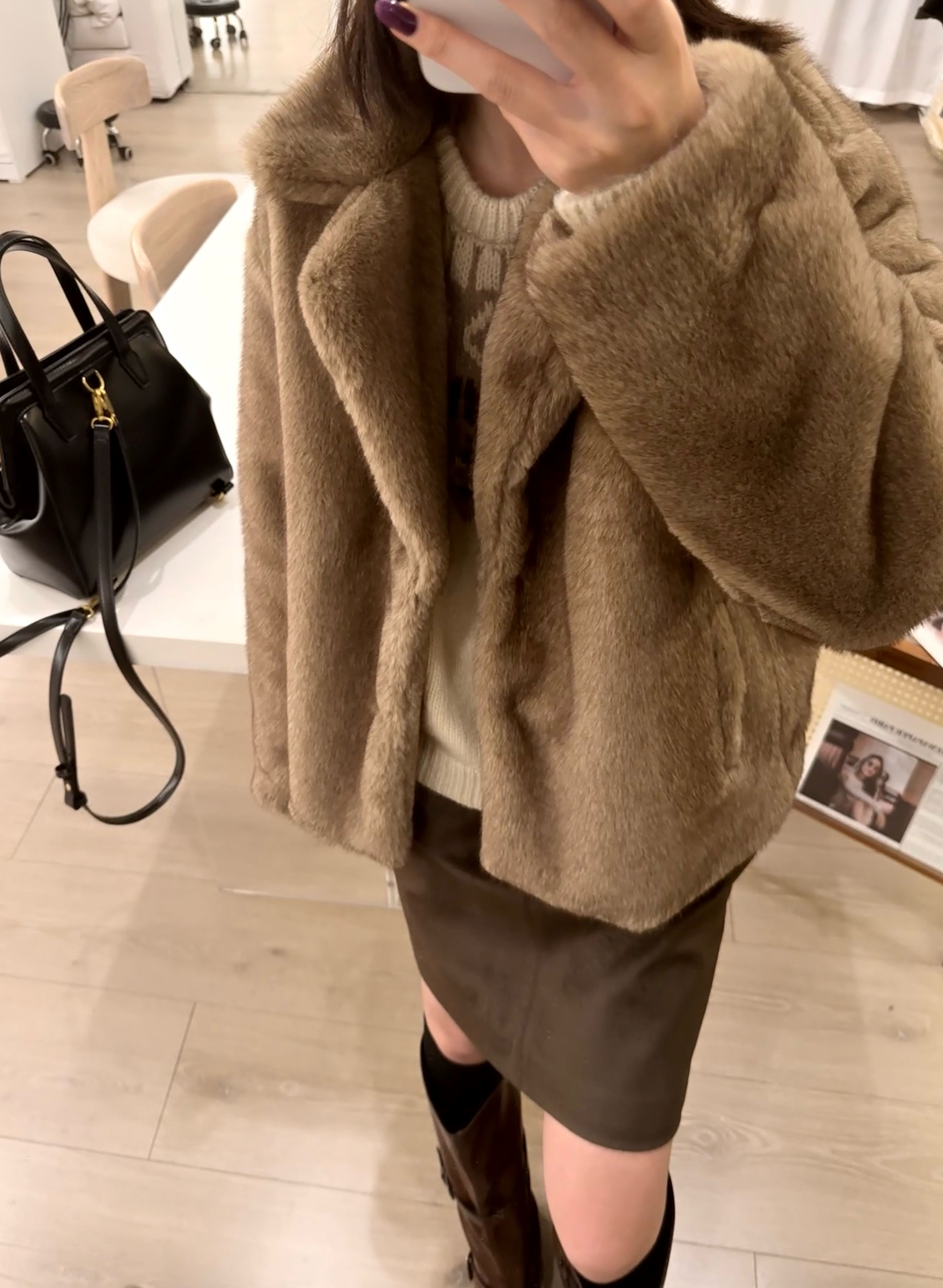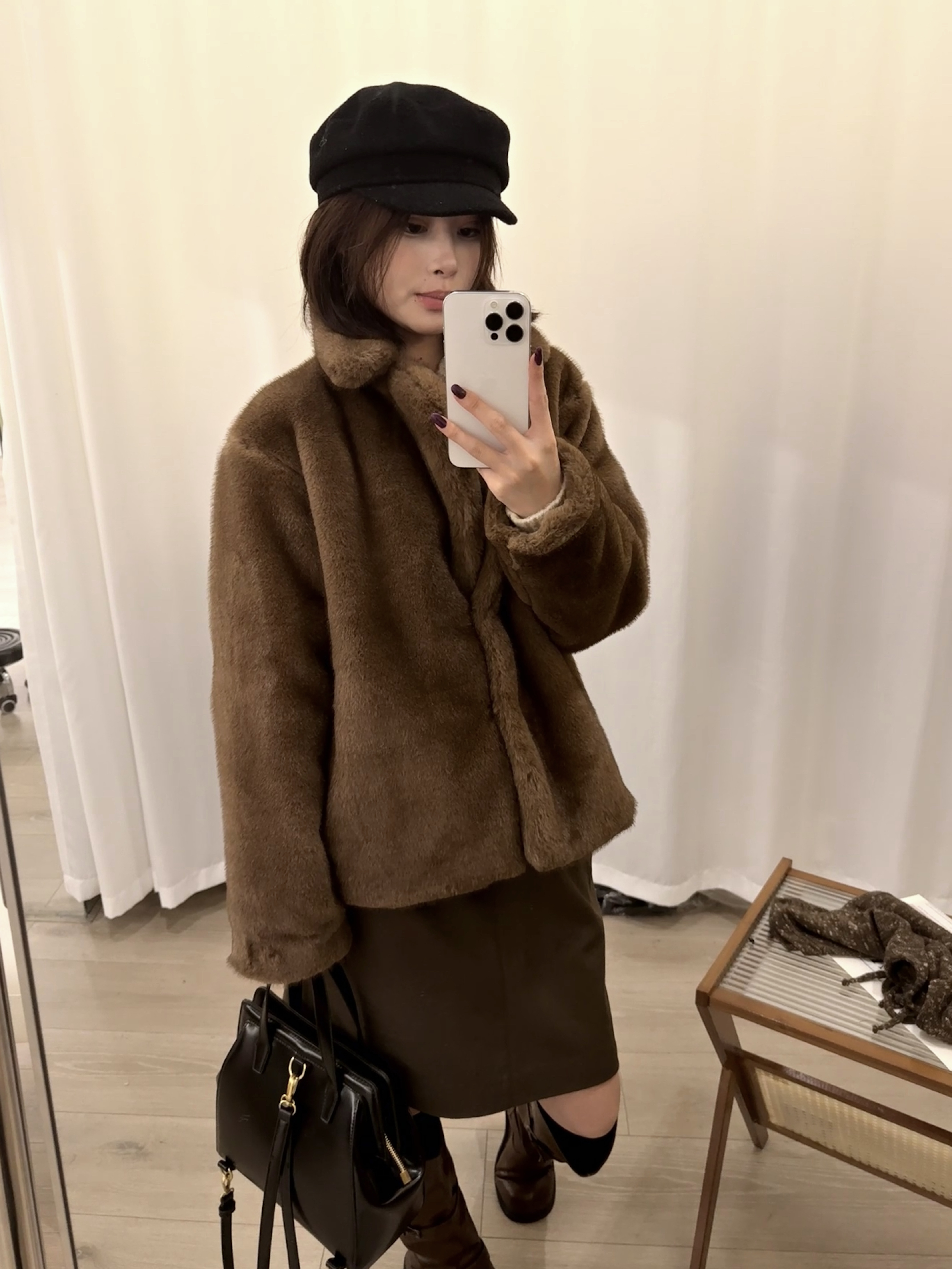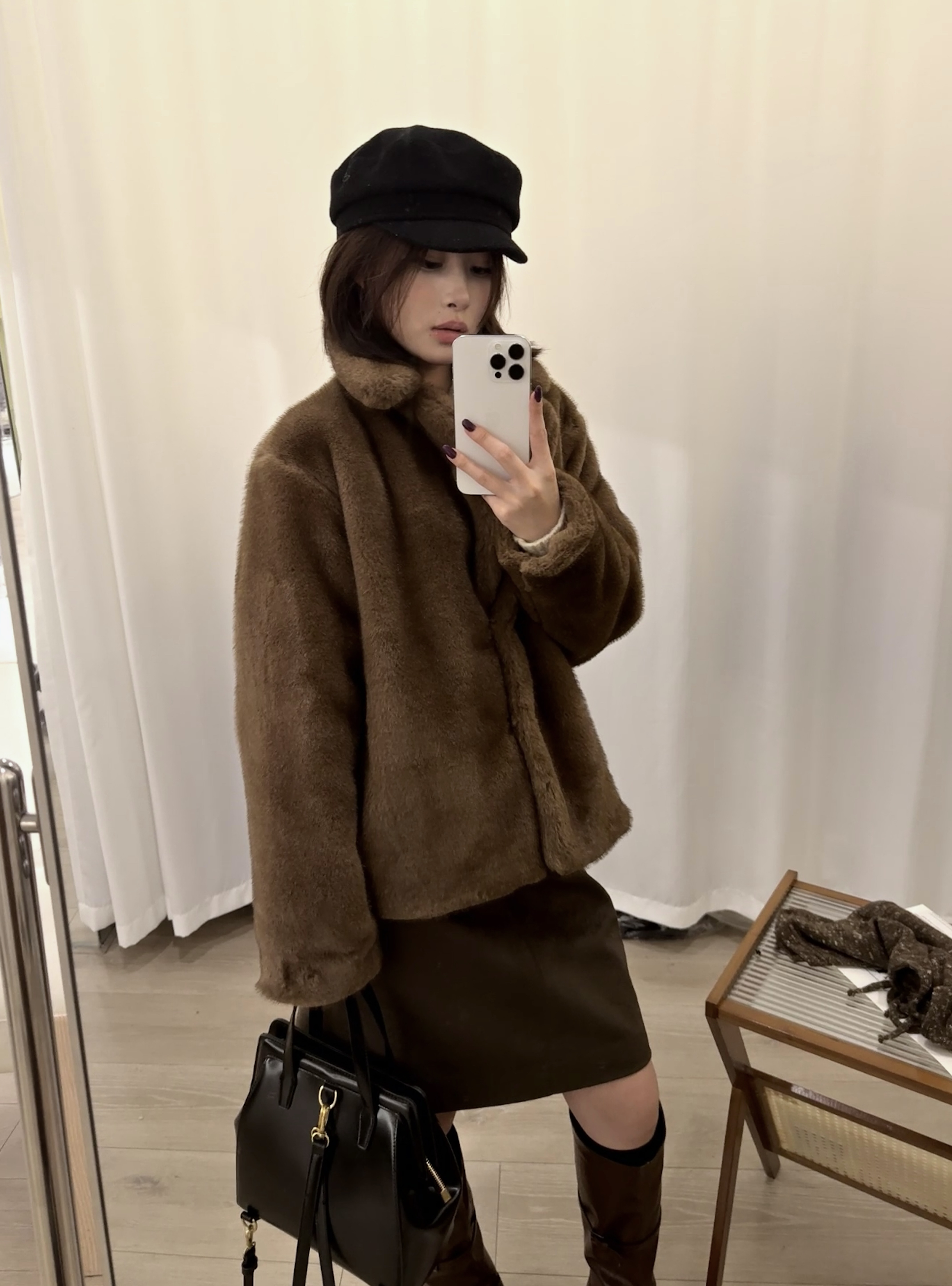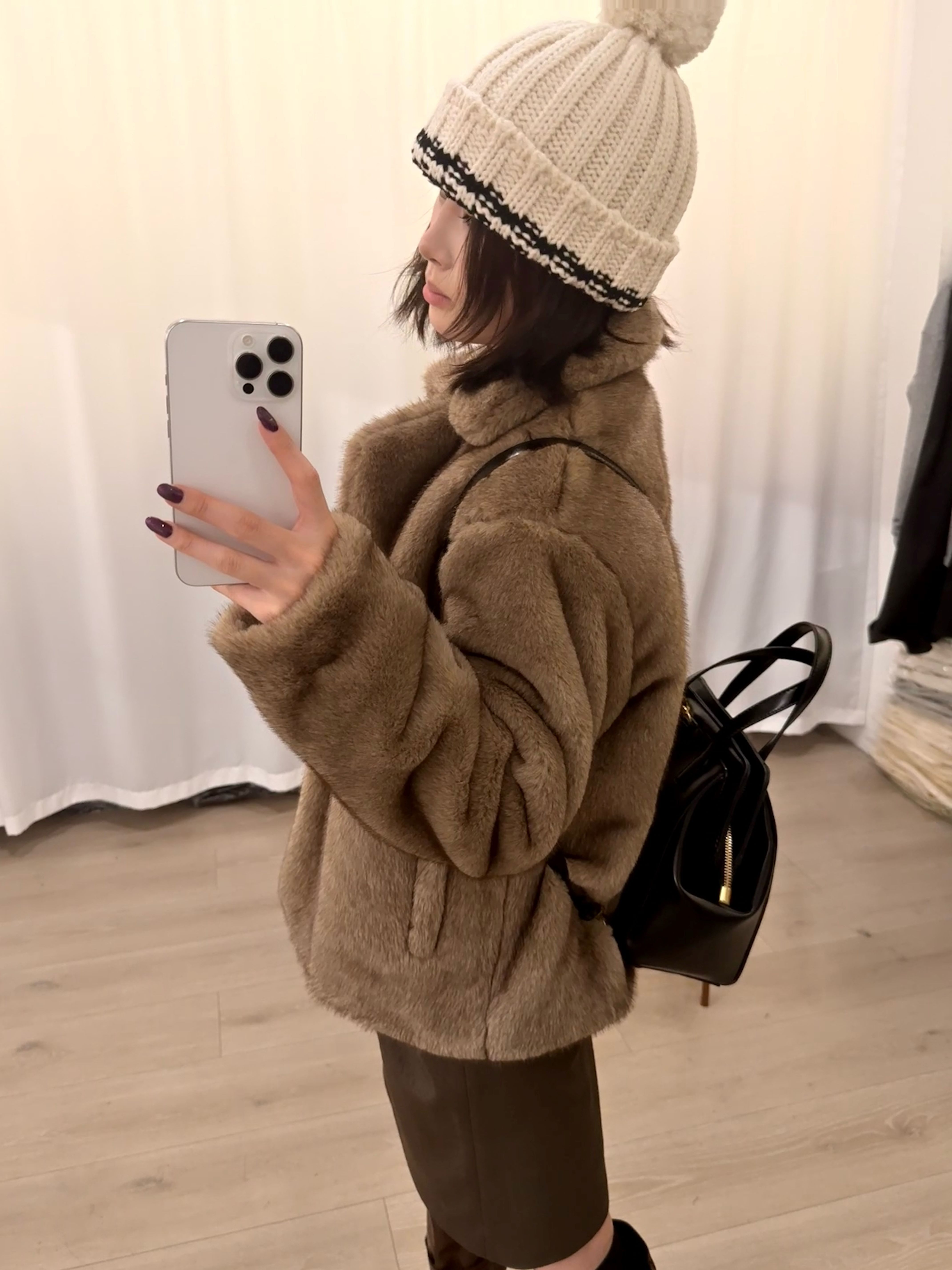 短款复古米绒貂环保皮草冬季翻领宽松毛毛外套