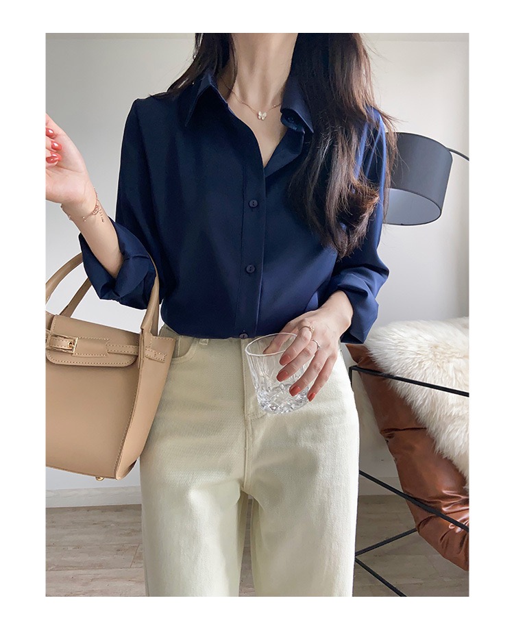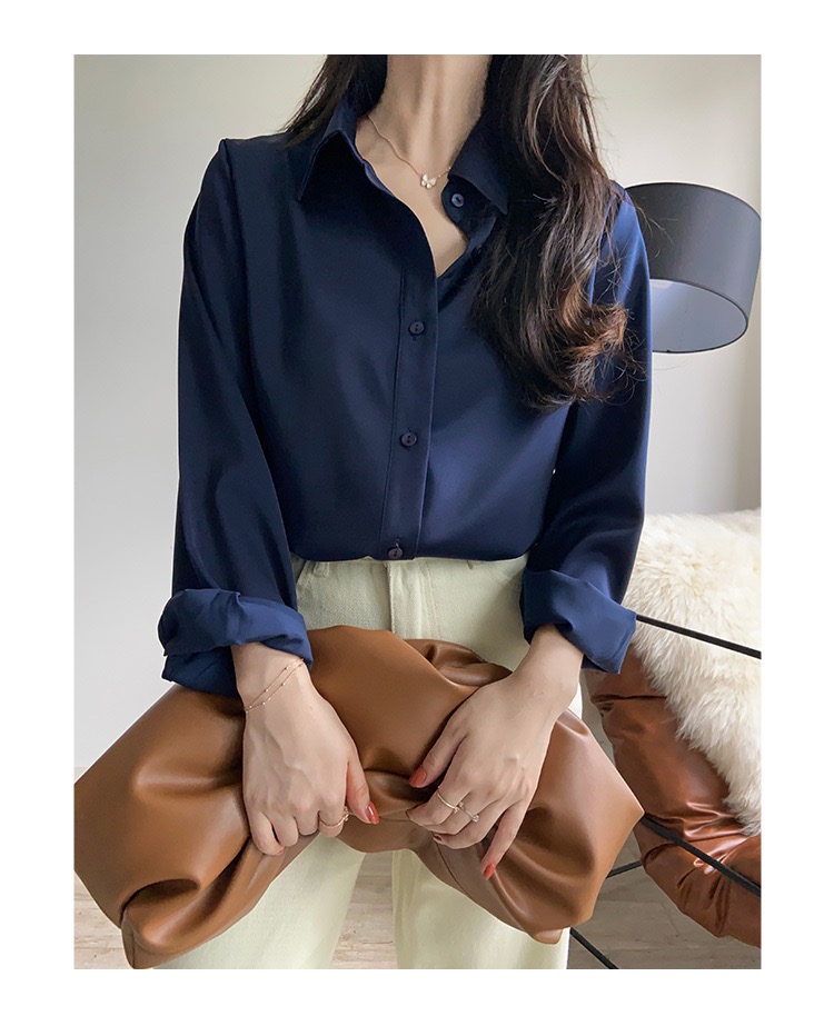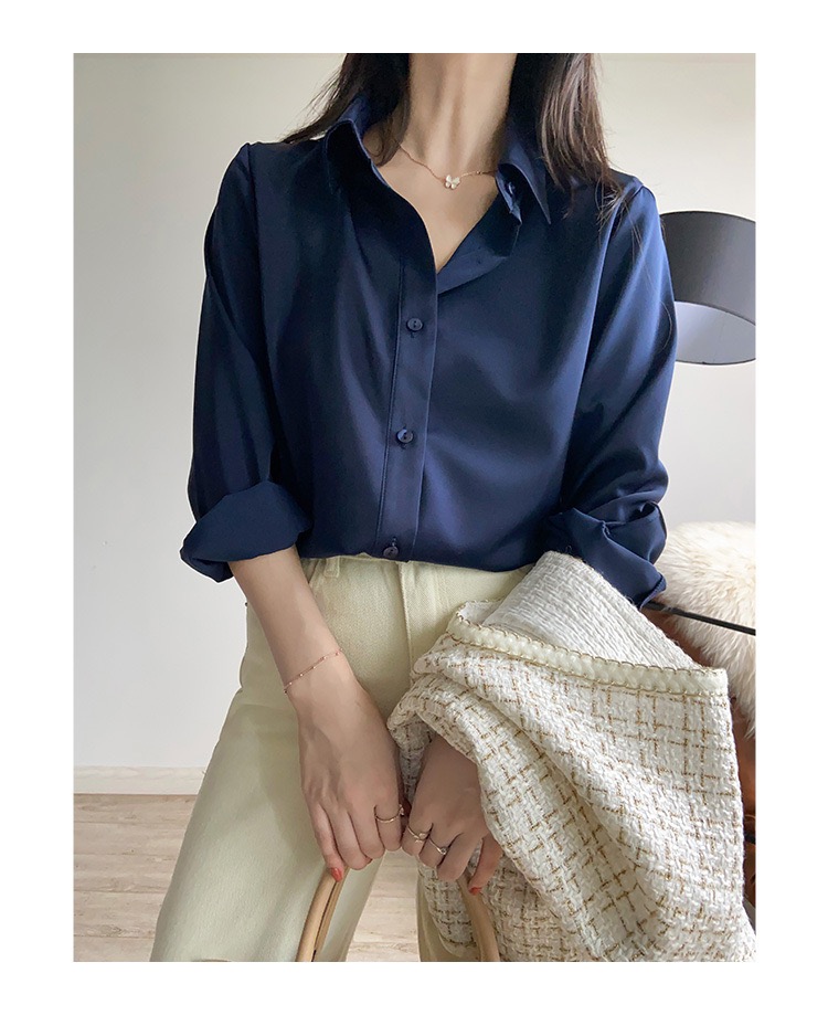 醋酸缎面垂感衬衫女新款2025年春秋季设计感小众法式丝绸气质衬衣