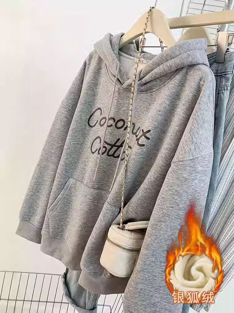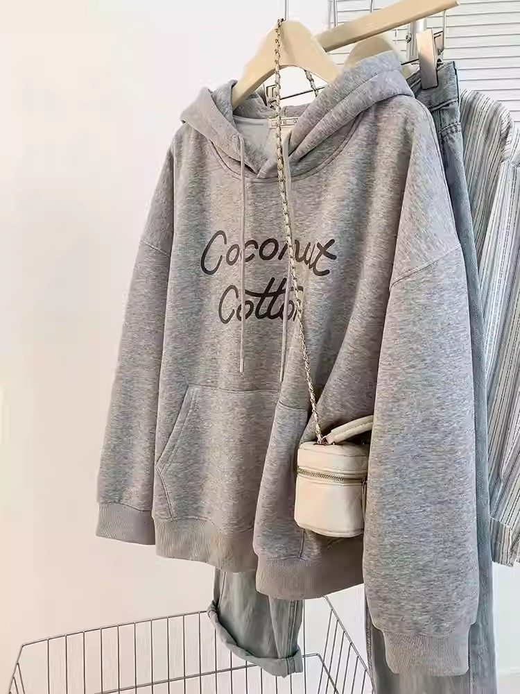 韩国外贸华棉复合-薄款310g-加绒400g 加绒加厚卫衣女生连帽衫