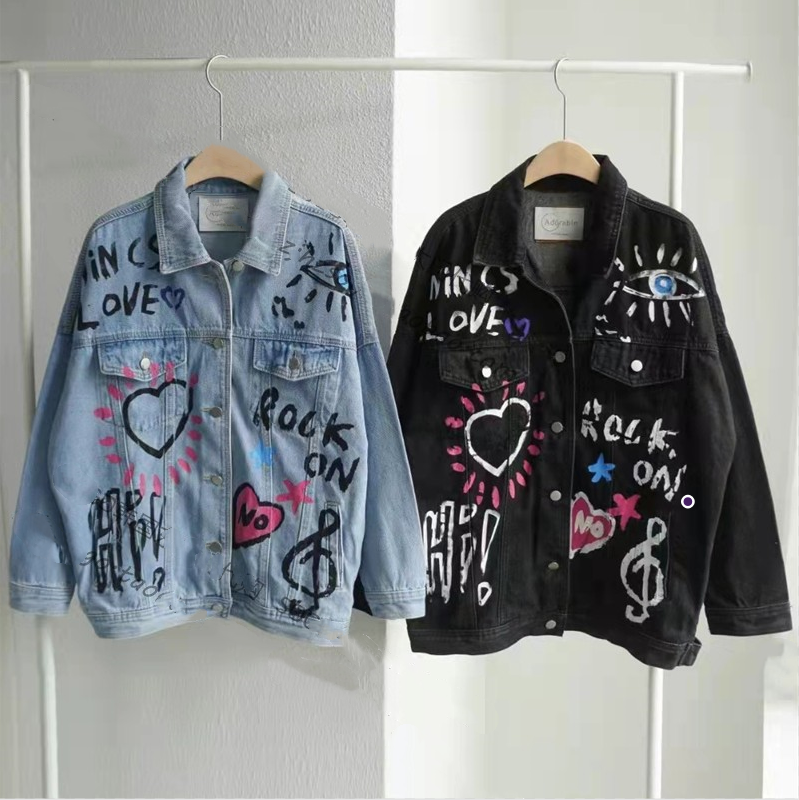 现 时尚爱心字母涂鸦宽松牛仔夹克外套
