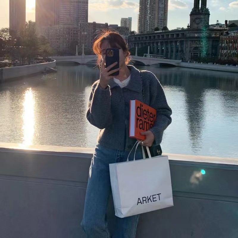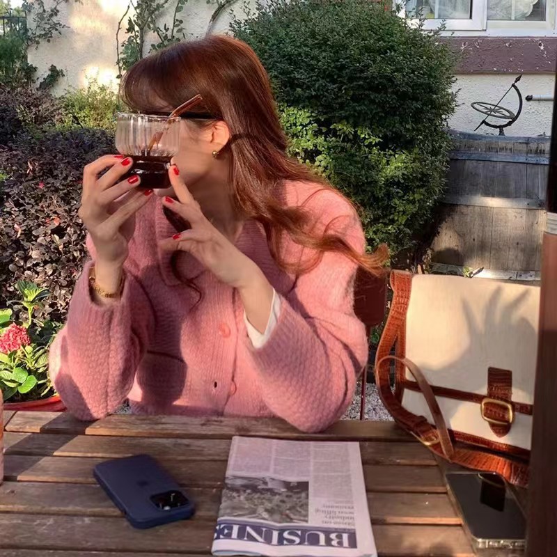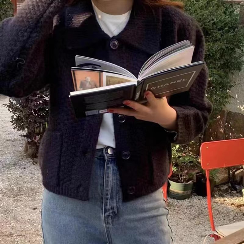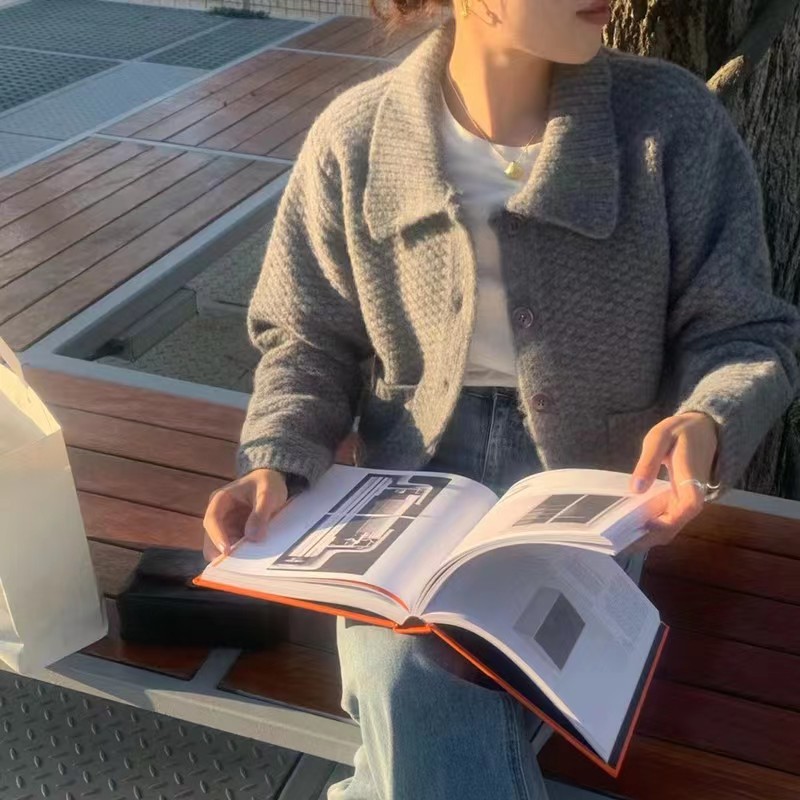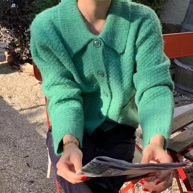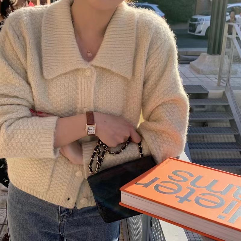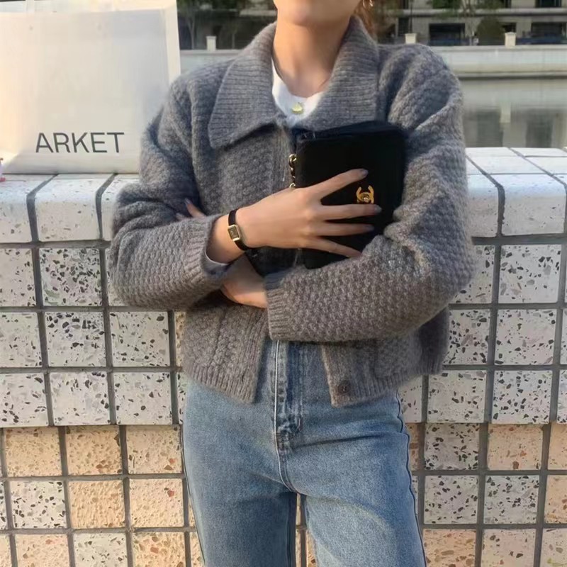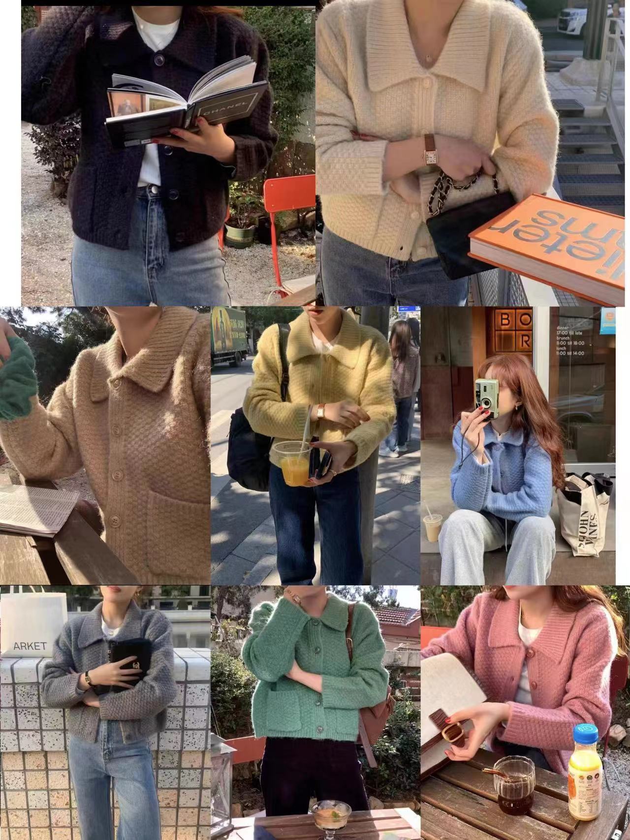 多色短款polo领针织开衫女宽松韩版小个子毛衣外套