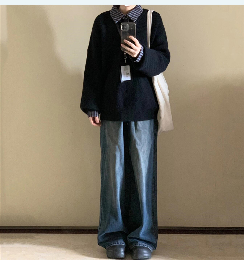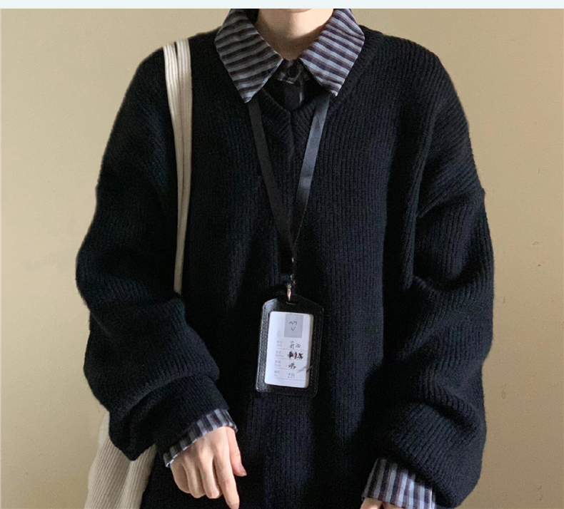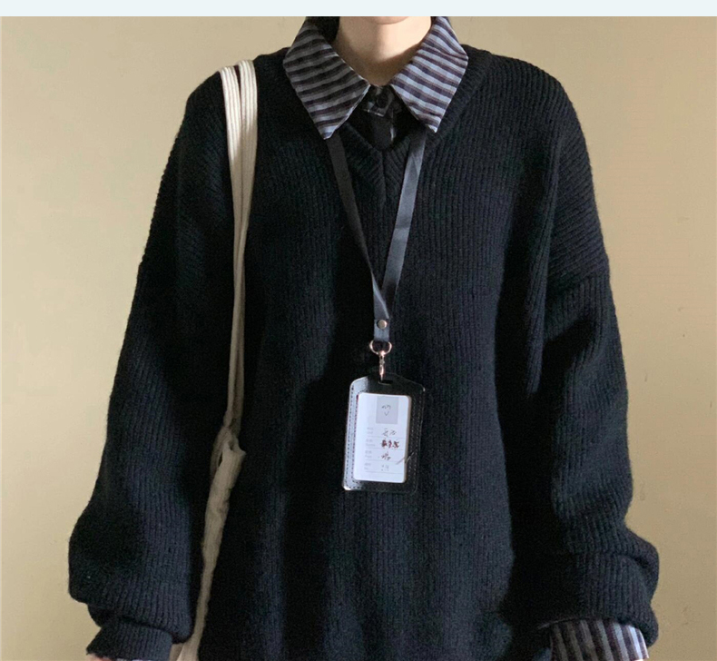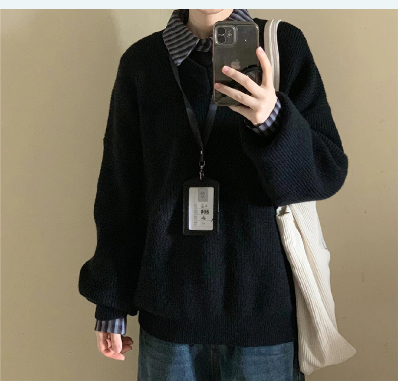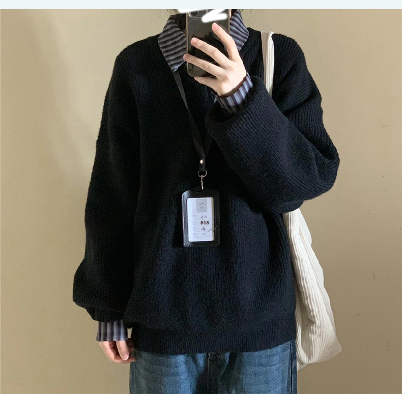 黑色v领毛衣女秋冬季2025新款韩系慵懒高级感内搭叠穿针织衫上衣