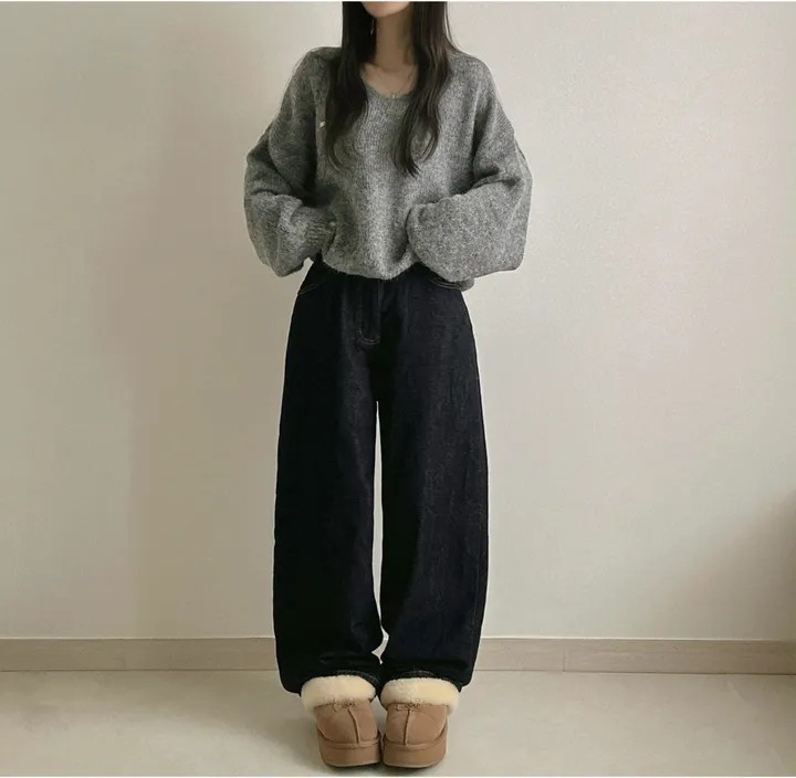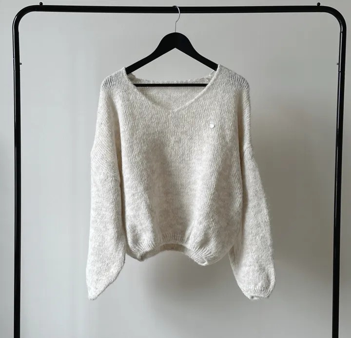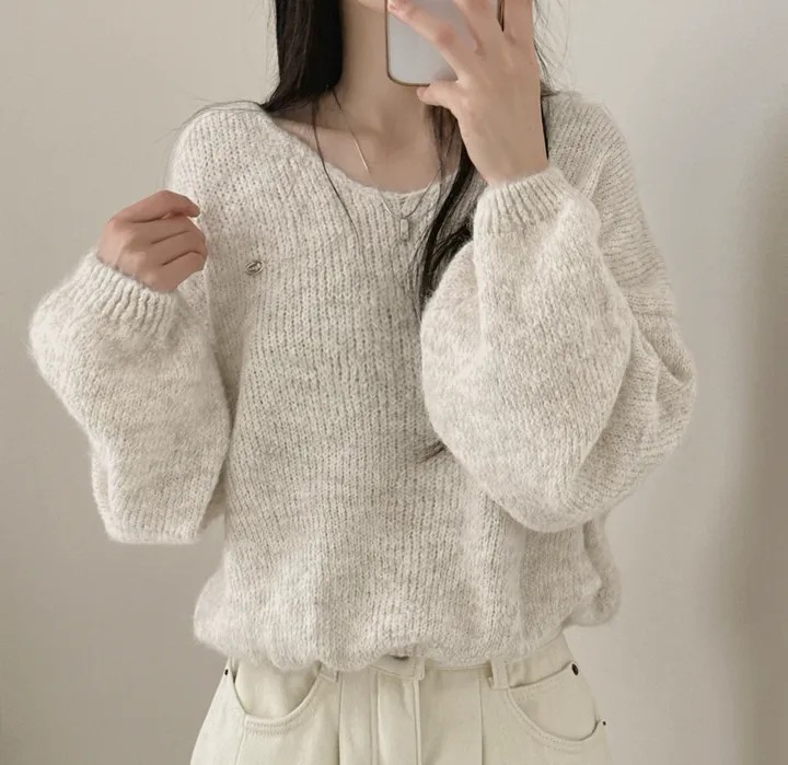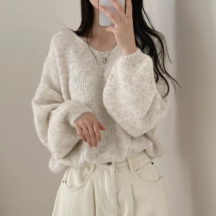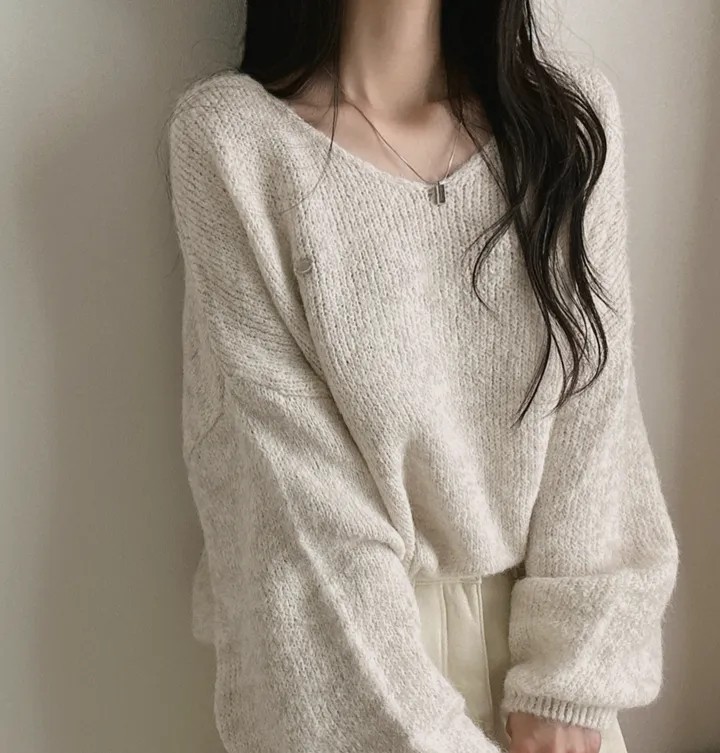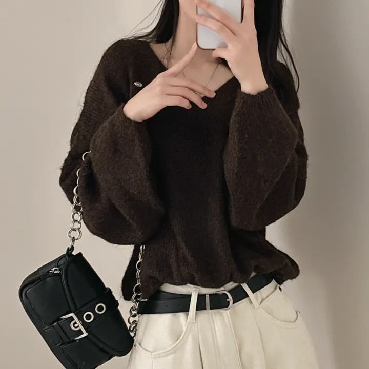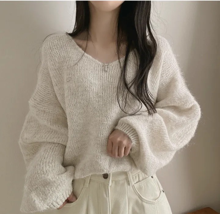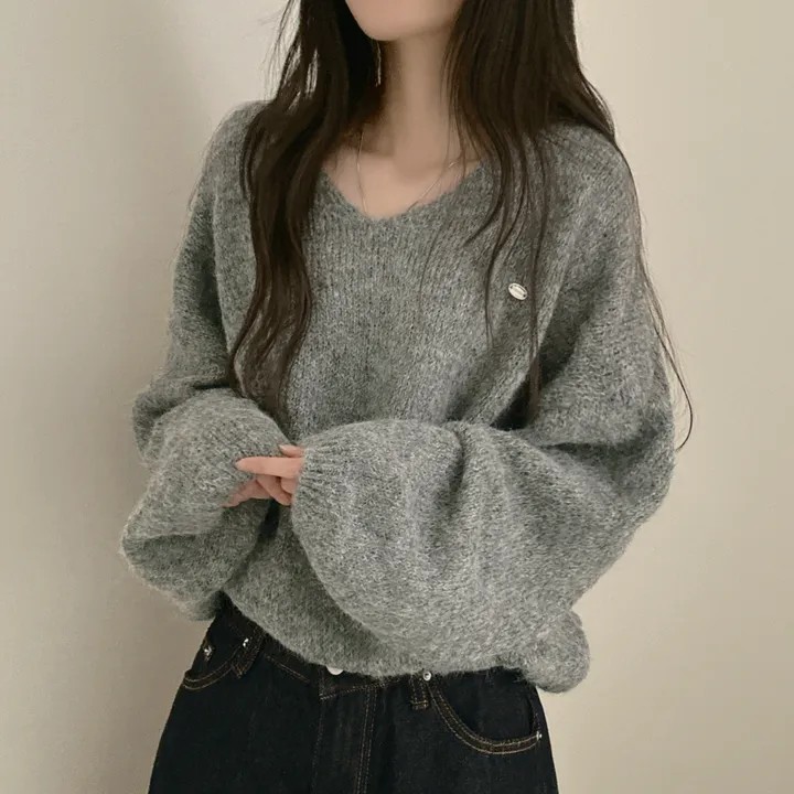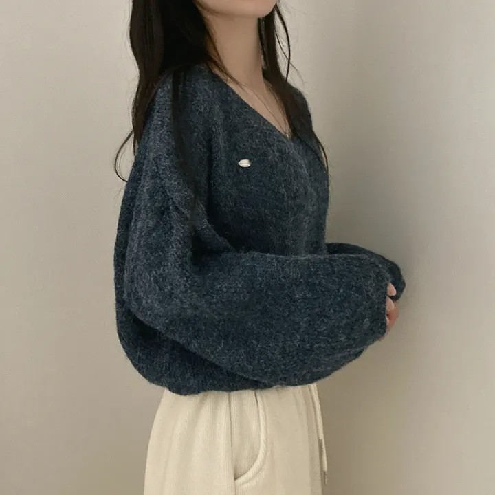 已出货 韩国chic秋冬慵懒风宽松v领毛茸茸针织衫百搭简约毛衣女