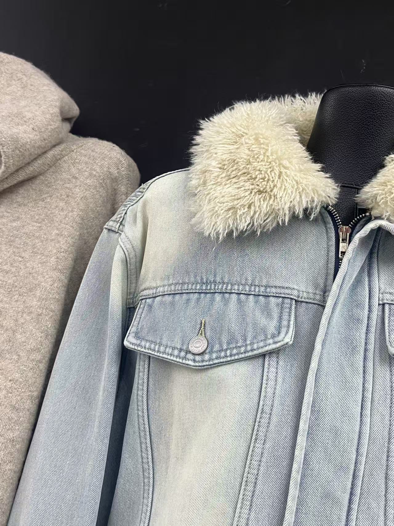 韩国东大门冬季洋气加绒加厚蓝色牛仔套装女外套阔腿牛仔裤两件套
