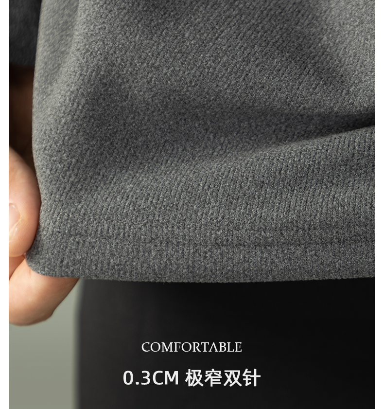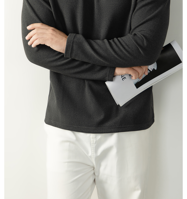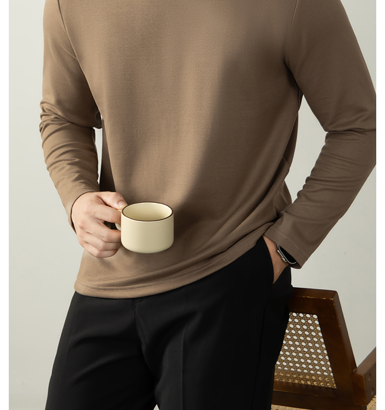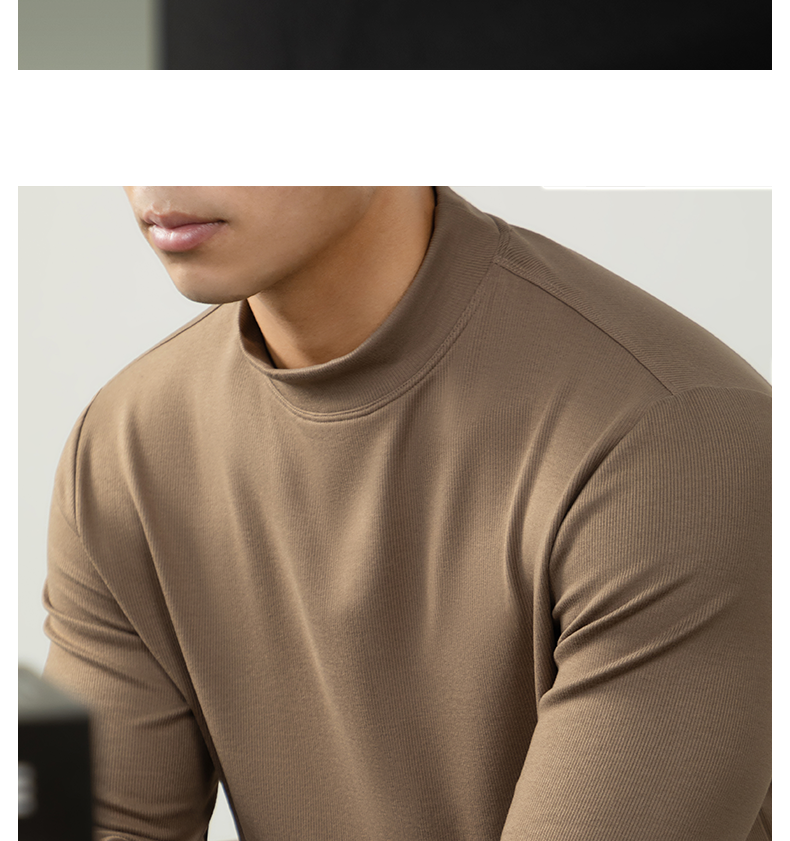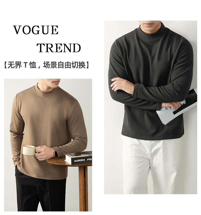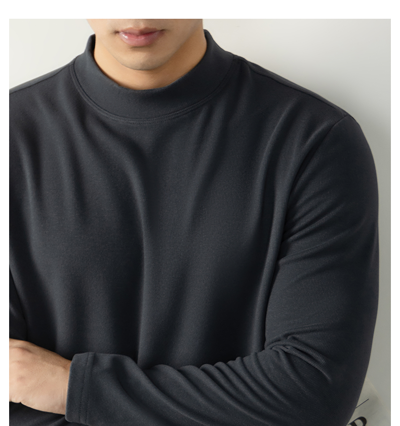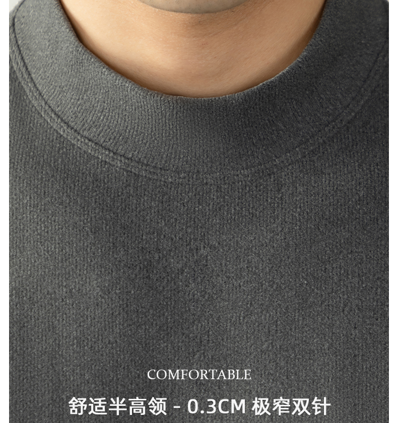 自发热竖纹双面绒长袖T恤男半高领秋冬保暖打底衫内搭轻商务