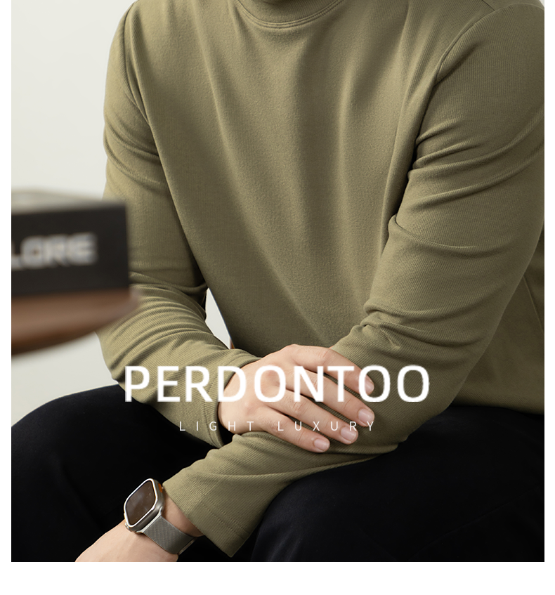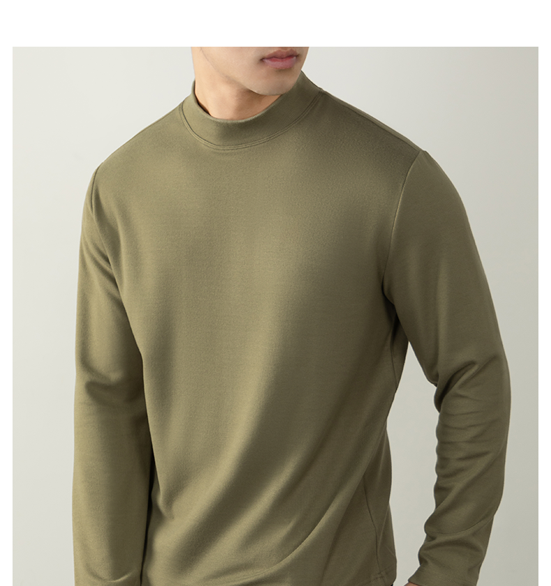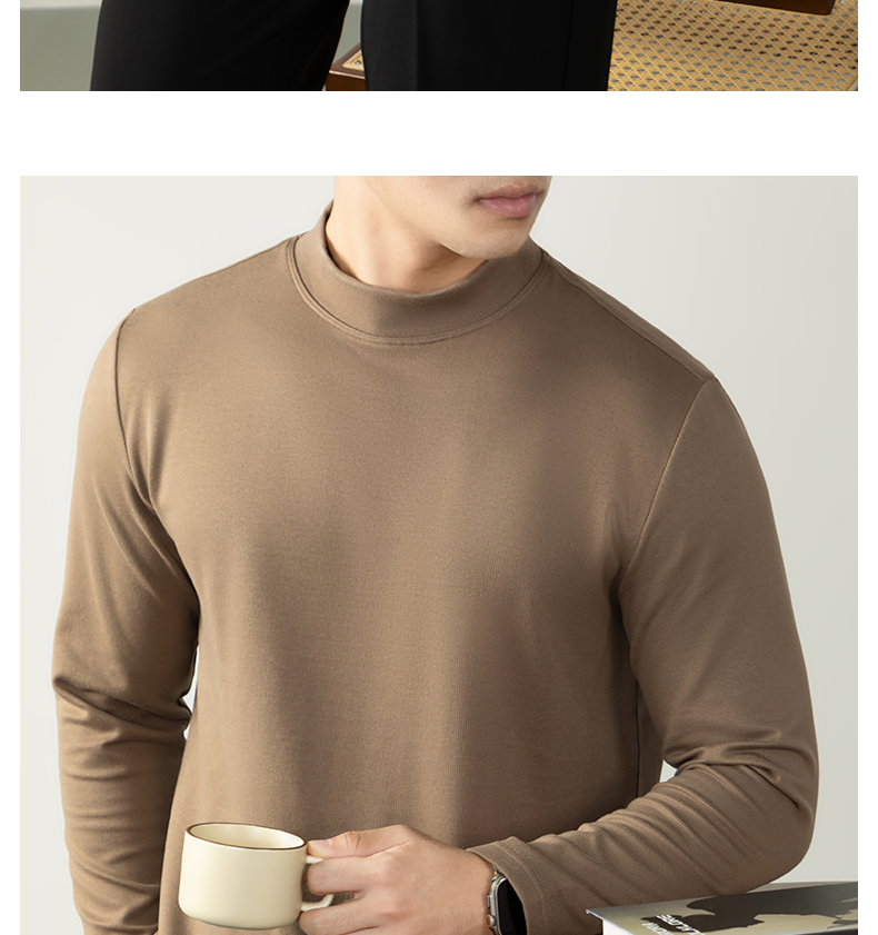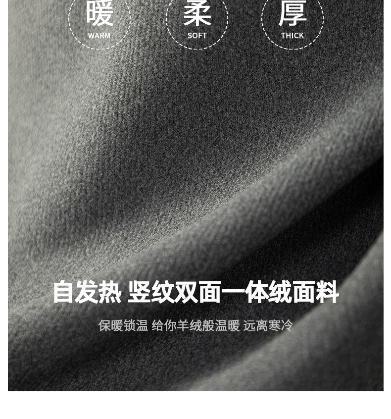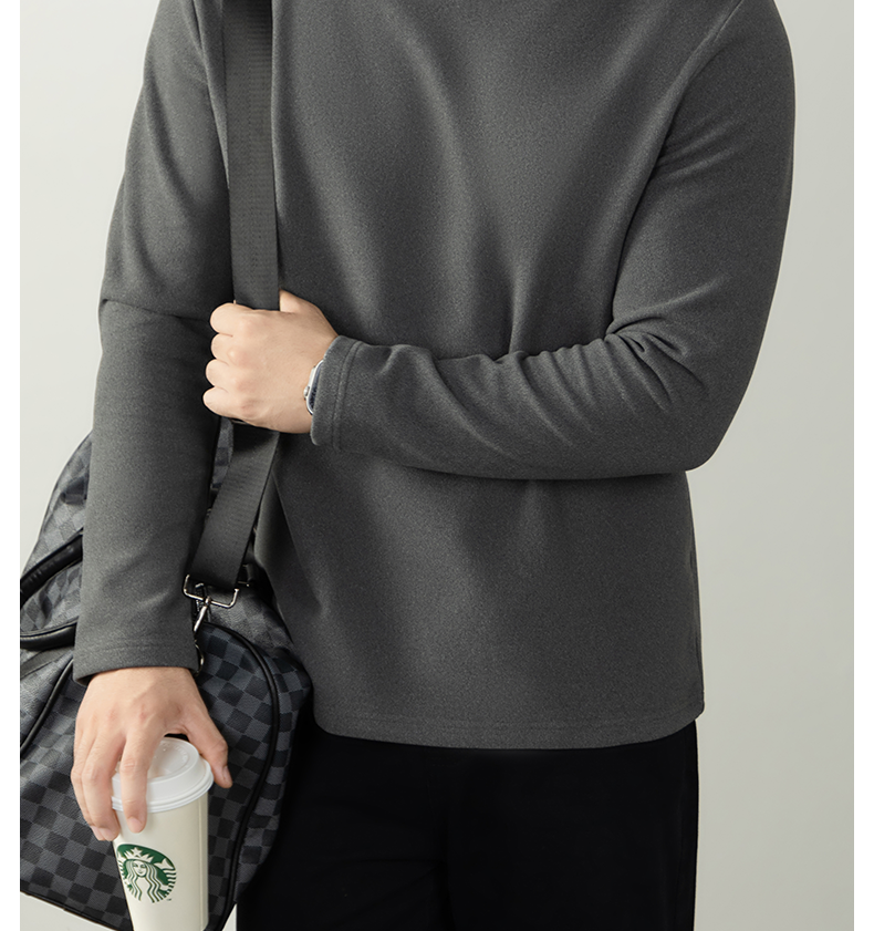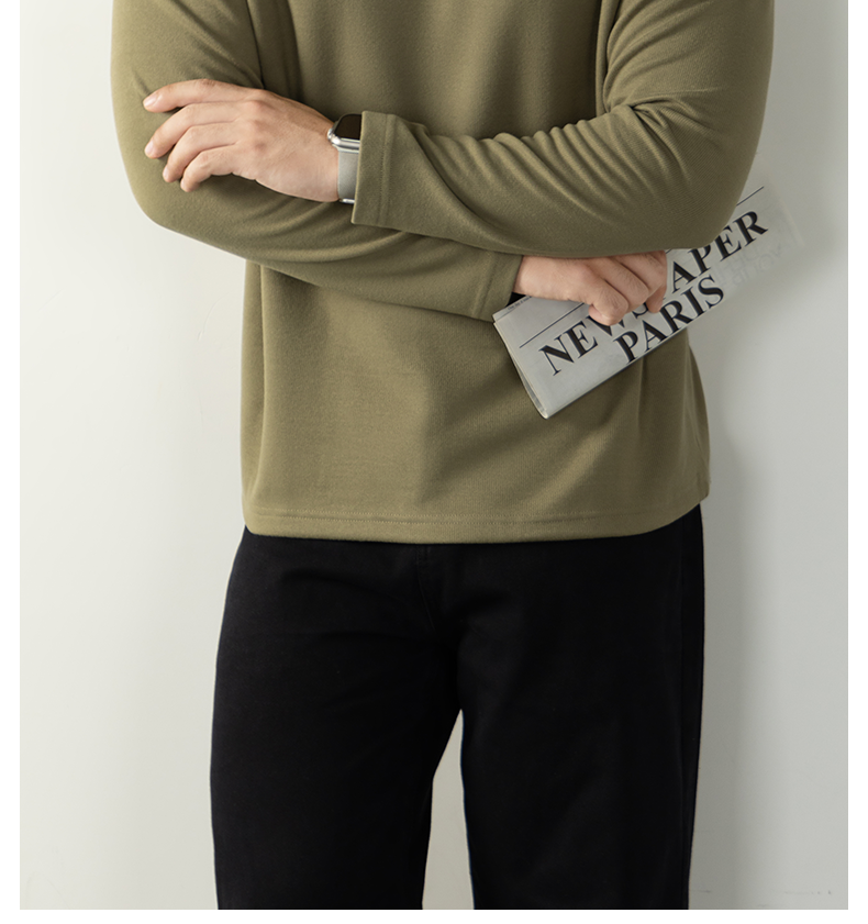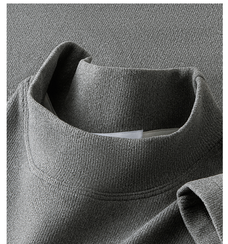 自发热竖纹双面绒长袖T恤男半高领秋冬保暖打底衫内搭轻商务