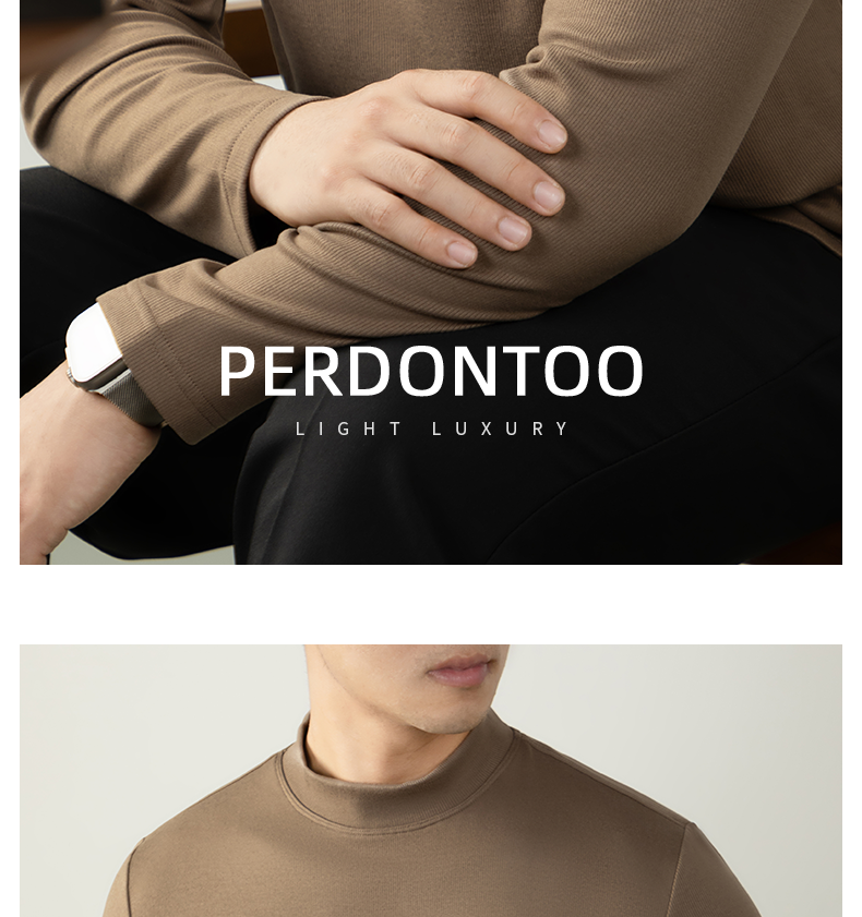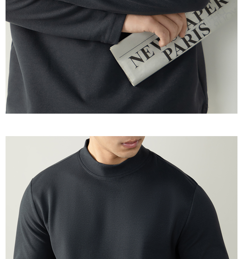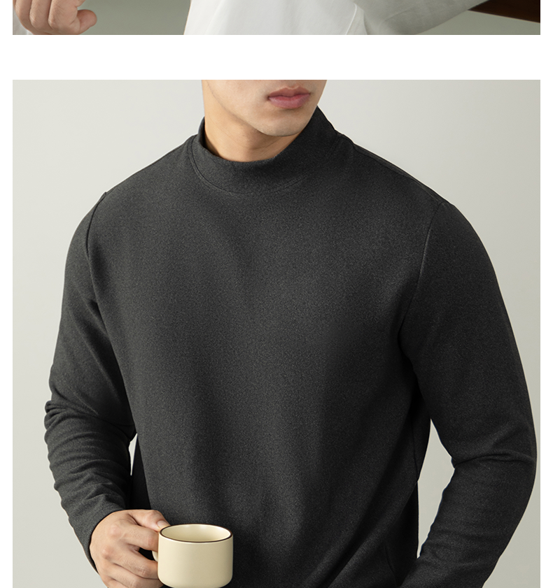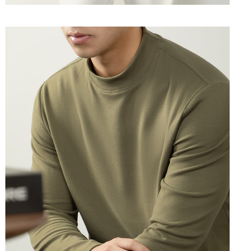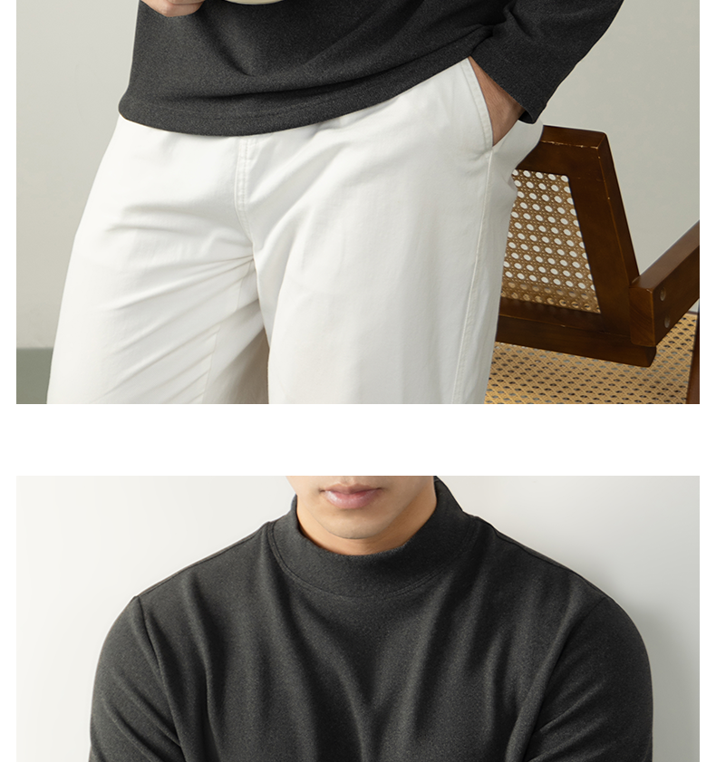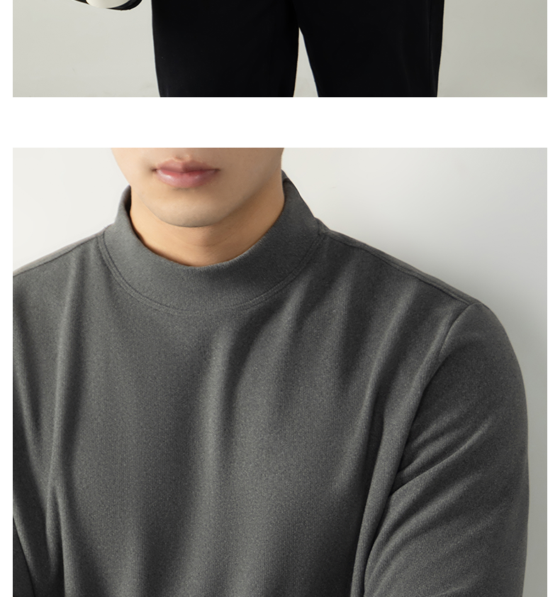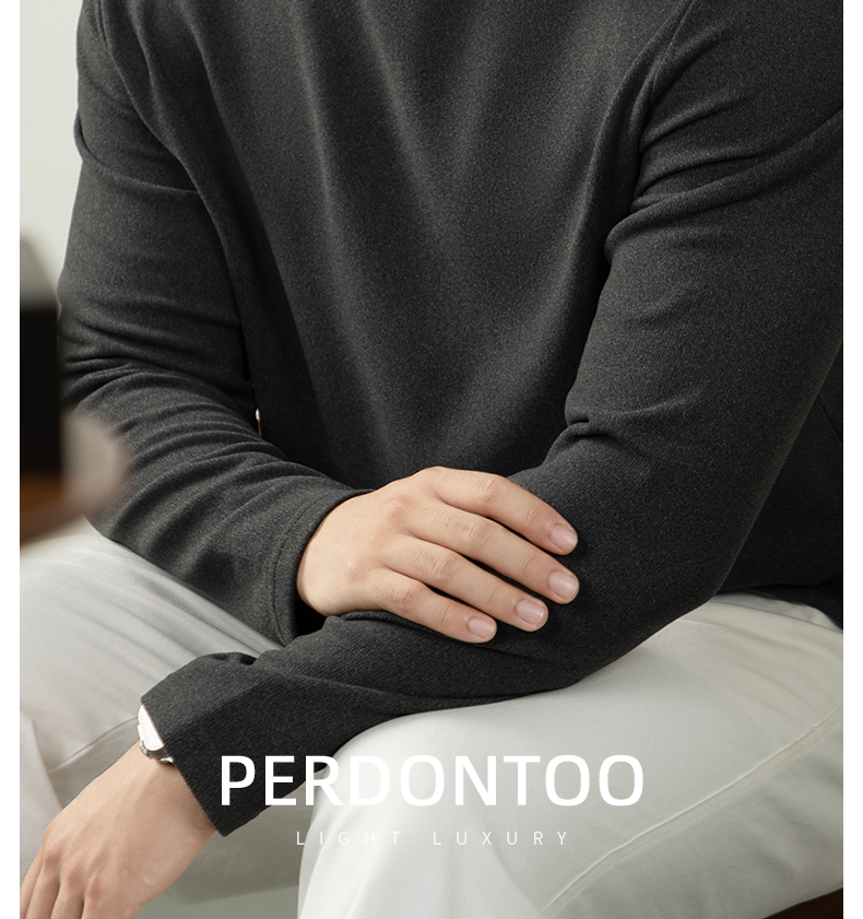 自发热竖纹双面绒长袖T恤男半高领秋冬保暖打底衫内搭轻商务