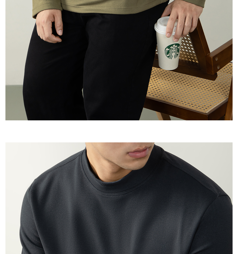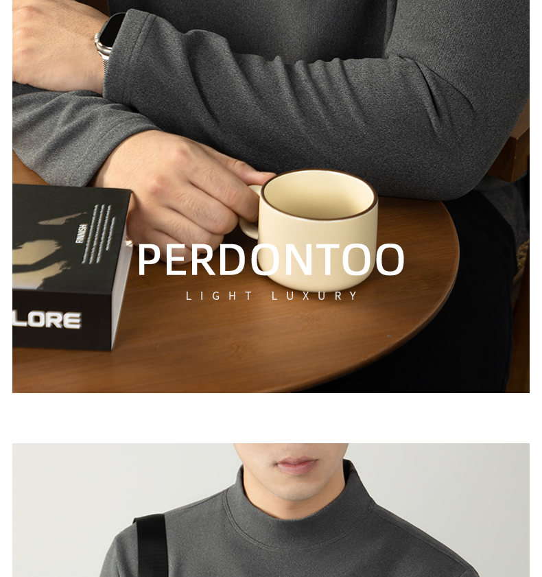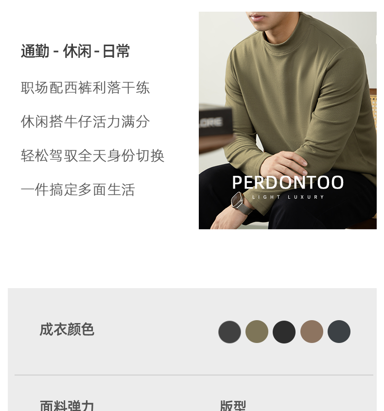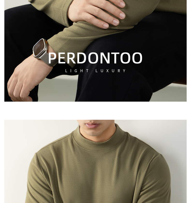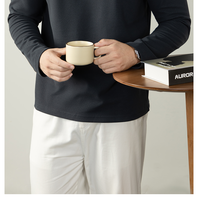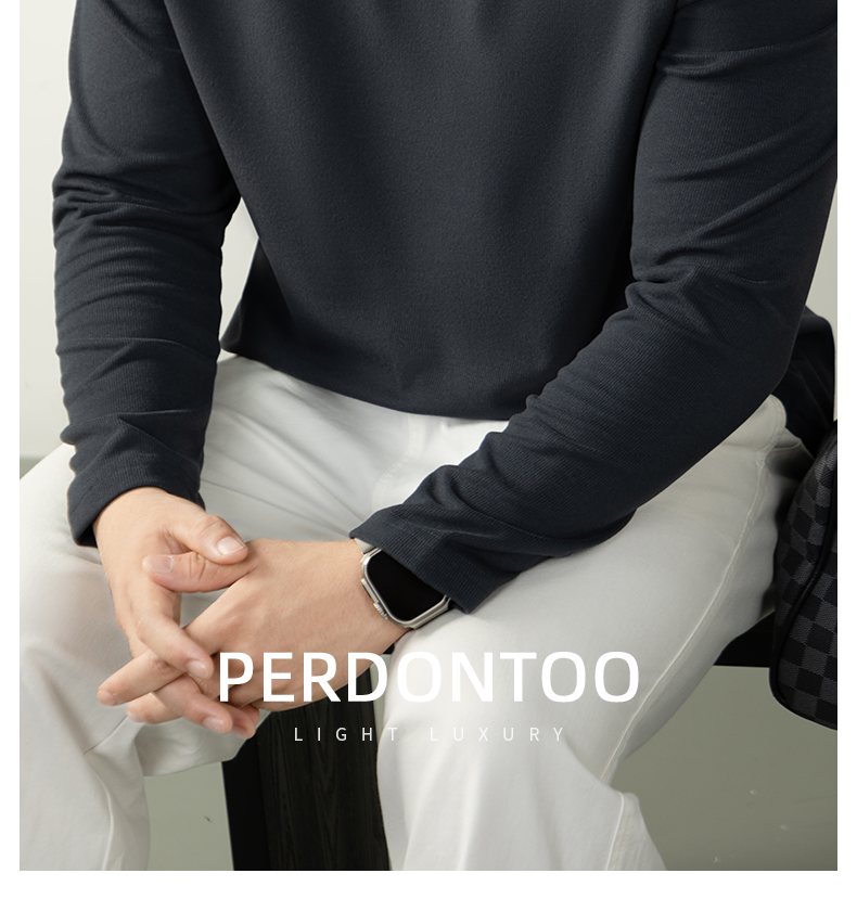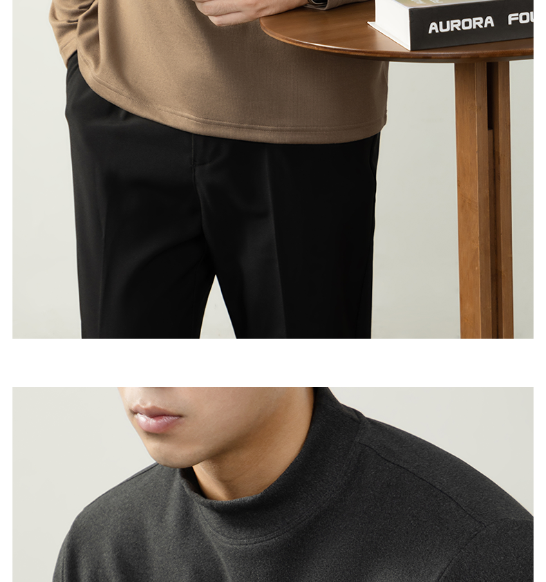 自发热竖纹双面绒长袖T恤男半高领秋冬保暖打底衫内搭轻商务
