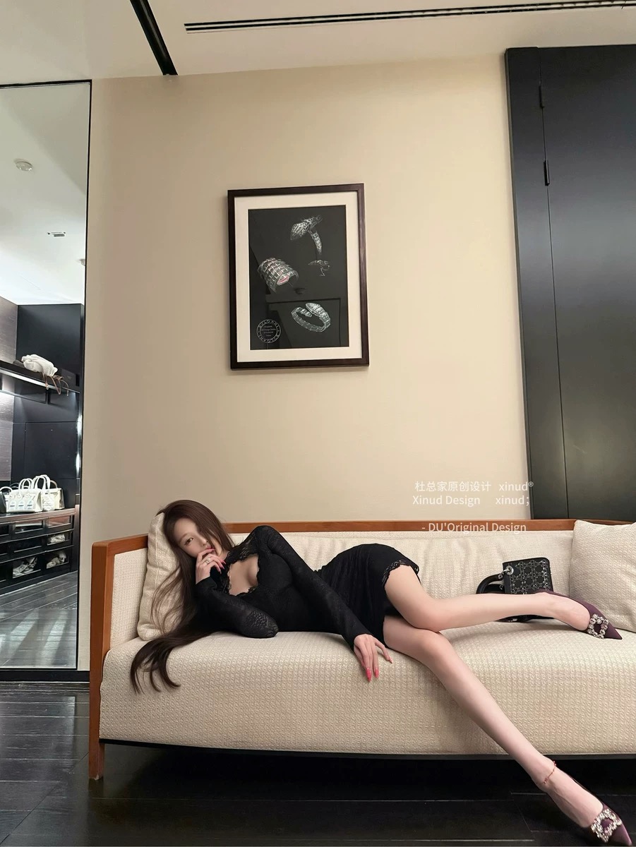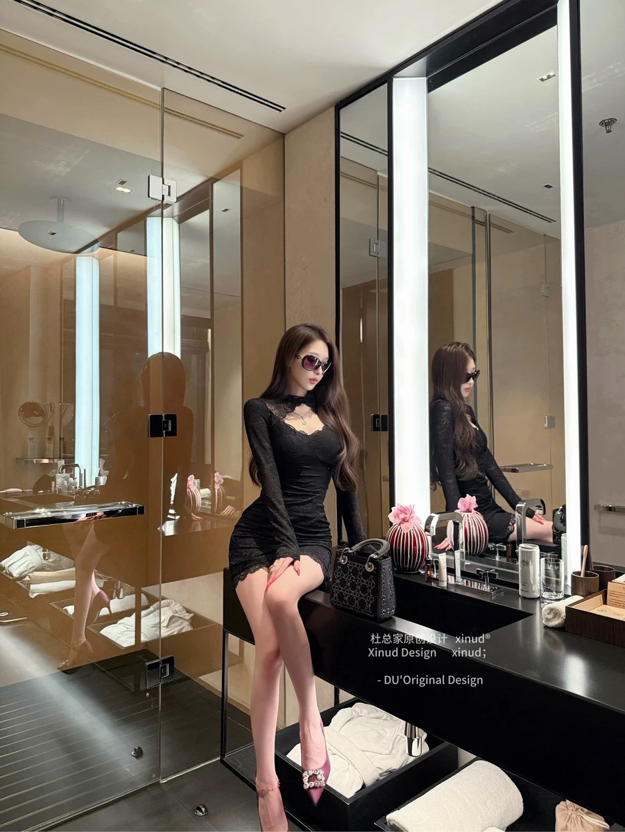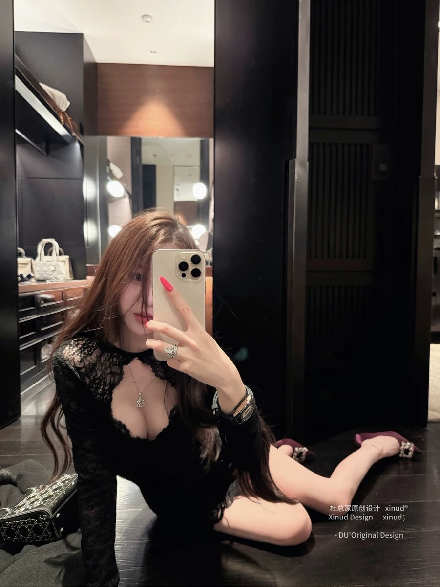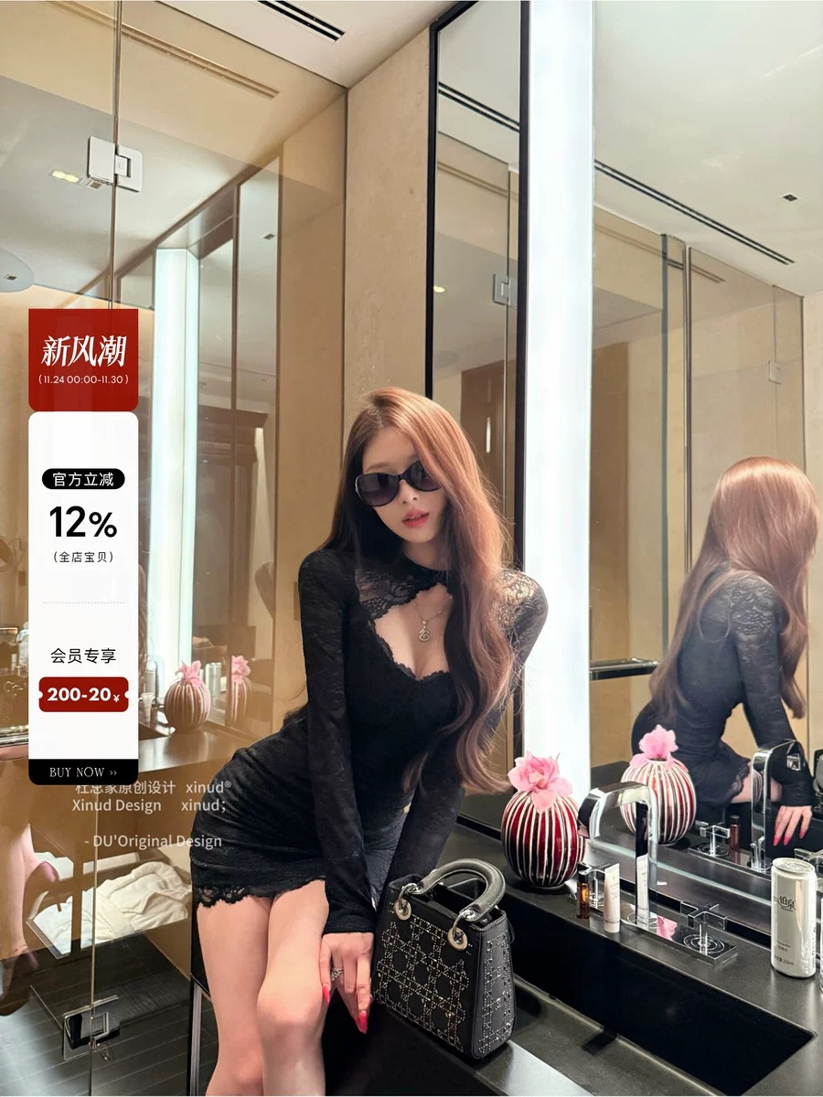 杜总家 女神原创纯欲辣妹性感镂空黑蕾丝包臀显身材连衣裙女