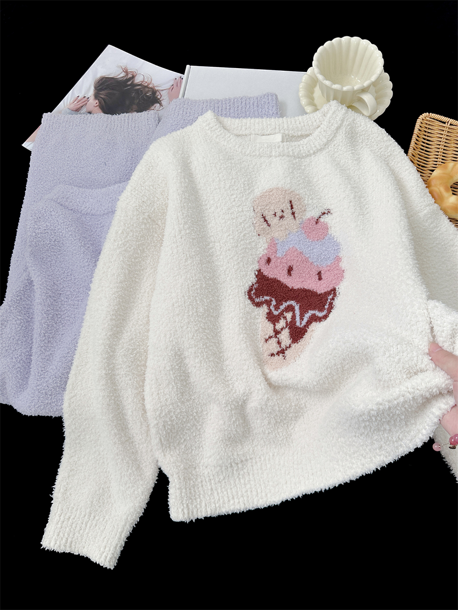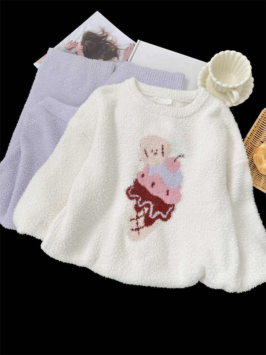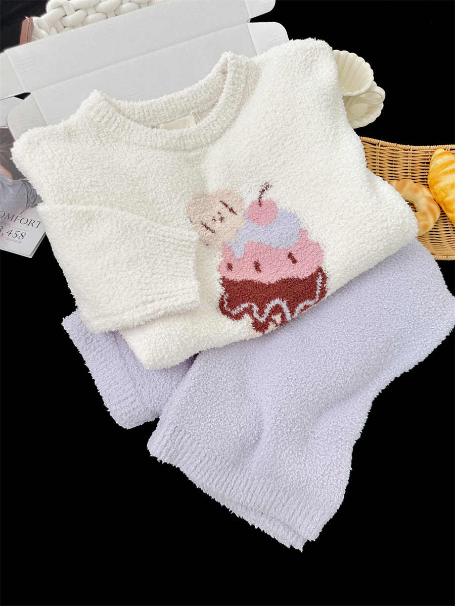 冰淇淋紫裤2025年秋冬季新款珊瑚绒睡衣女加绒半边绒家居服官方