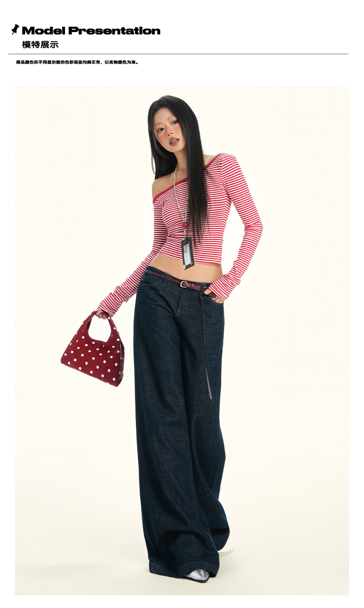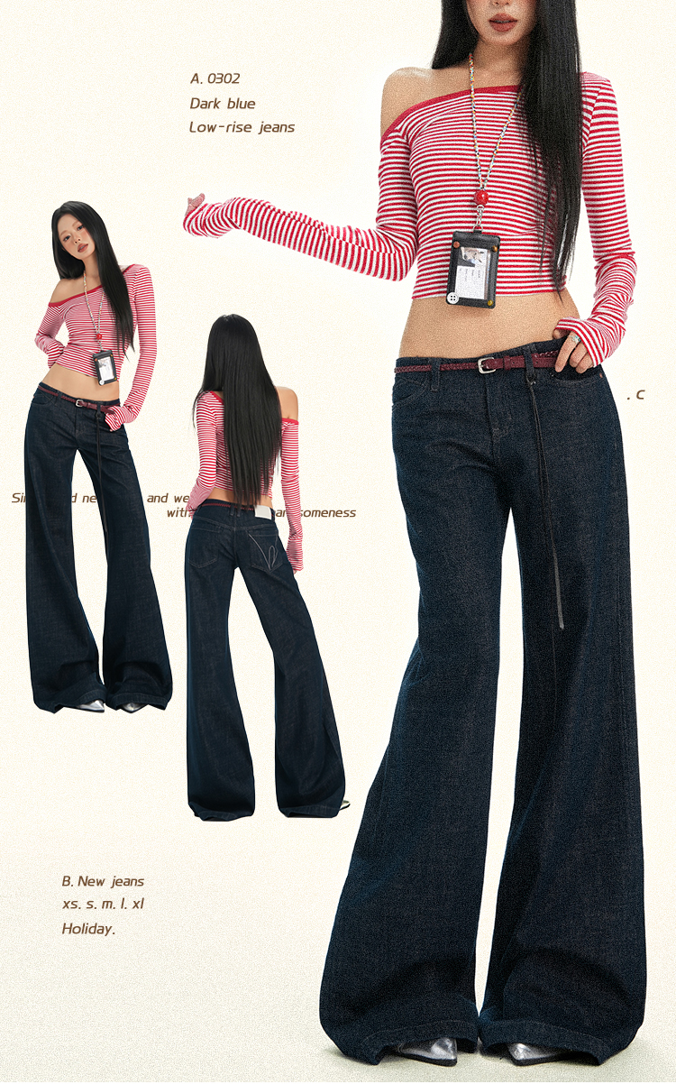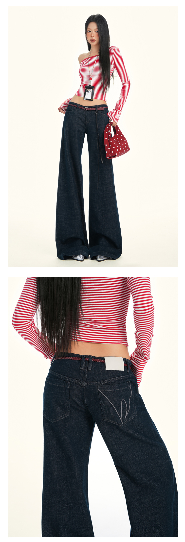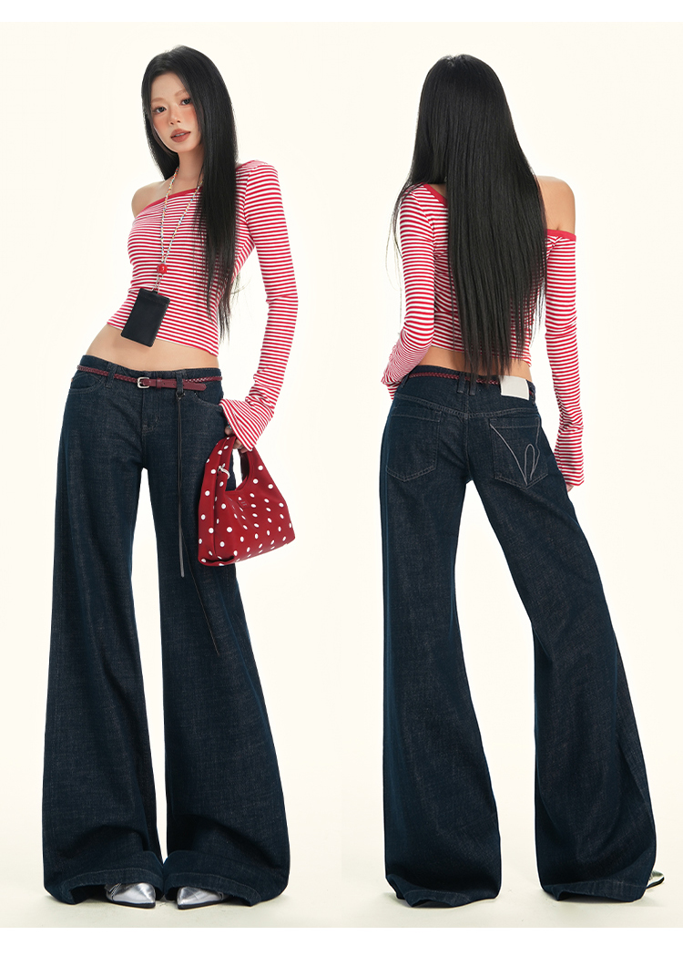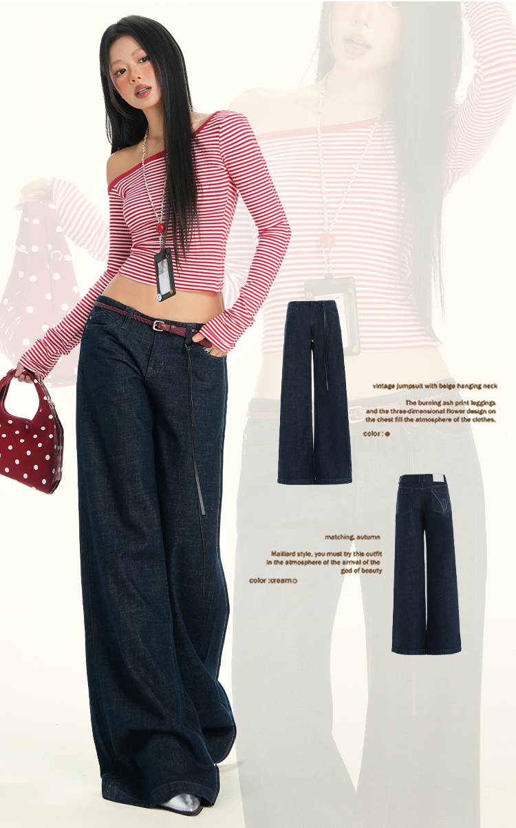 挂绳原牛复古垂感水洗直筒低腰百搭牛仔裤女